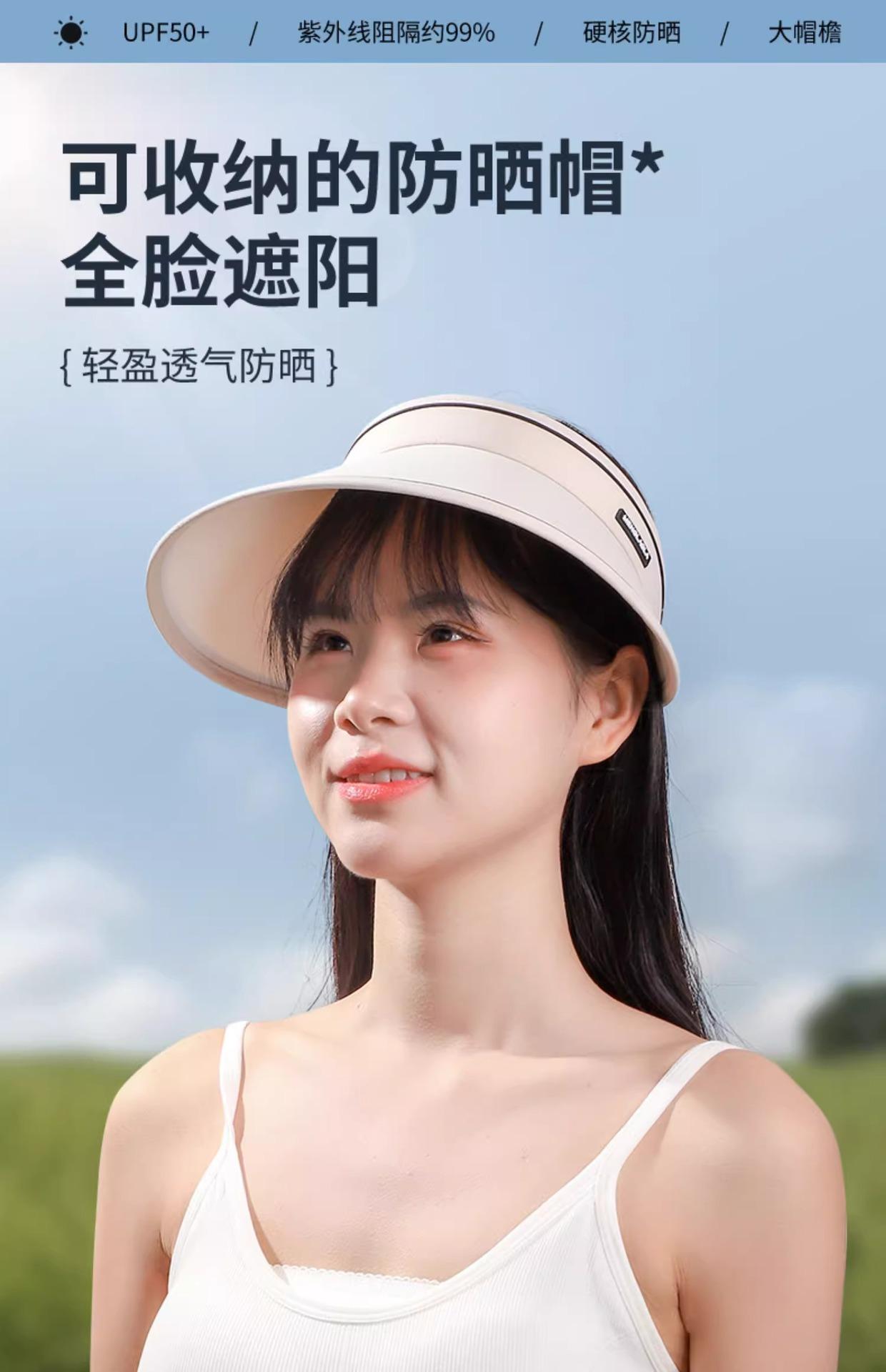Sombrero de Protección Solar Upf50+ Primavera y Verano 2024 Nuevo Sombrero de Sol de Ala Ancha Anti-Uv de Copa Vacía para Mujer Sombrero de Sol