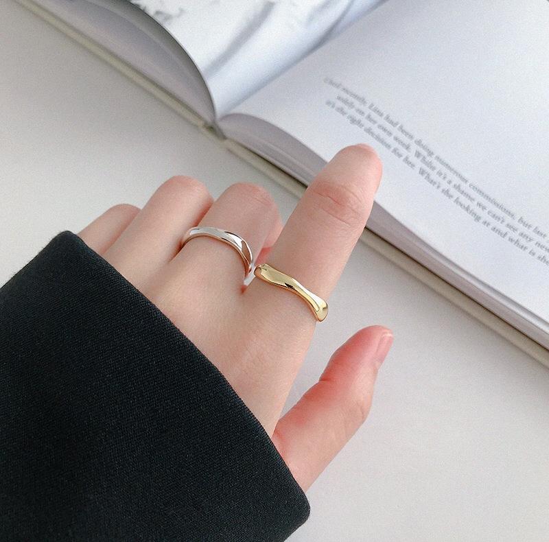 Anillo Abierto Estilo Ins para Mujer Mini Patrón de Ola Asimétrico Joyería Dorada Anillo Simple Elegante Anillo Trendy