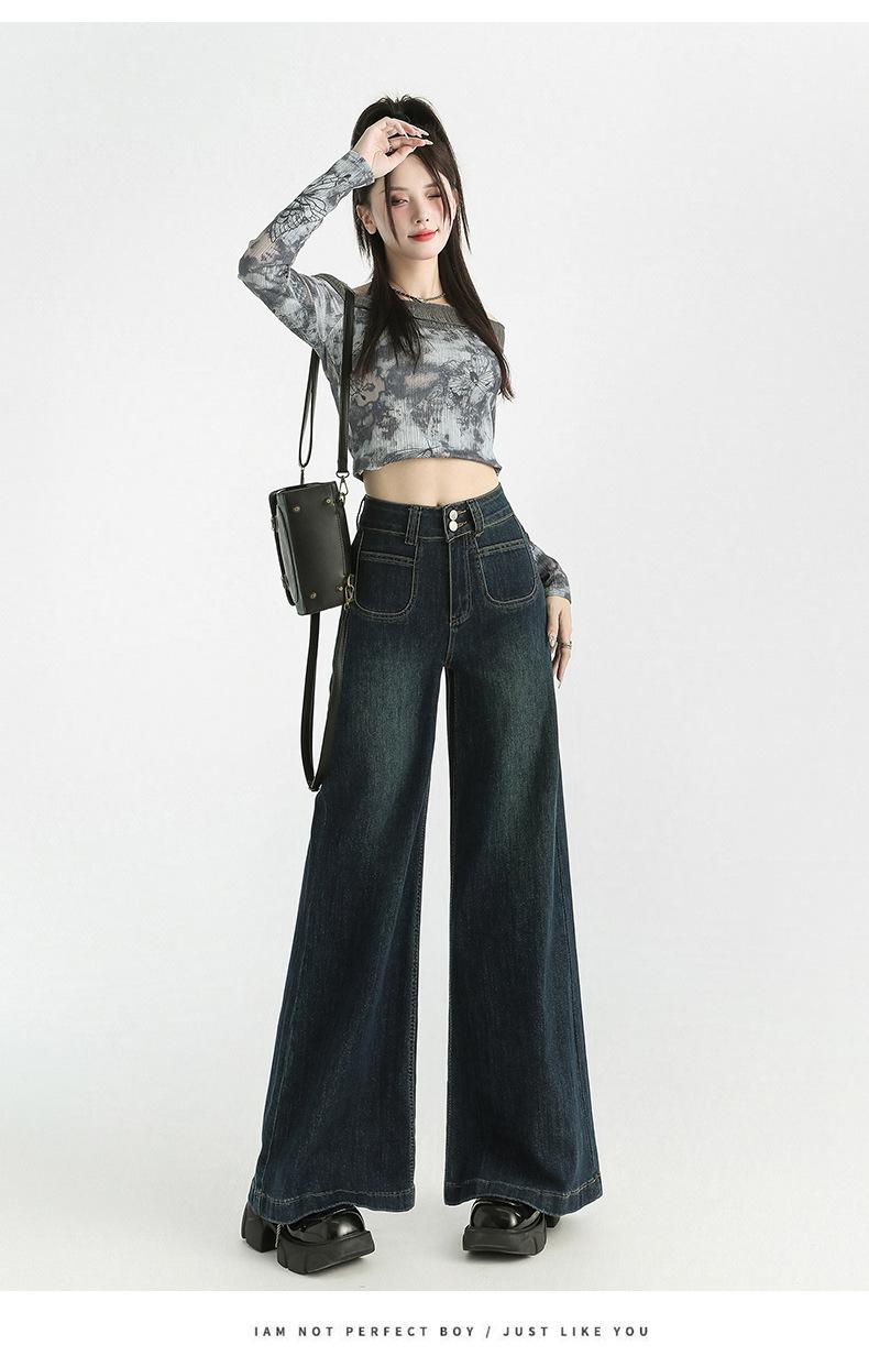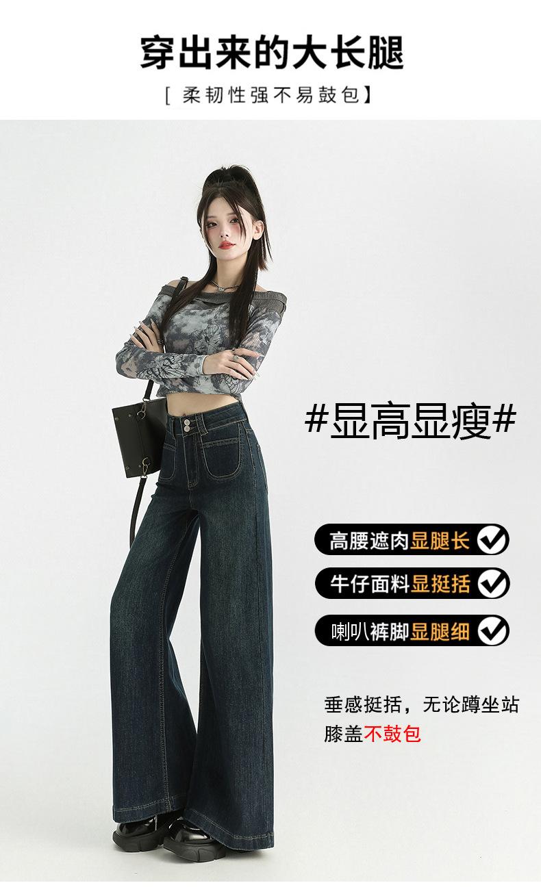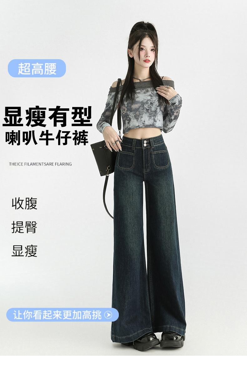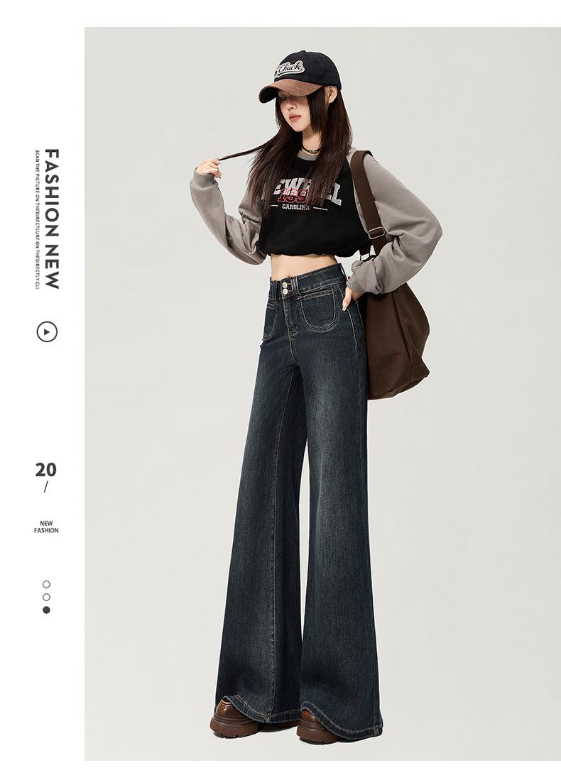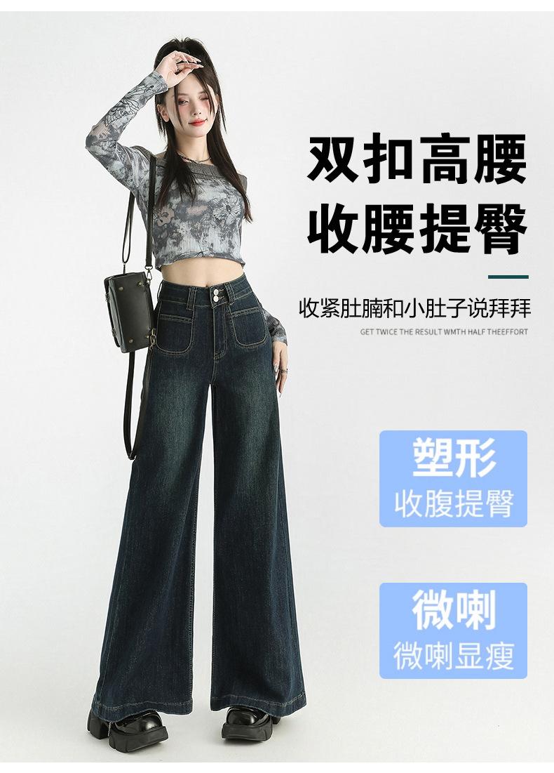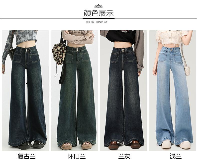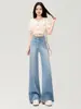 Ropa de Mujer de Seda Naranja# Jeans Americanos de Cintura Baja Holgados de Pierna Ancha para Mujer 2024 Nuevo Look Delgado Combinable Pantalones Micro-arrastre