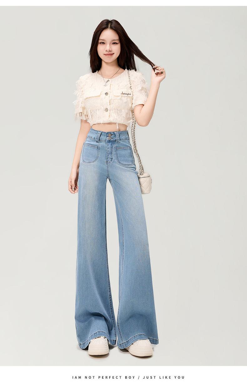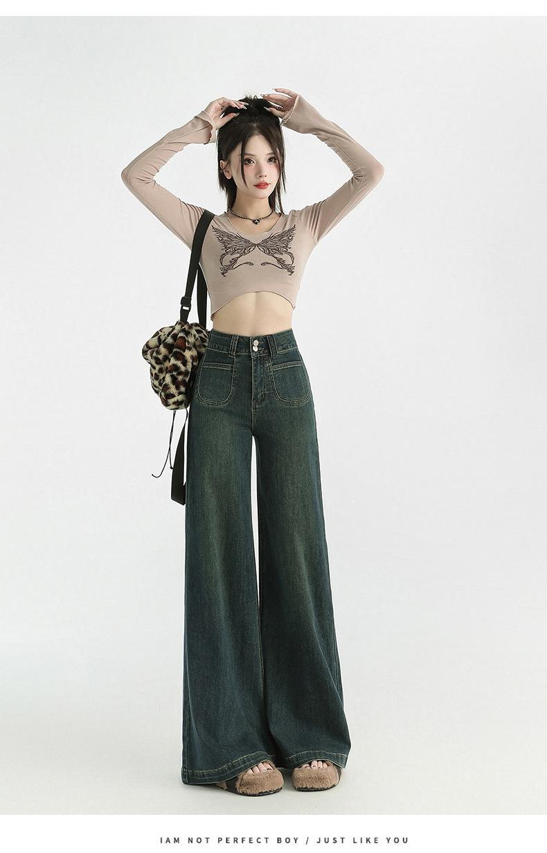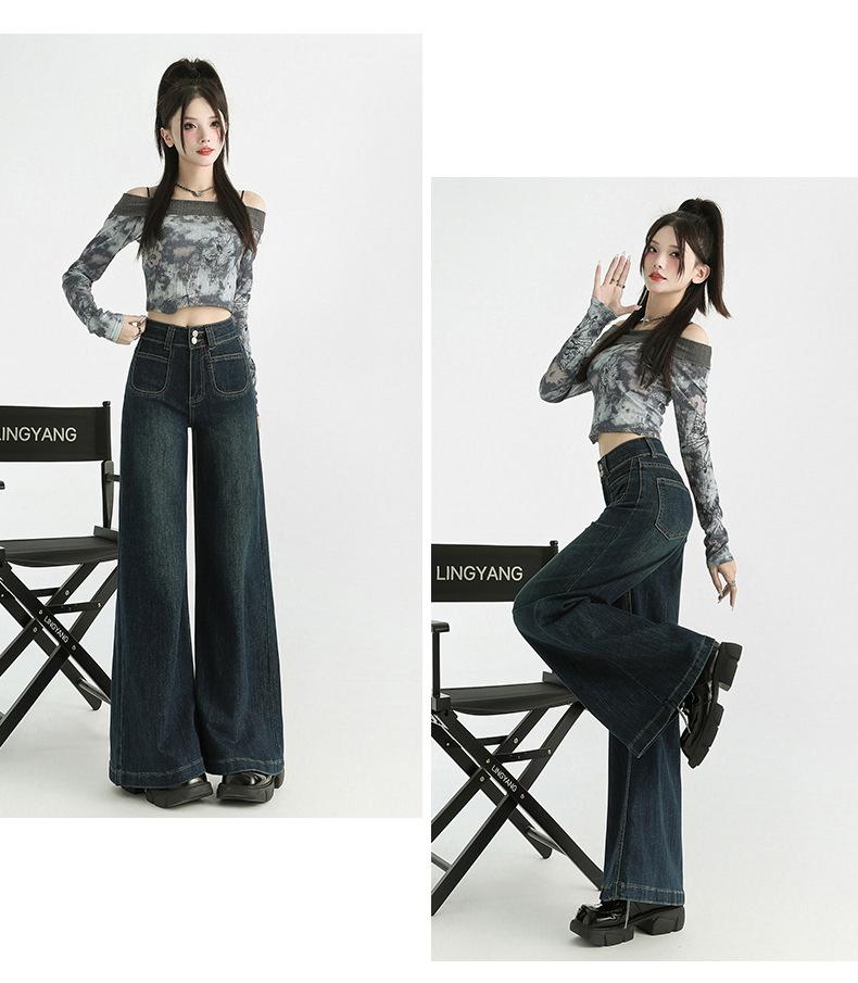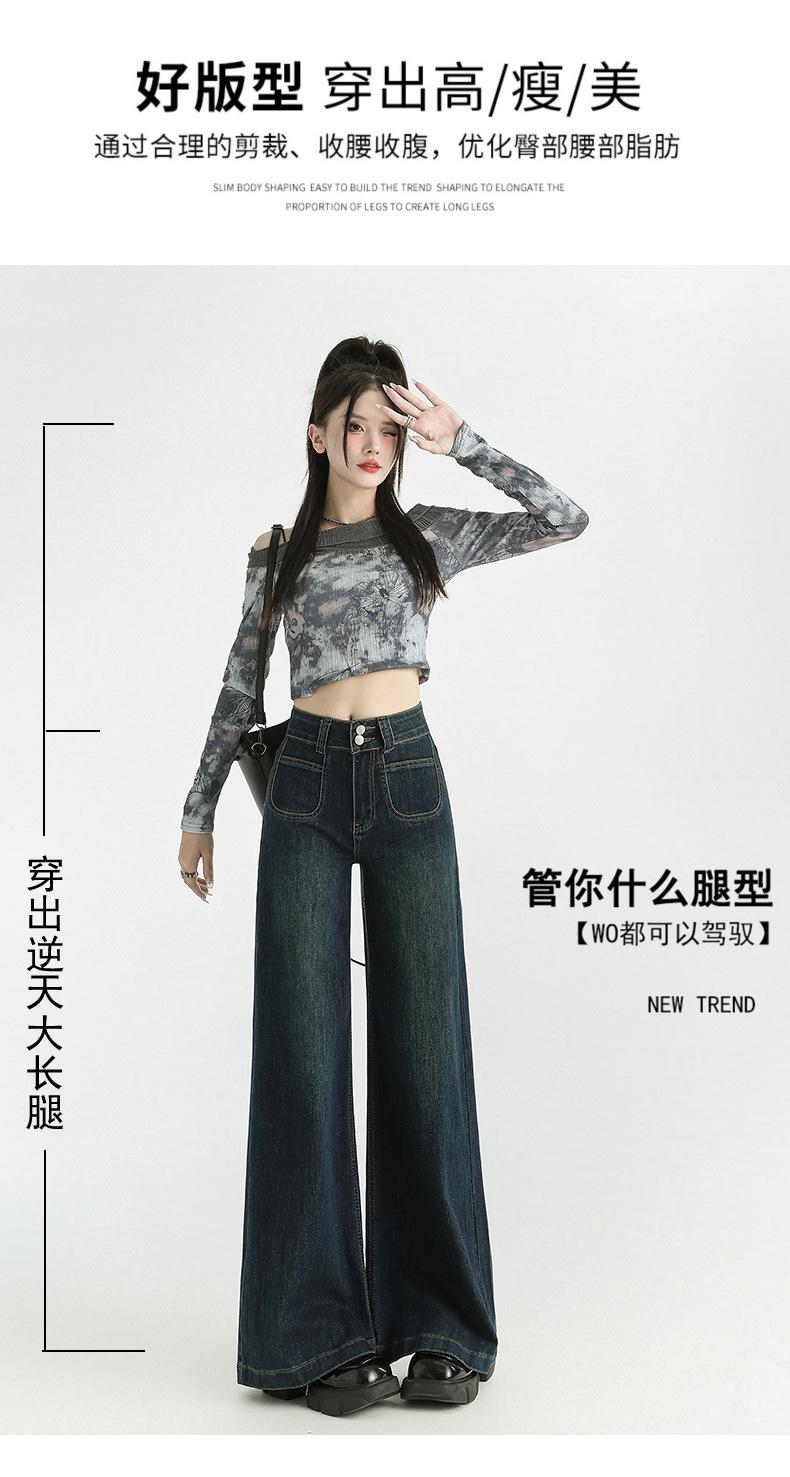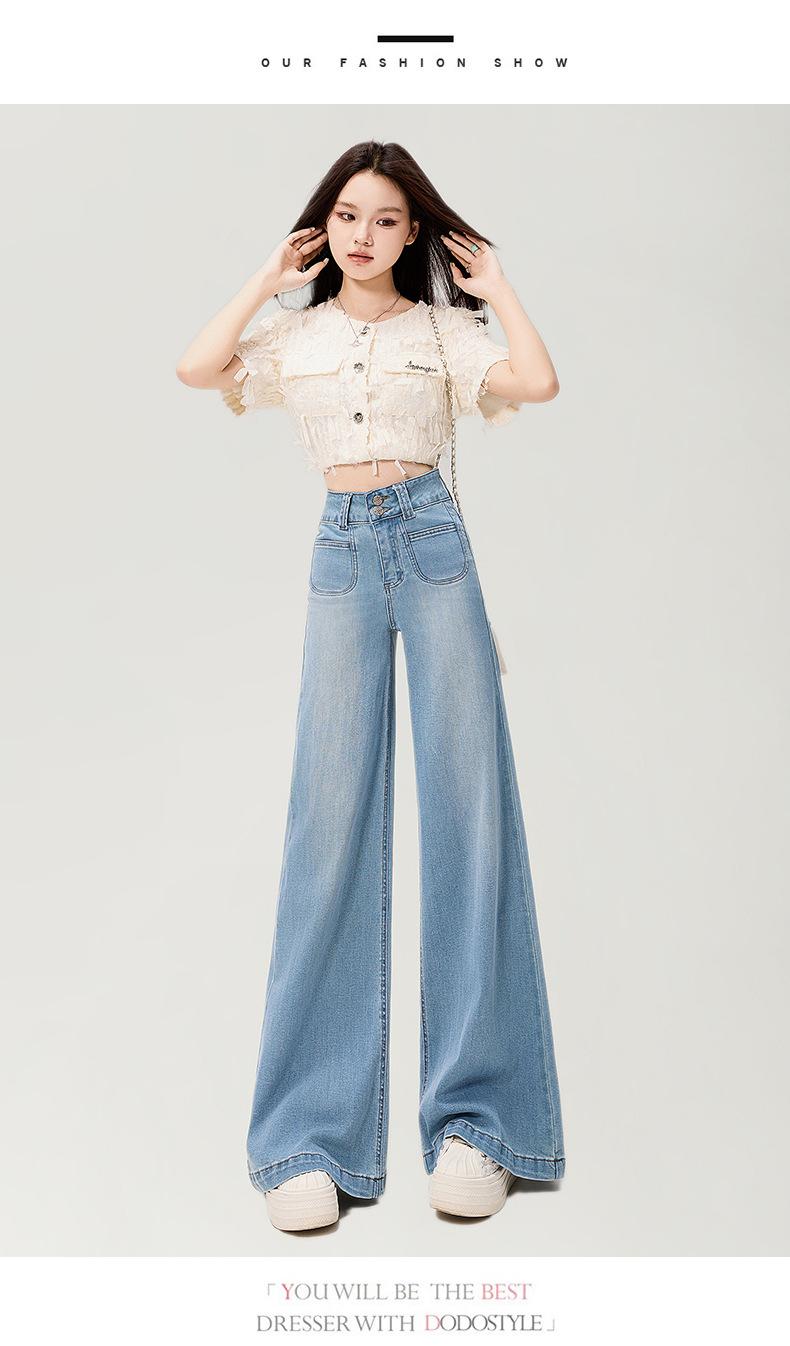 Ropa de Mujer de Seda Naranja# Jeans Americanos de Cintura Baja Holgados de Pierna Ancha para Mujer 2024 Nuevo Look Delgado Combinable Pantalones Micro-arrastre