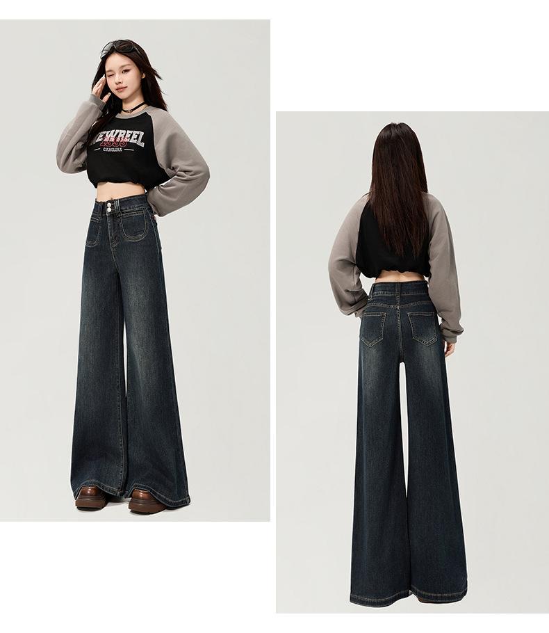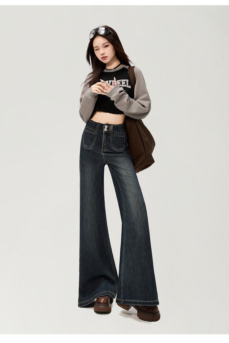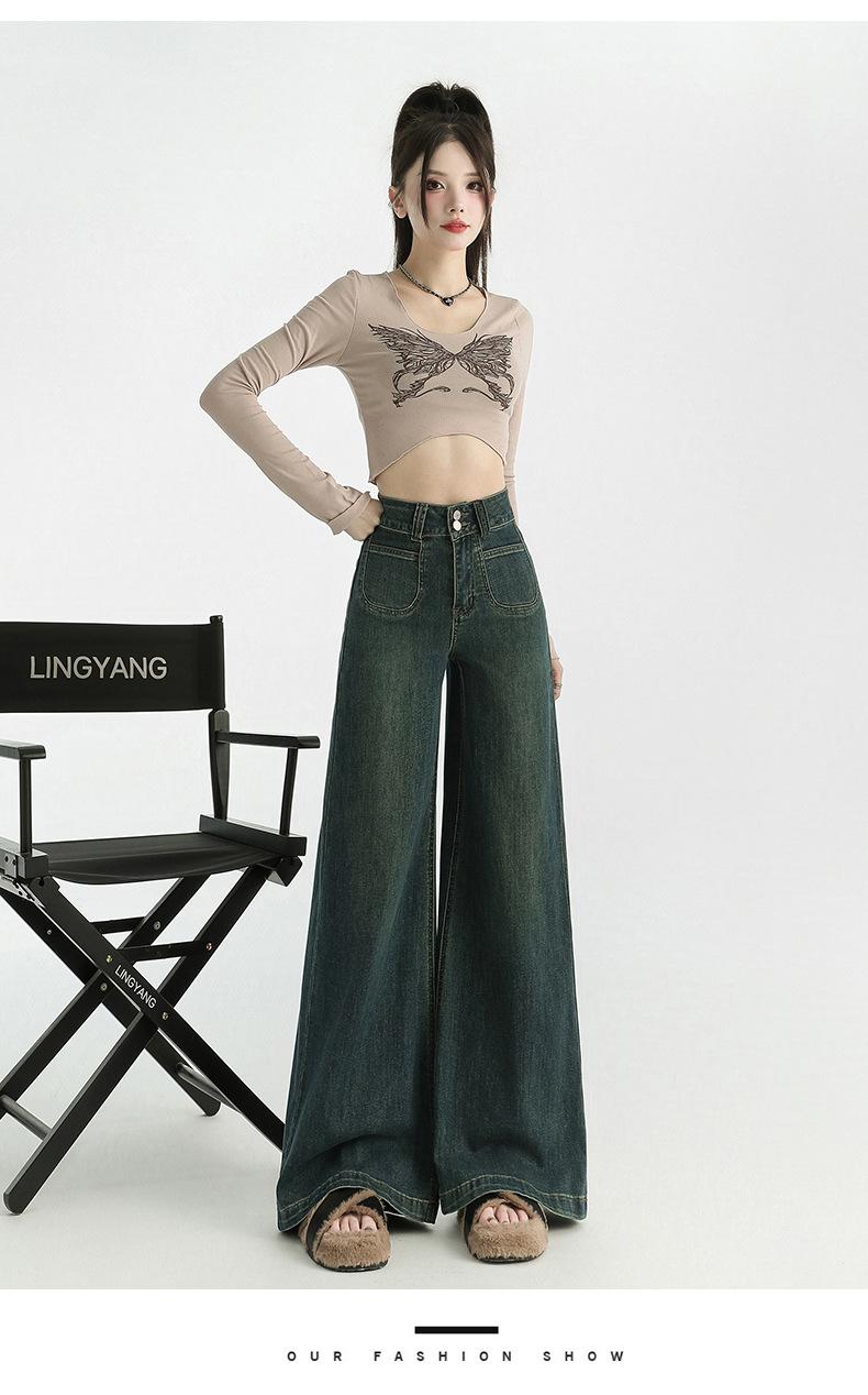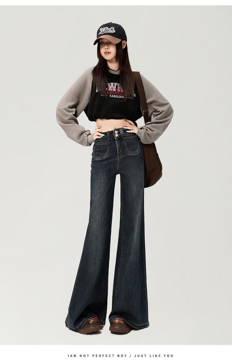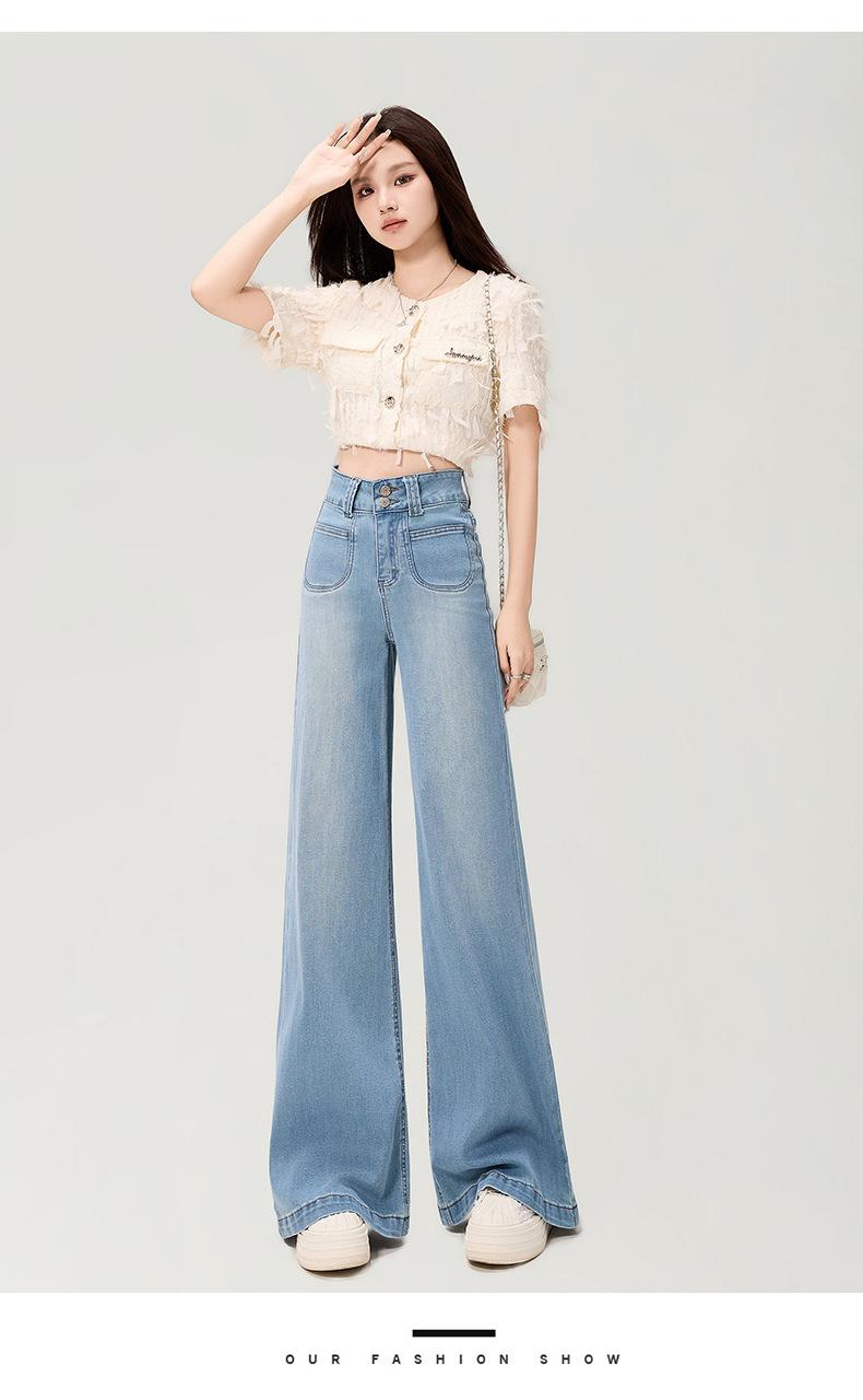 Ropa de Mujer de Seda Naranja# Jeans Americanos de Cintura Baja Holgados de Pierna Ancha para Mujer 2024 Nuevo Look Delgado Combinable Pantalones Micro-arrastre