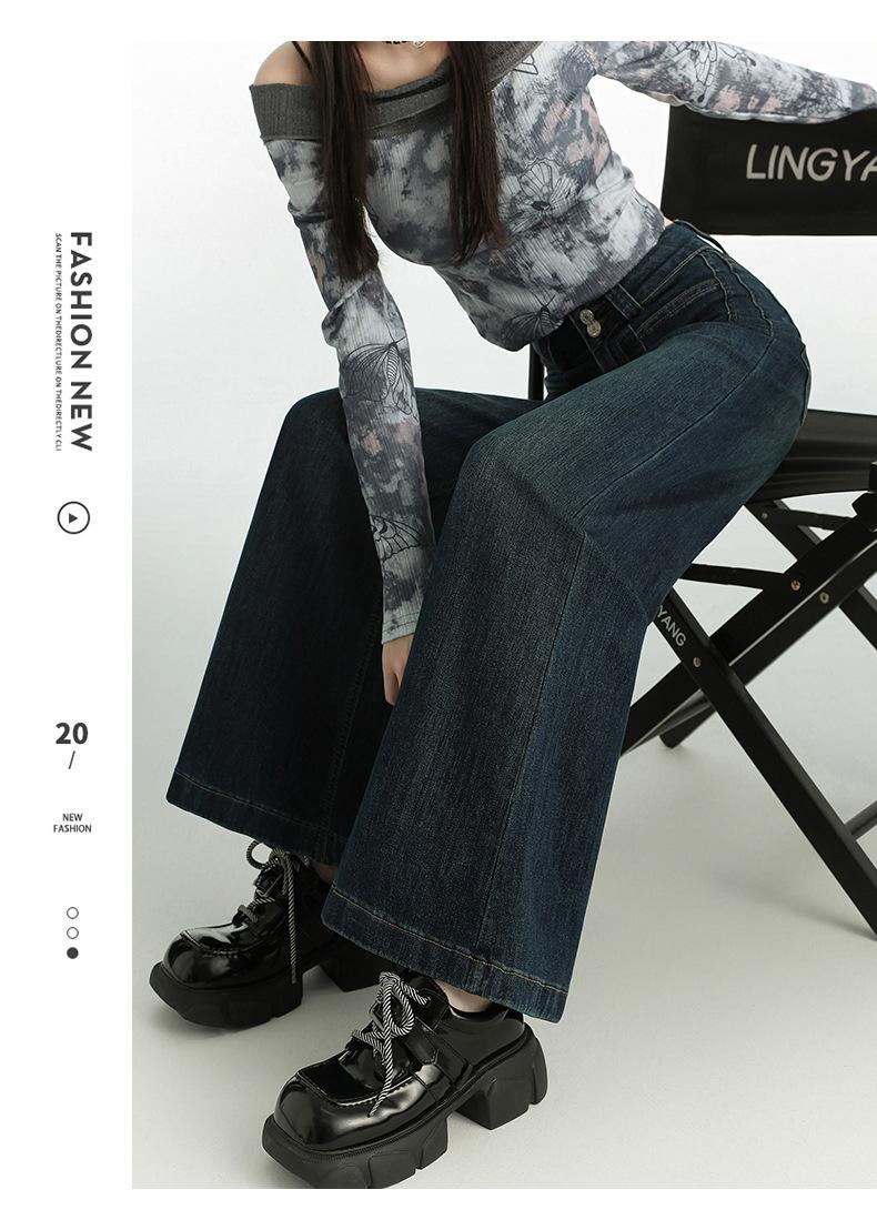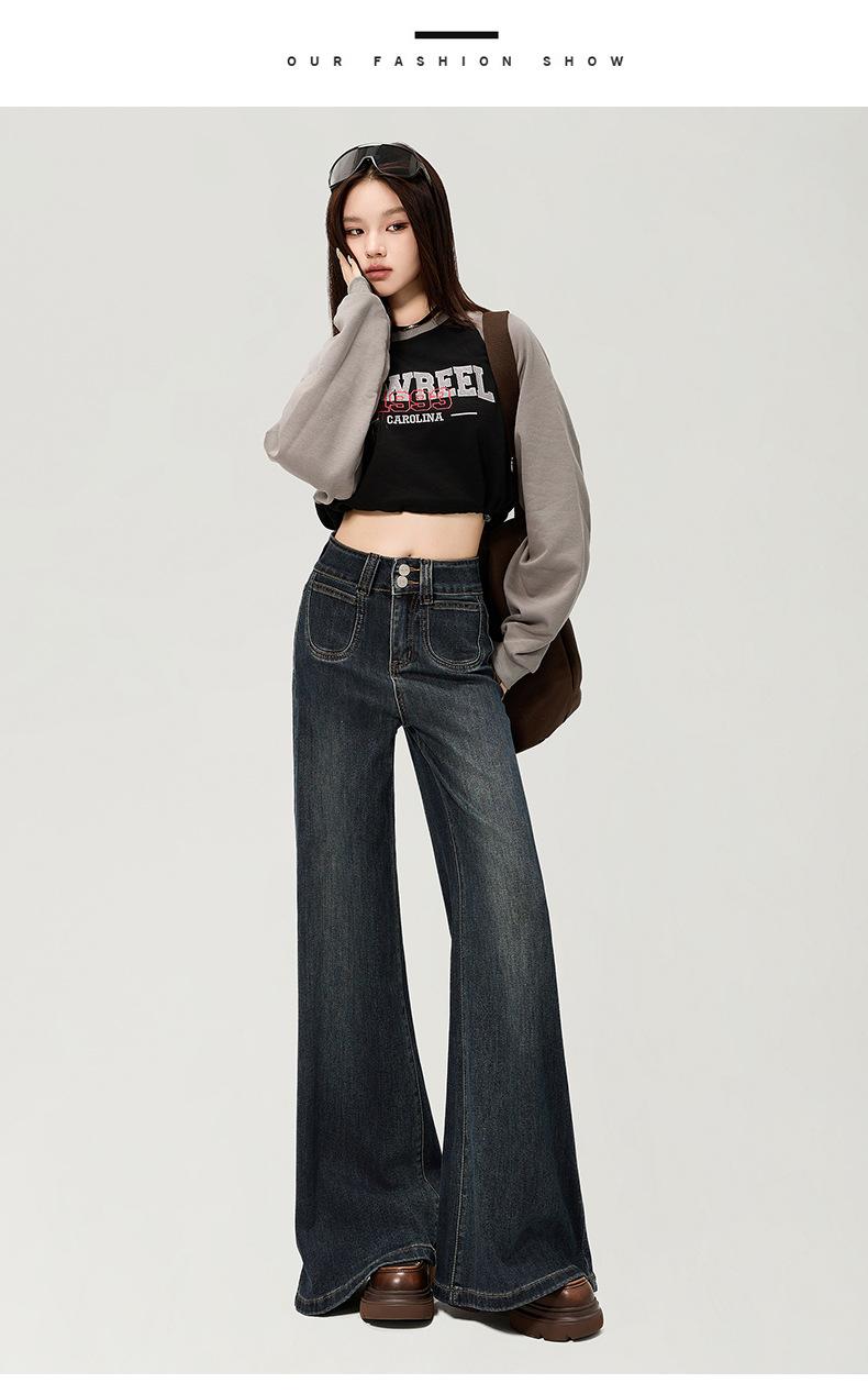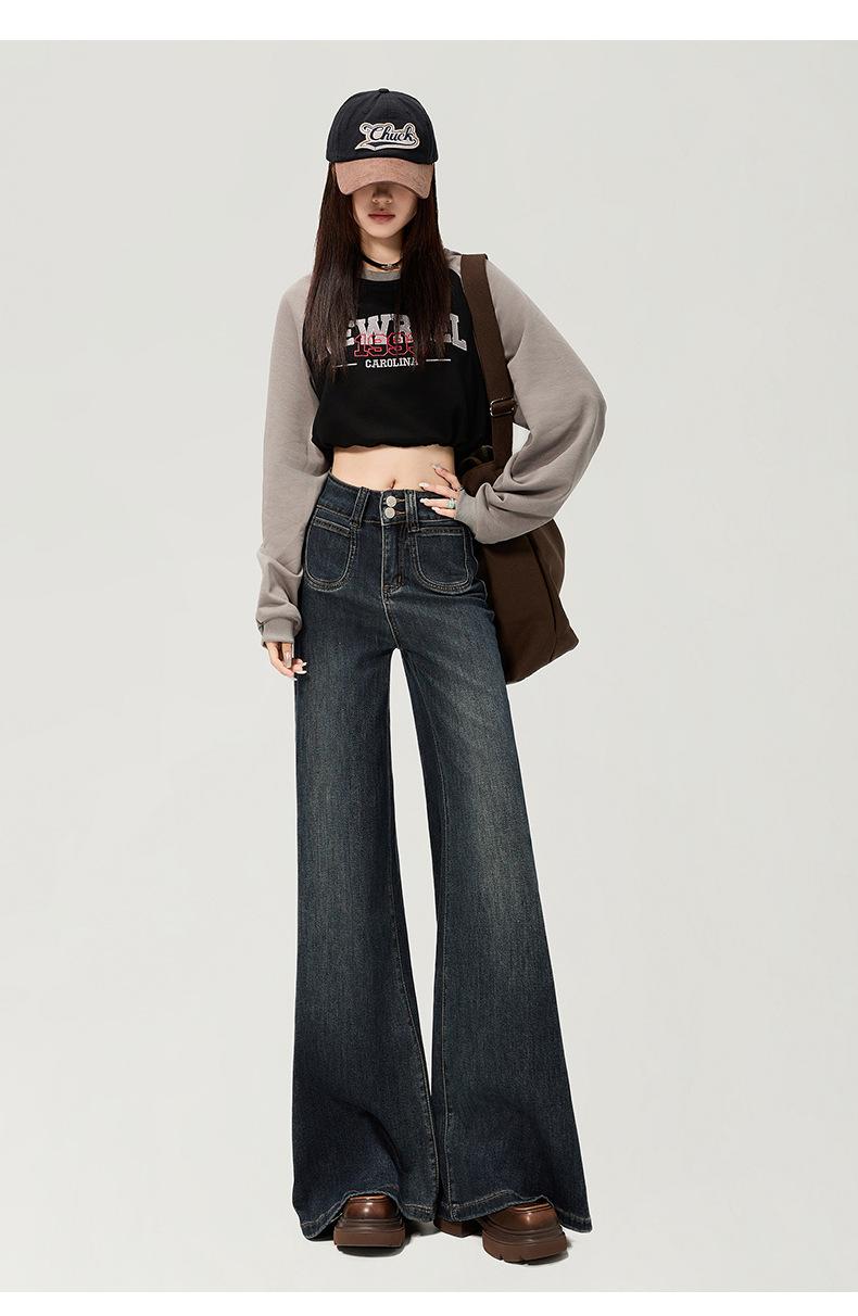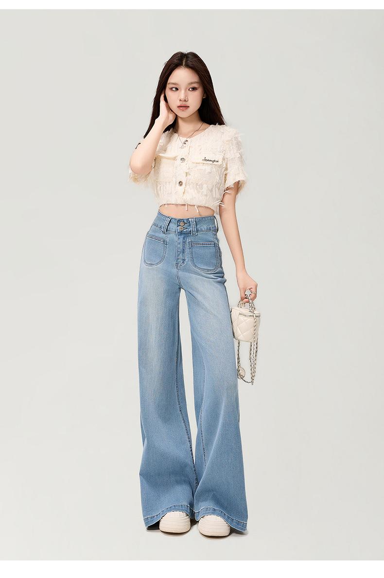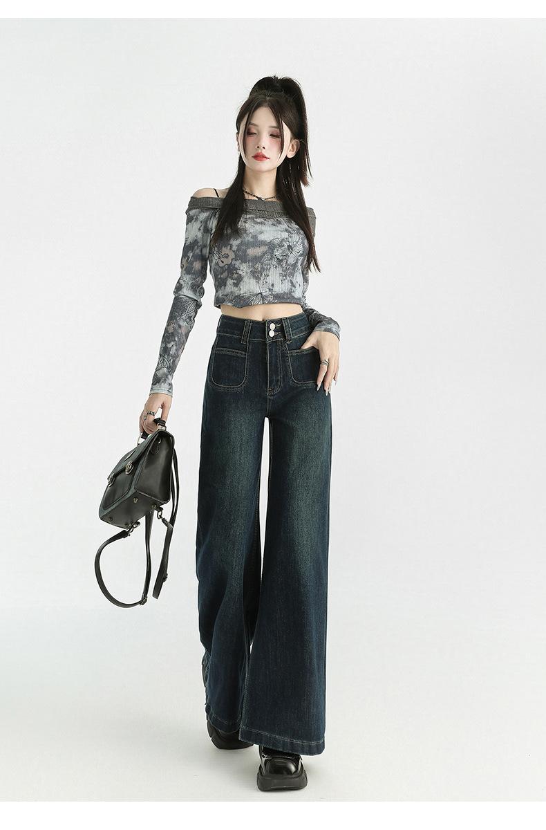 Ropa de Mujer de Seda Naranja# Jeans Americanos de Cintura Baja Holgados de Pierna Ancha para Mujer 2024 Nuevo Look Delgado Combinable Pantalones Micro-arrastre