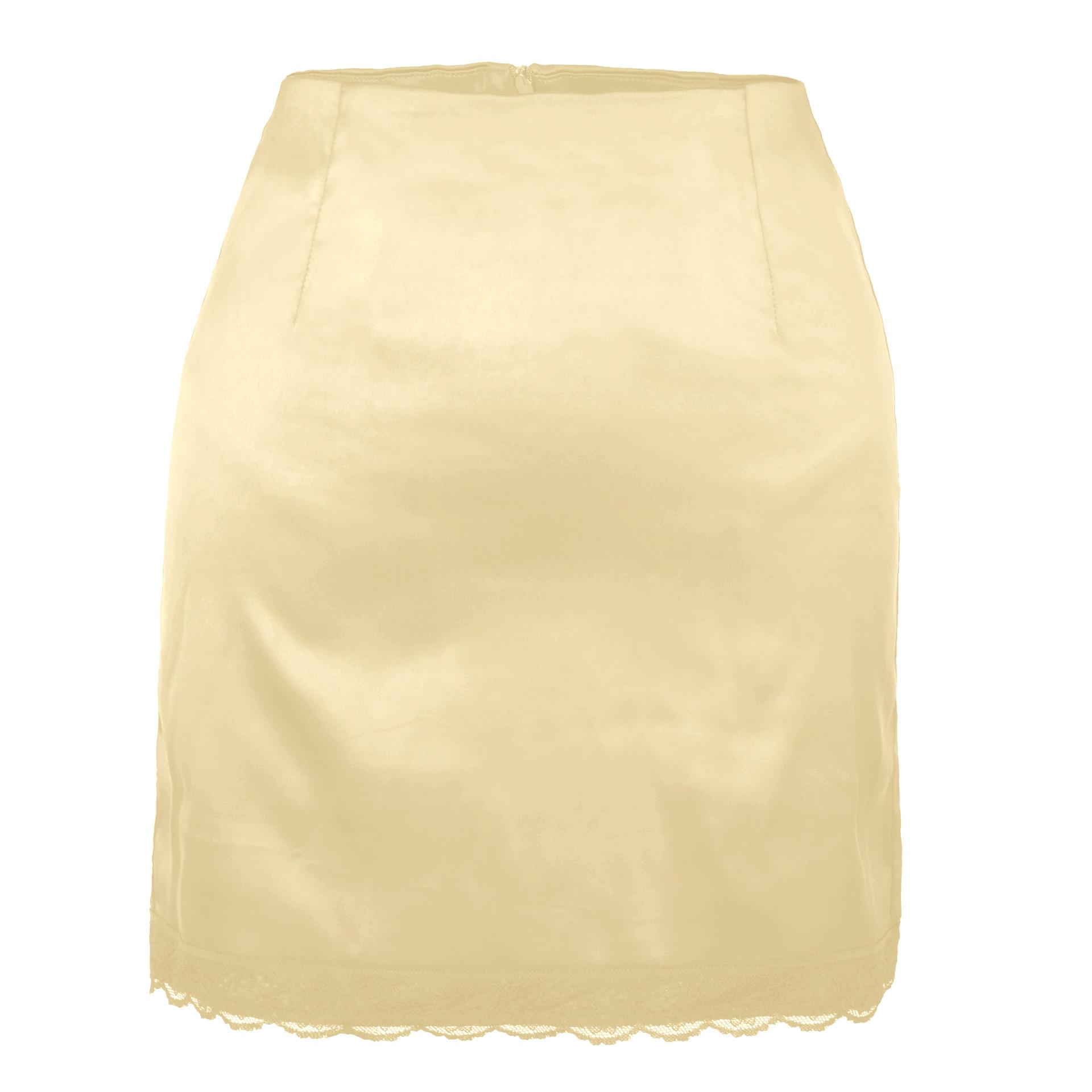 Falda Tubo de Cintura Alta para Mujer Transfronteriza Color Sólido Falda de Primavera y Verano para Mujer Satén Elástico Encaje Sexy Ajustada