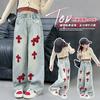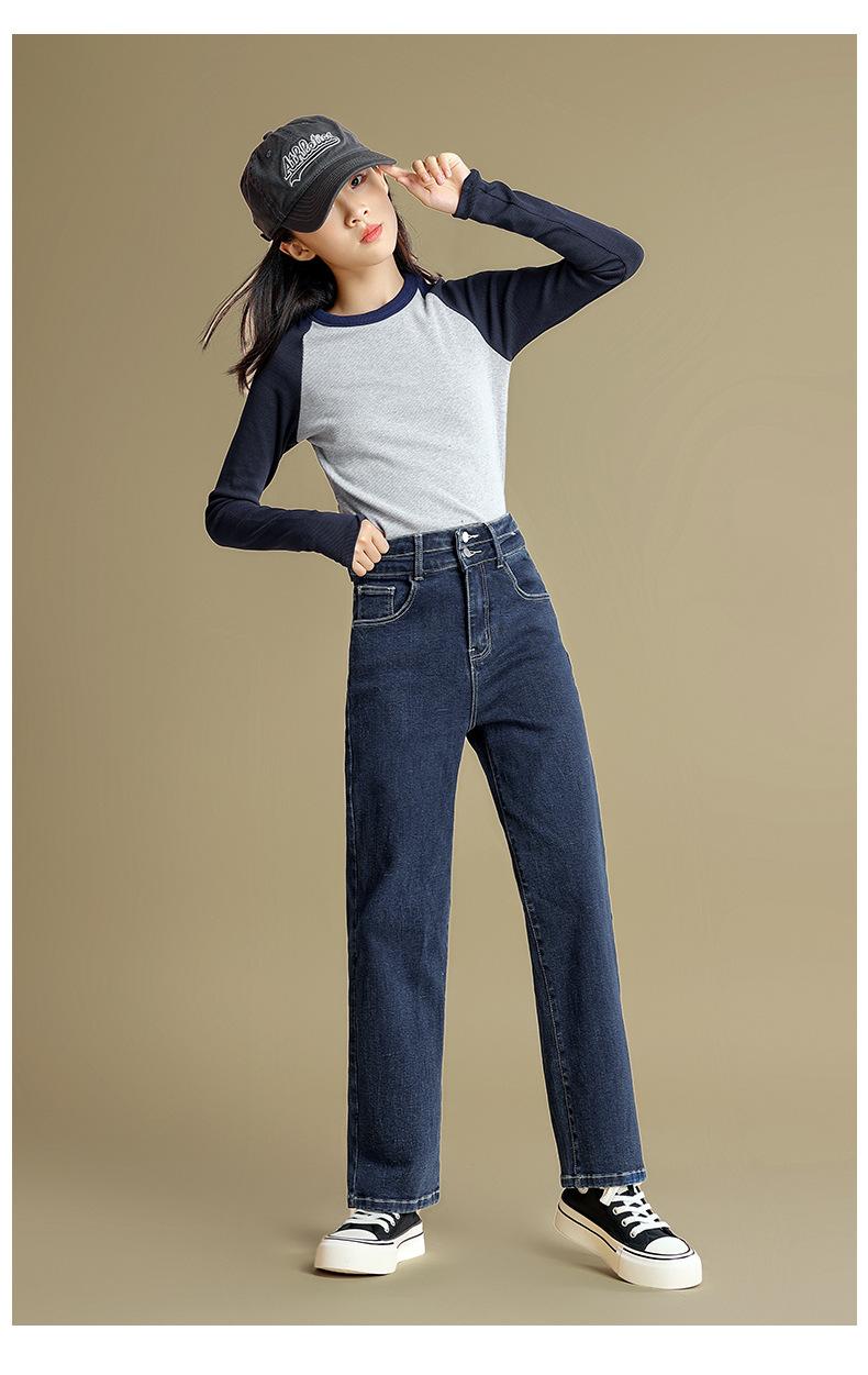 Pantalones vaqueros para niñas 2024, nueva ropa de primavera para niños, pantalones rectos para niñas, pantalones casuales de cintura alta para primavera y otoño para niñas