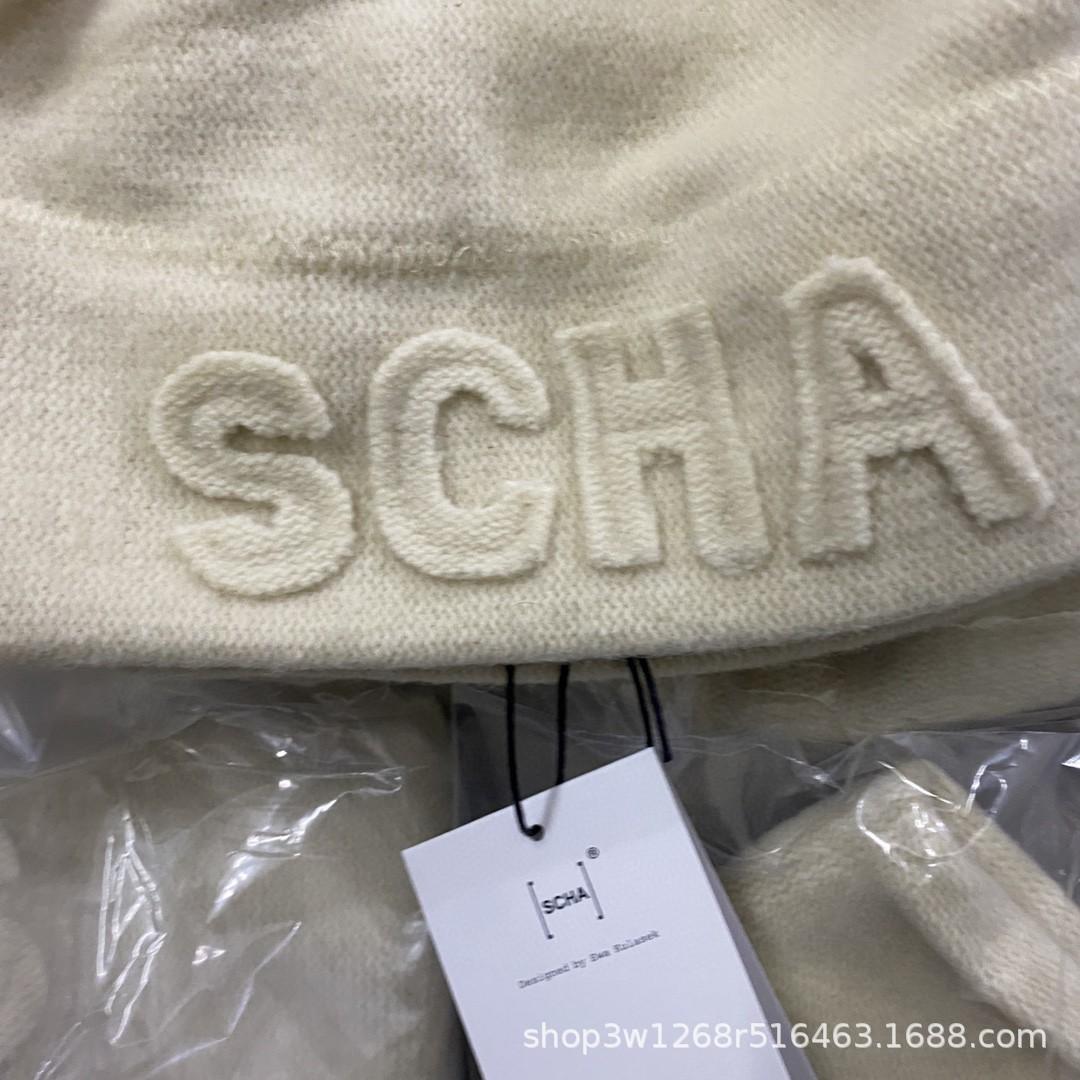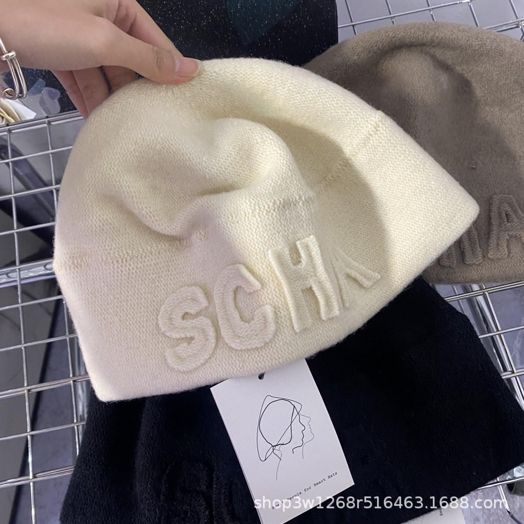 Gorro de punto con letras SCHA, hecho a mano en Alemania, con letras en forma de cúpula, versátil, estilo coreano, con protección para las orejas, cálido, para otoño e invierno, para mujer.