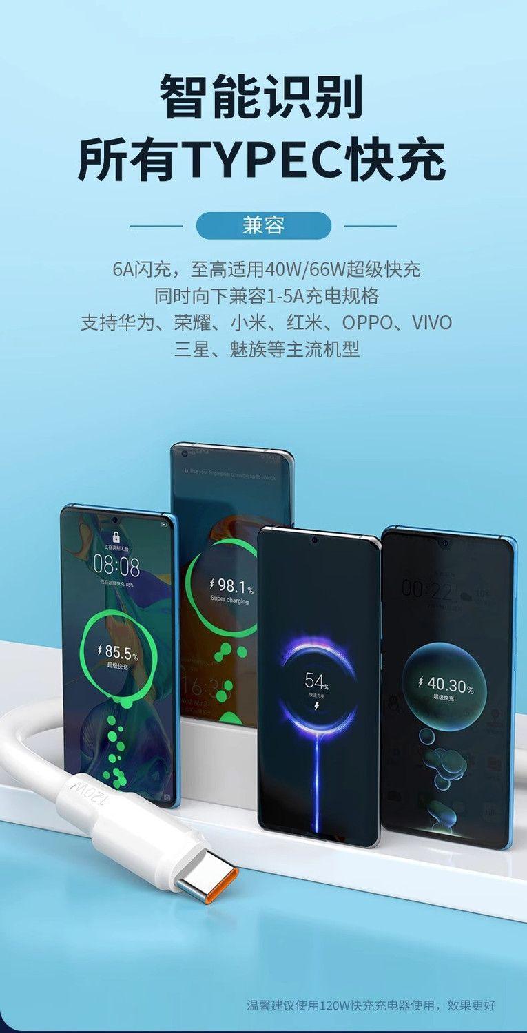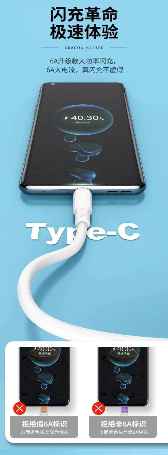 Cable de Datos de Carga Rápida de 120W 5.0 Cable Tipo C Adecuado para Cable Huawei Cable de Carga Vivo Glory Cable para Teléfono Móvil