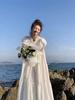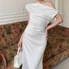 Vestido Morado Suave Estilo Francés con Mangas Cortas con Volantes y Volantes, Vestido de Hada Elegante Petite Adelgazante Verano 2025