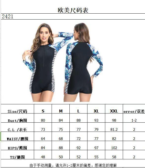 Traje de baño de una pieza nuevo de comercio exterior europeo y americano transfronterizo 2024, bikini de protección solar de manga larga conservador para mujer, traje de surf de Amazon