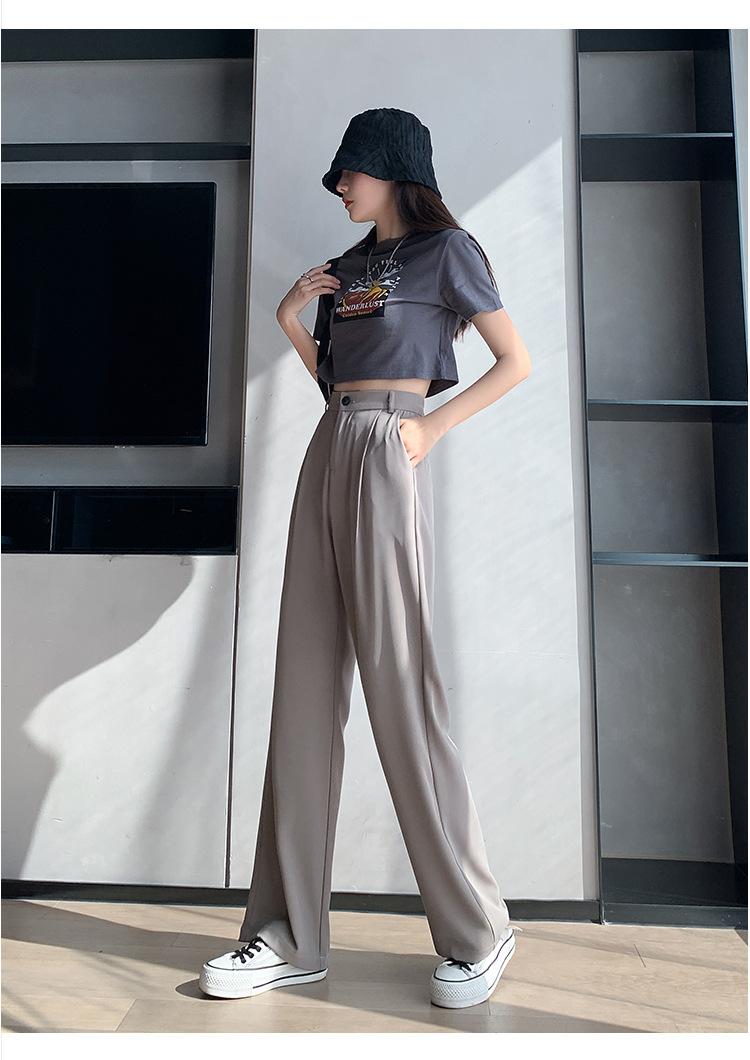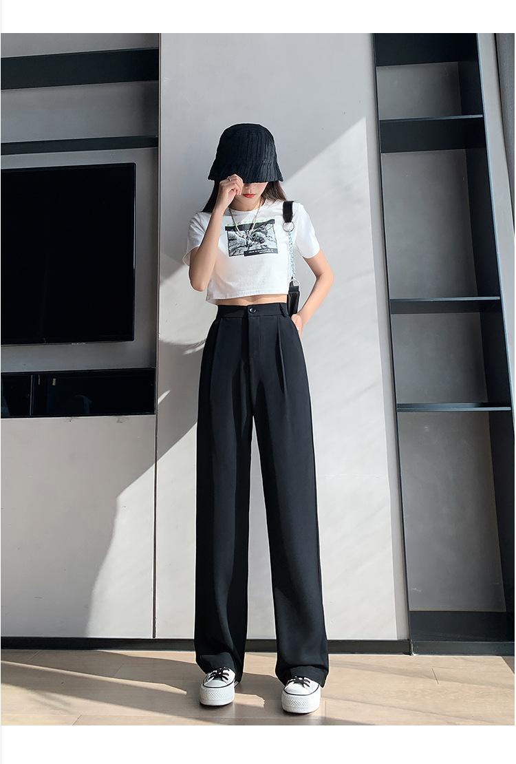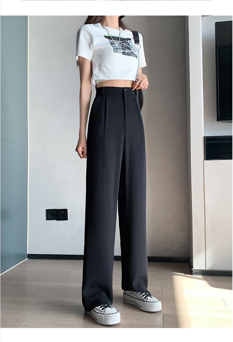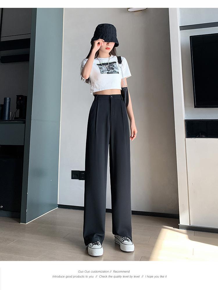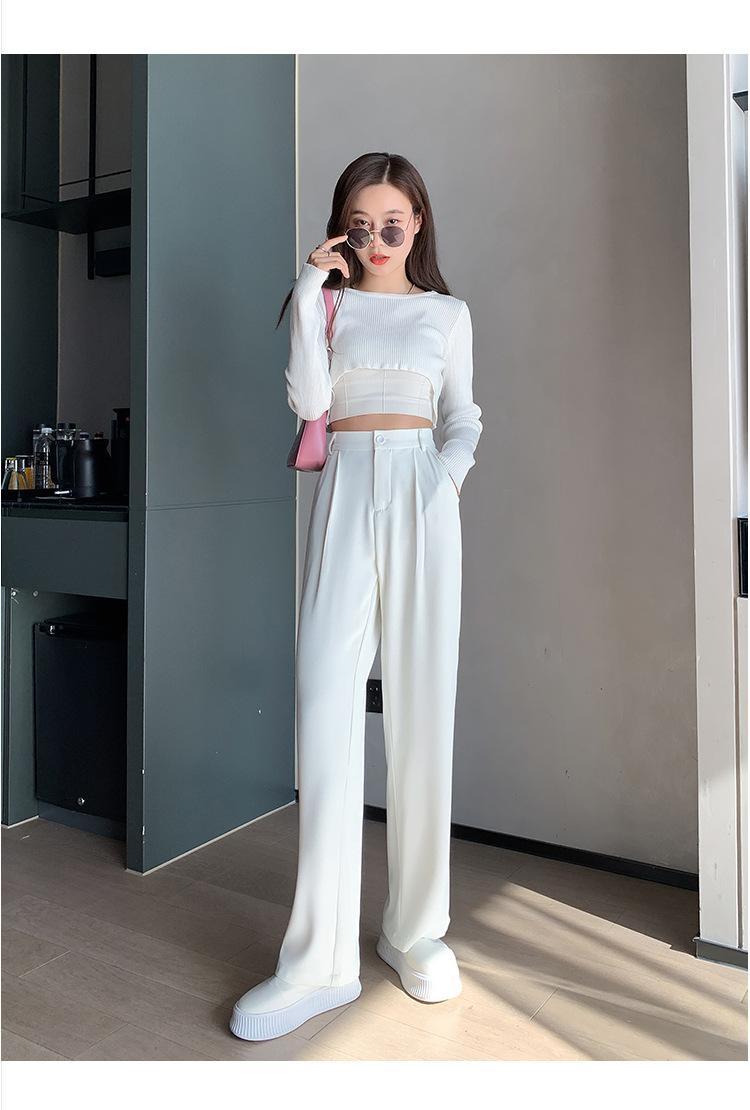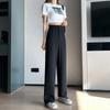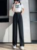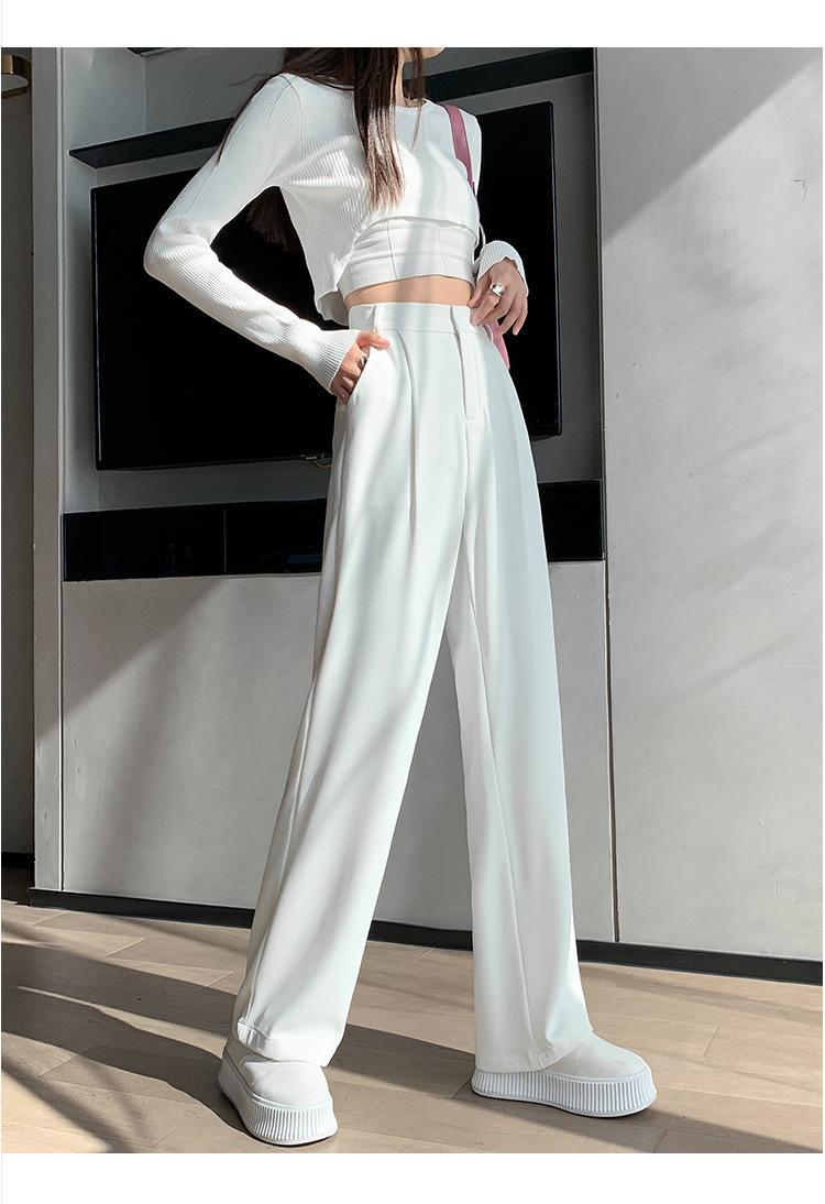 Traje Blanco Pantalones de Pierna Ancha para Mujer Verano Cintura Alta Drapeados 2025 Nuevo Recto Suelto Slim Casual Largo Hasta el Piso Pantalones de Traje