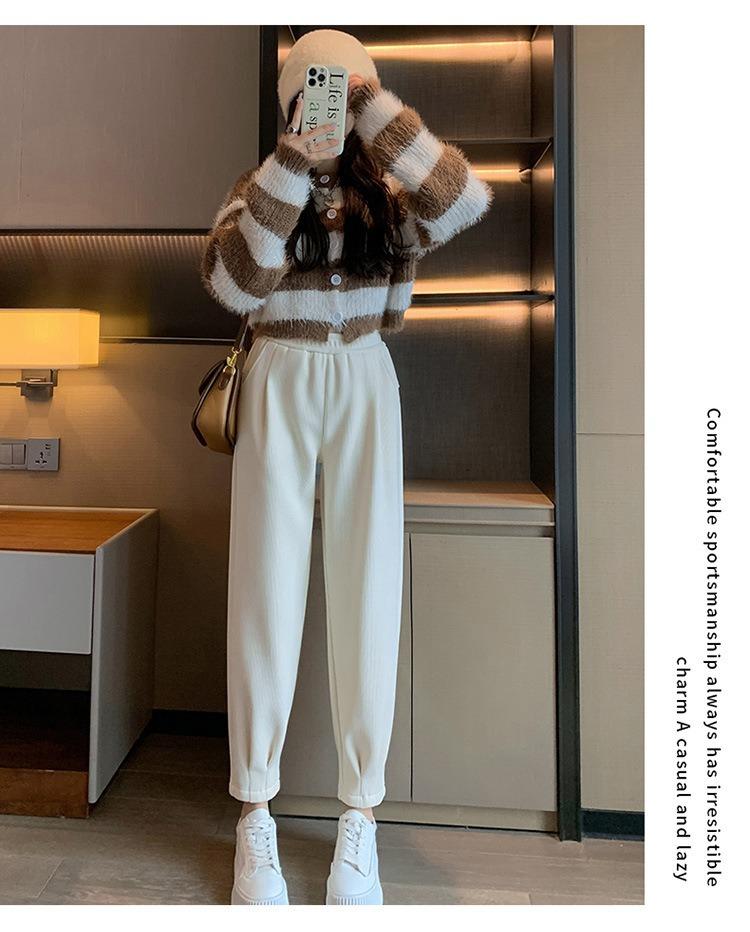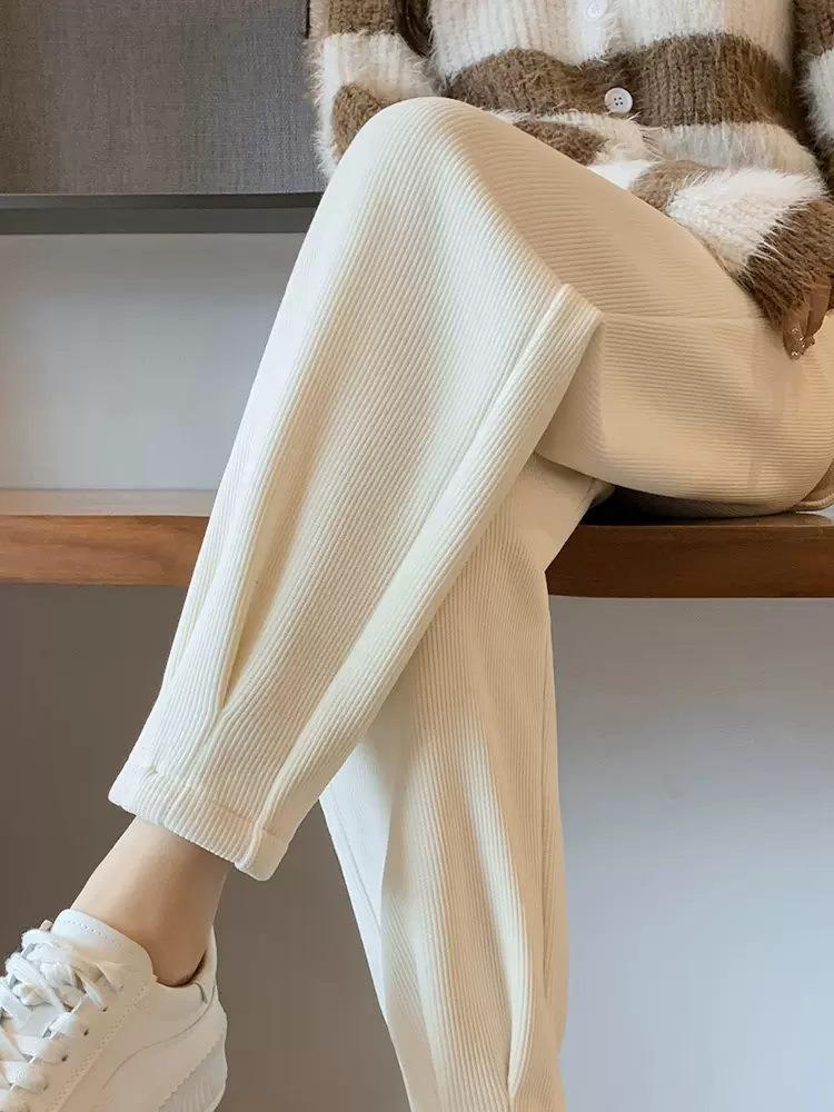 Pantalones deportivos blancos de terciopelo de algodón europeo para mujer, estilo nuevo de primavera, otoño e invierno 2025, pantalones casuales tipo zanahoria harem petite