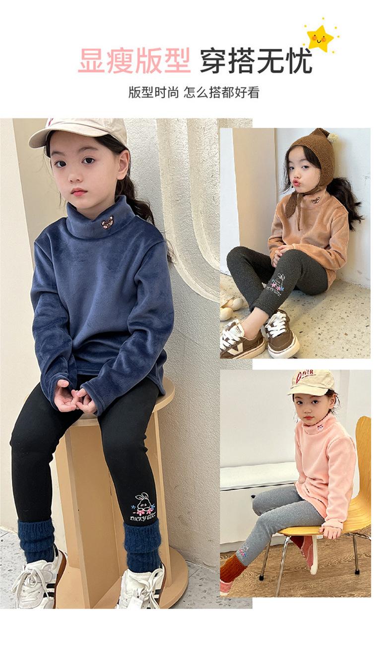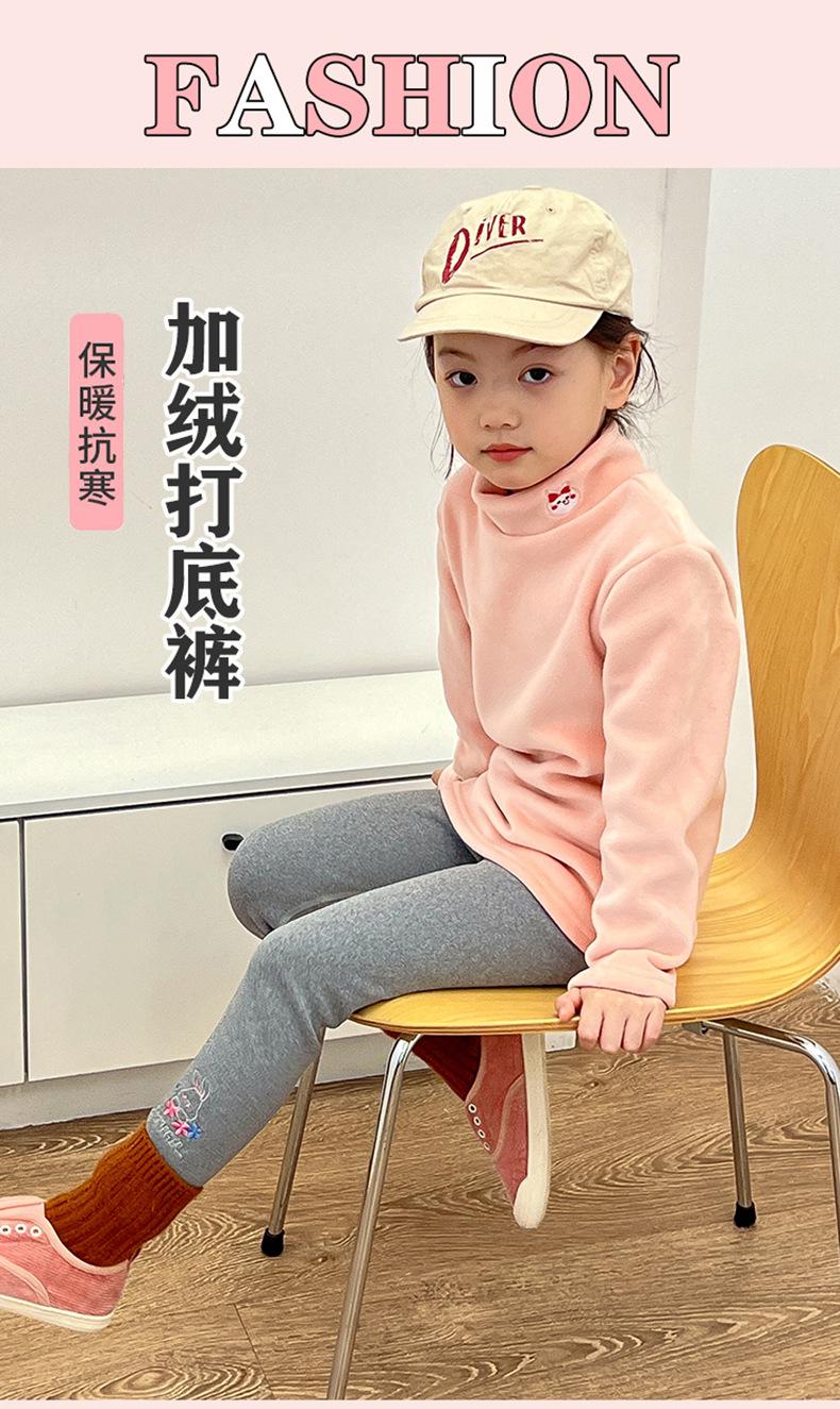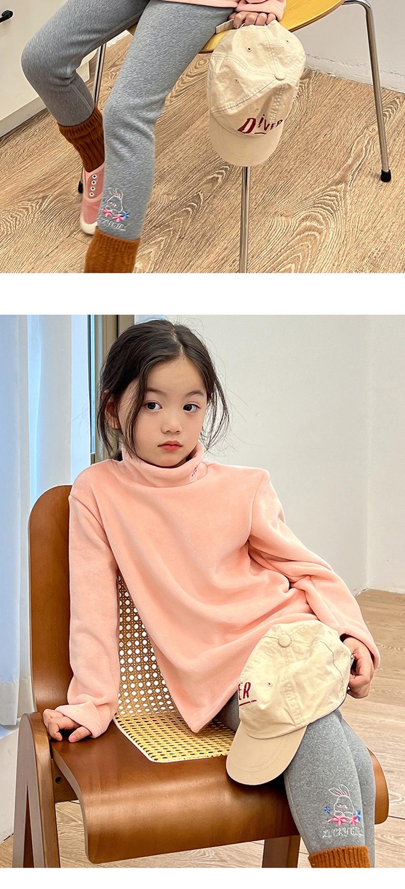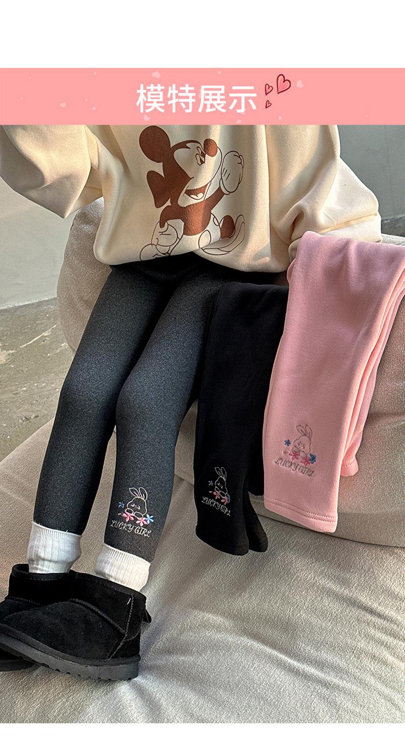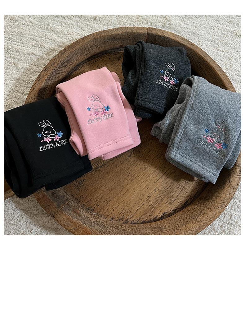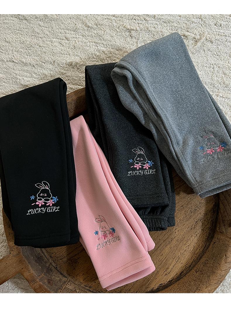Pantalones cálidos de otoño e invierno 2023 para niñas, leggings para niños con forro polar de estilo coreano, lindos pantalones con bordado de conejo para niñas con forro polar