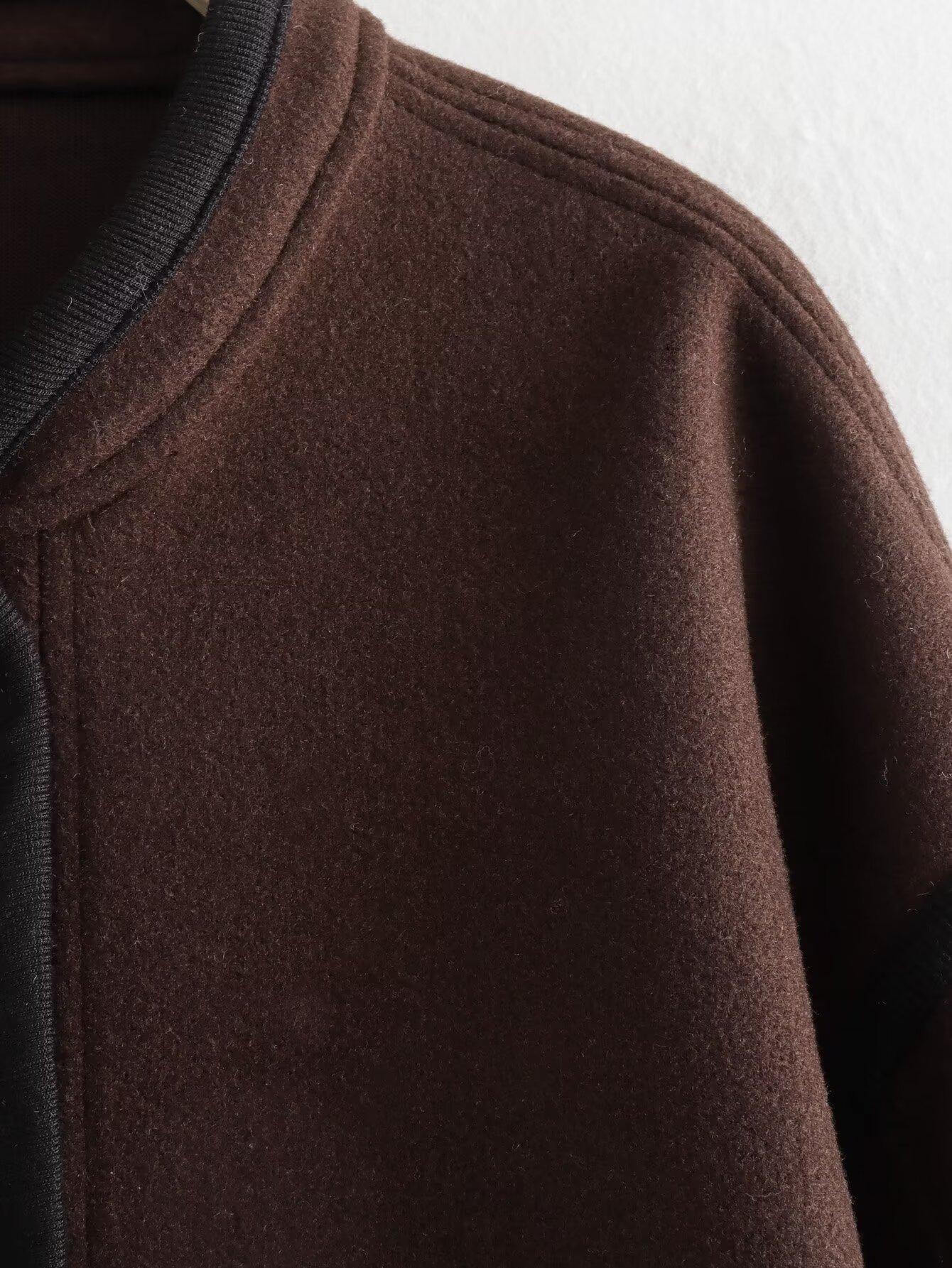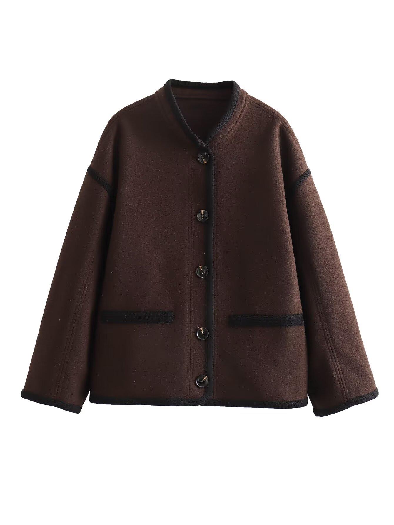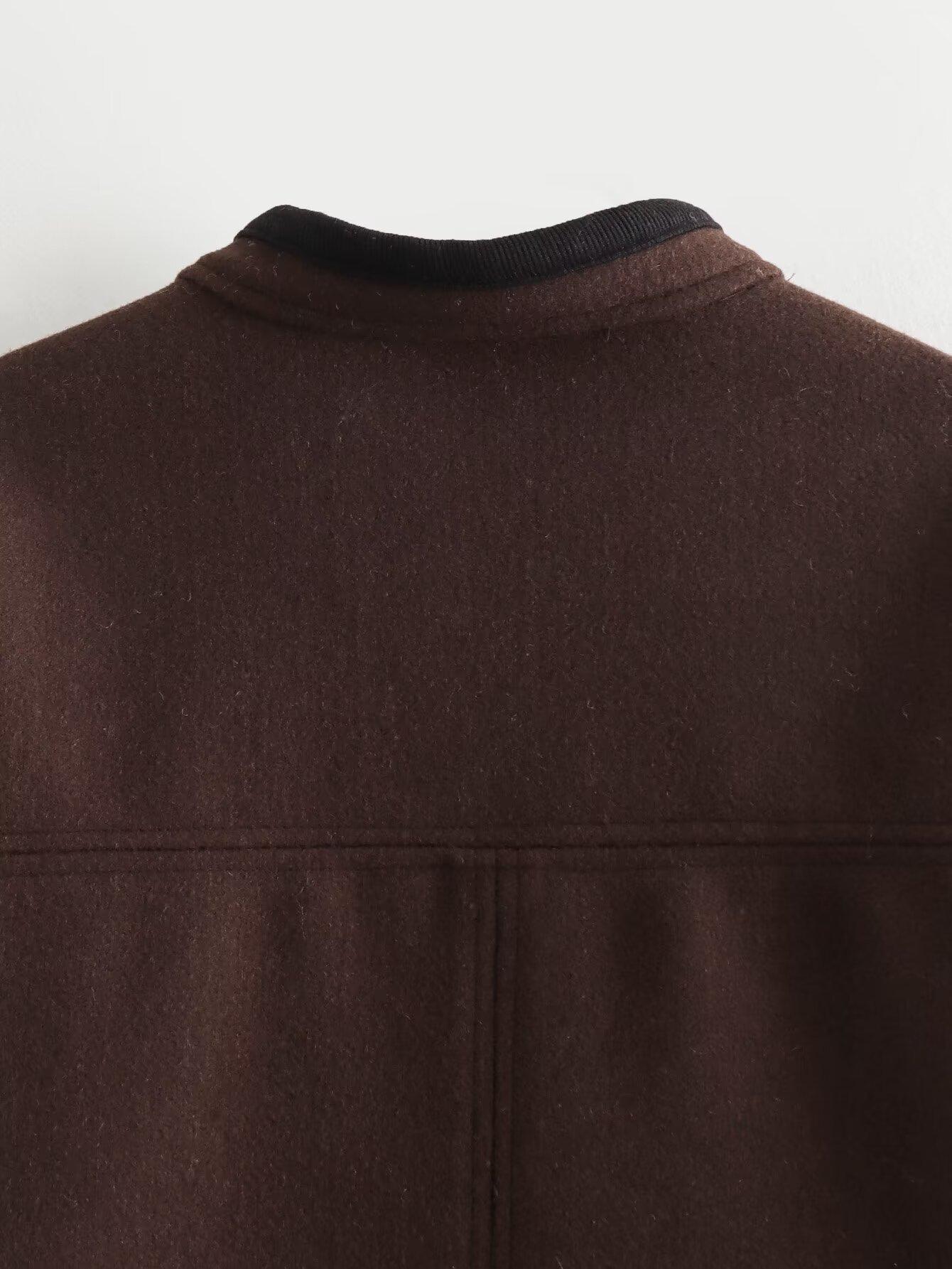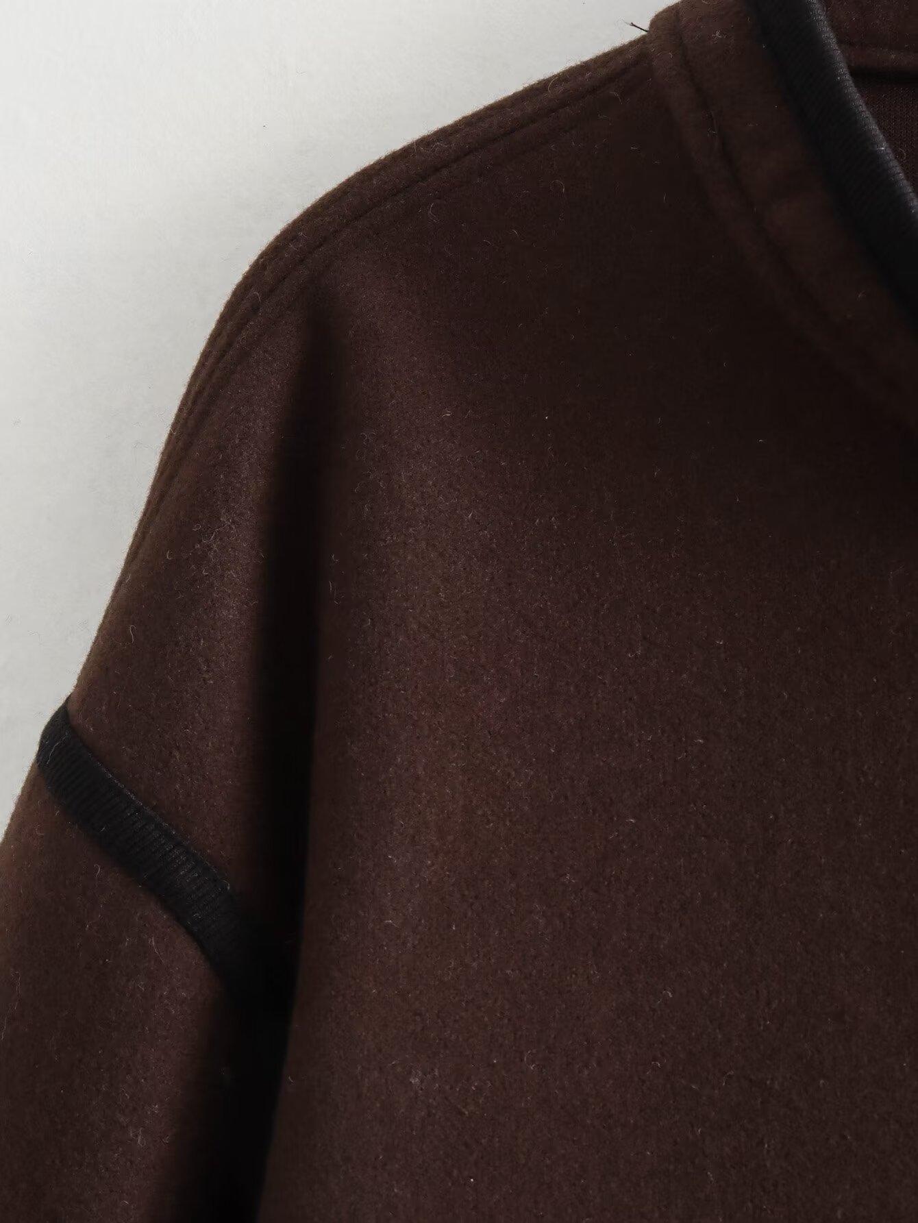 Zatrax-2024 ropa de mujer estilo europeo y americano de primavera y otoño, abrigo de lana con costuras, casual, versátil, con cuello alto y bolsillo
