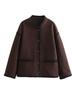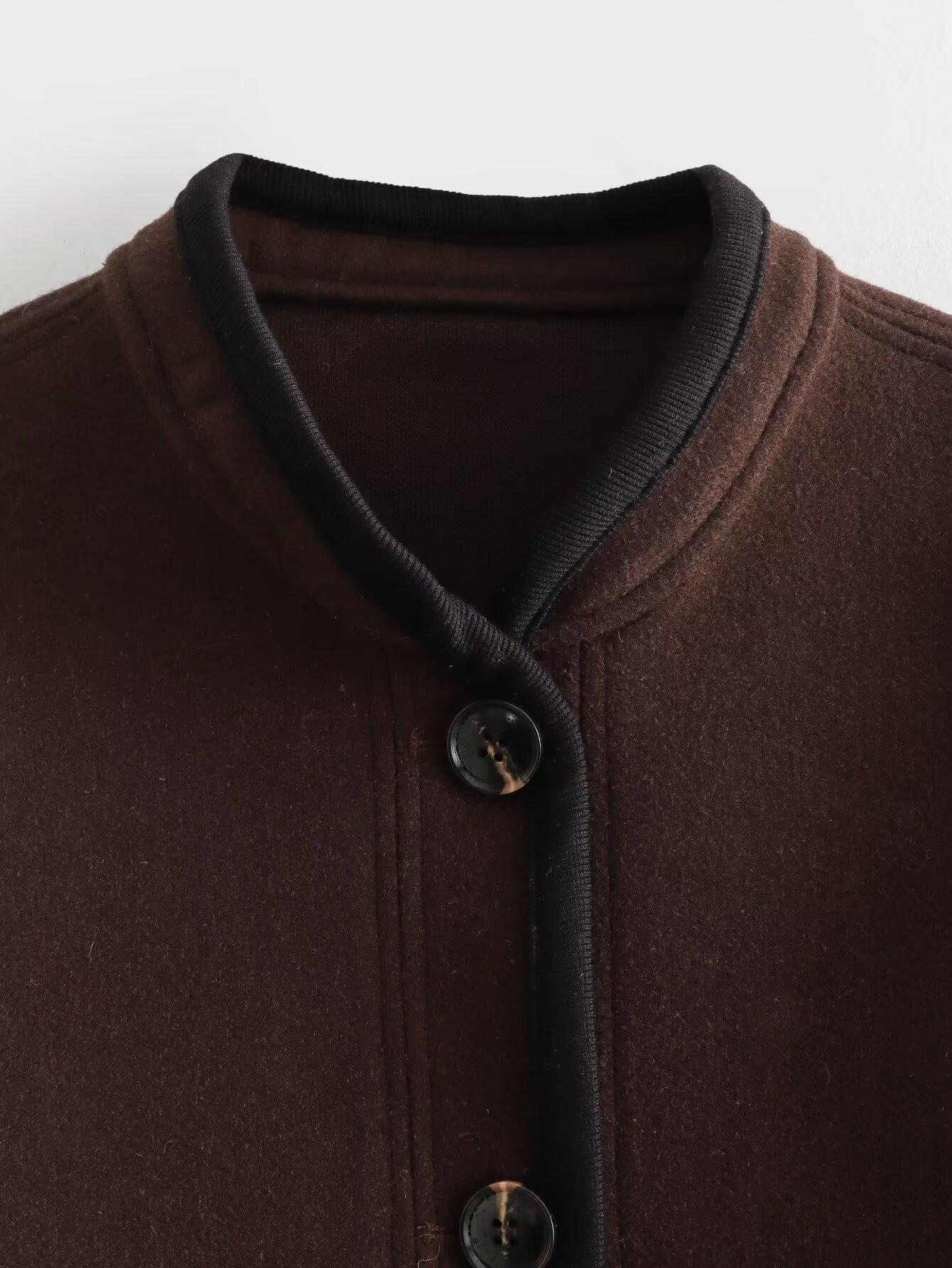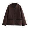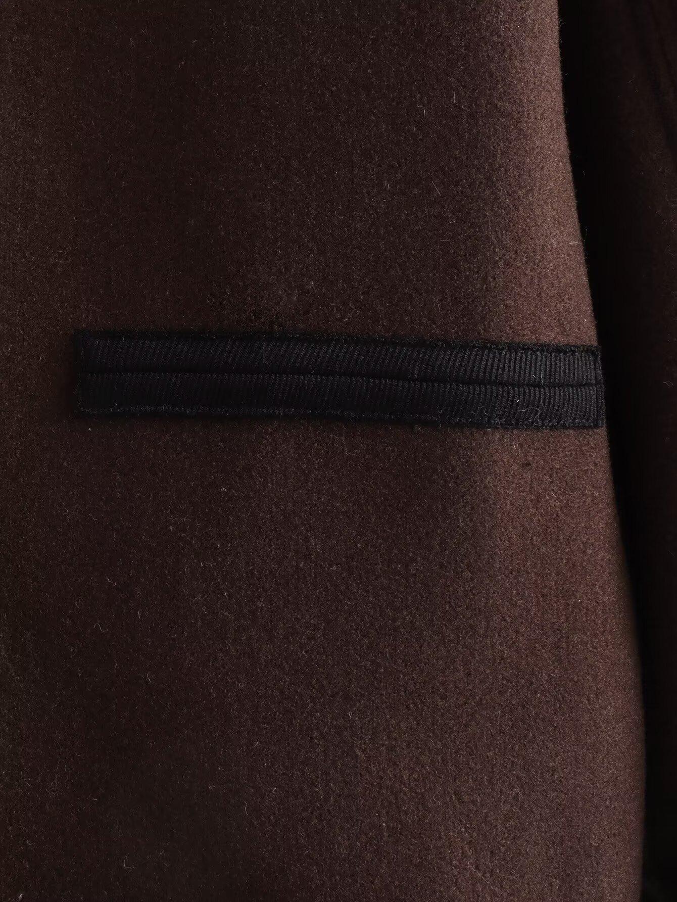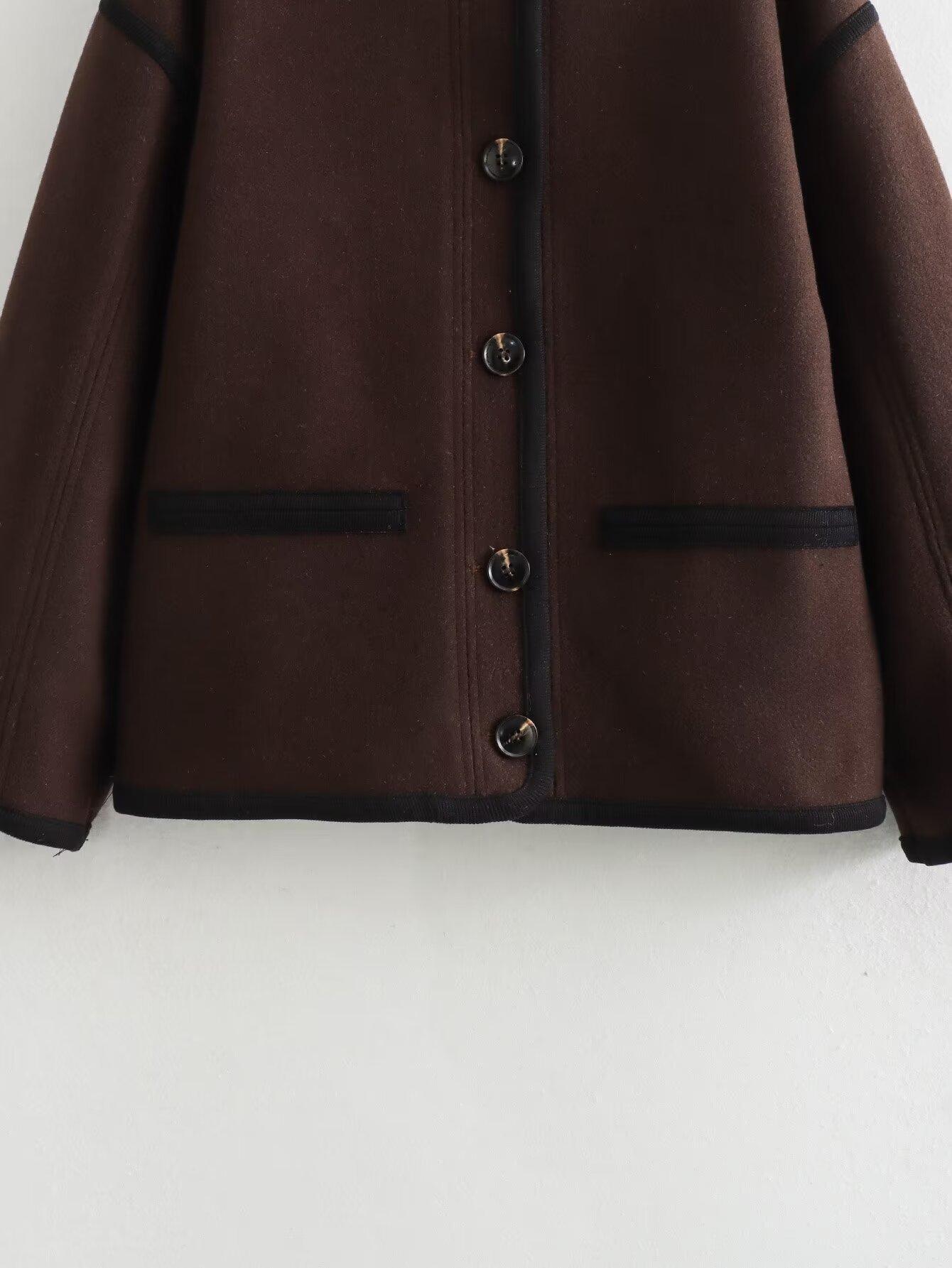 Zatrax-2024 ropa de mujer estilo europeo y americano de primavera y otoño, abrigo de lana con costuras, casual, versátil, con cuello alto y bolsillo