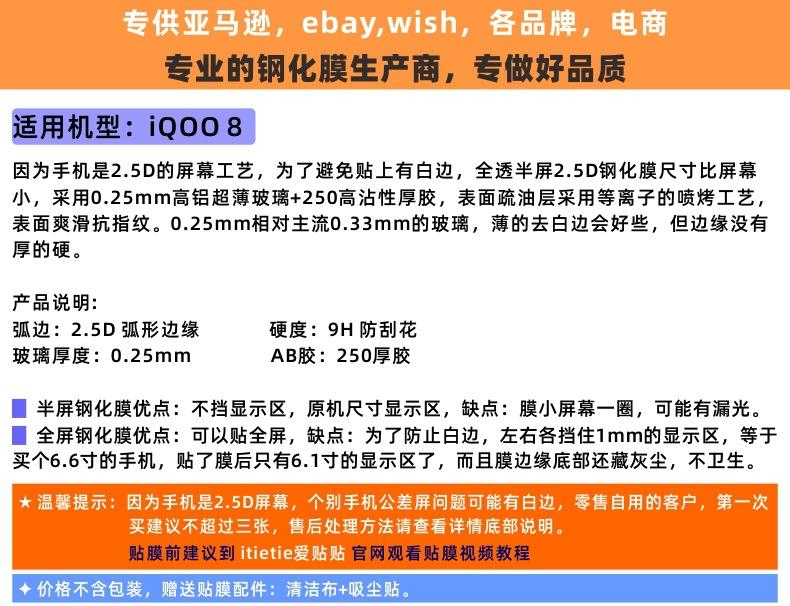 Pegatinas de amor para teléfono móvil iQOO 8, película templada, película protectora de vidrio antihuellas HD de pantalla no completa para teléfono móvil