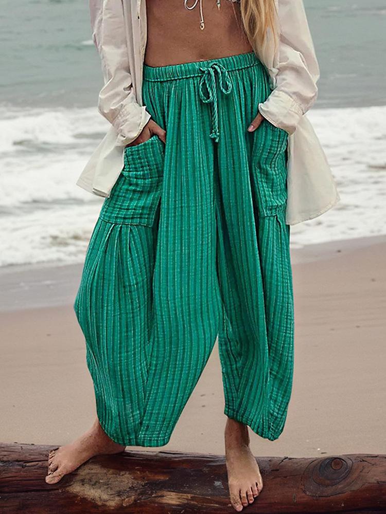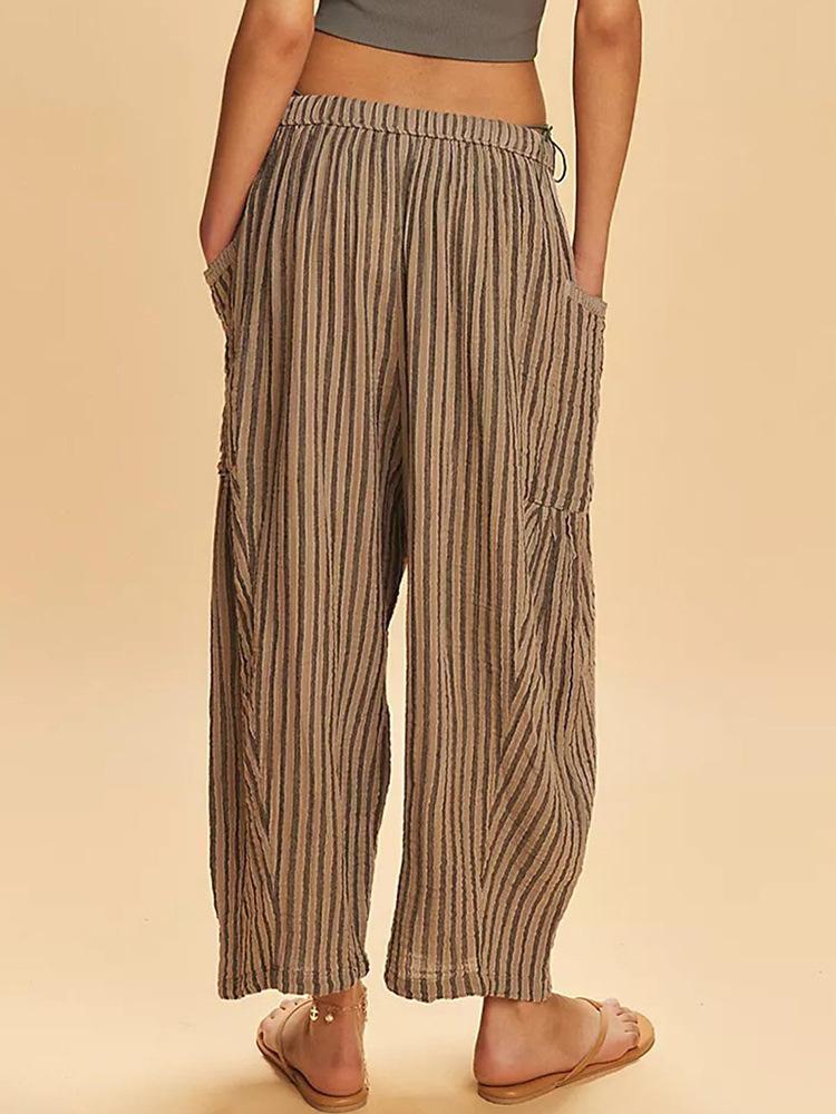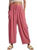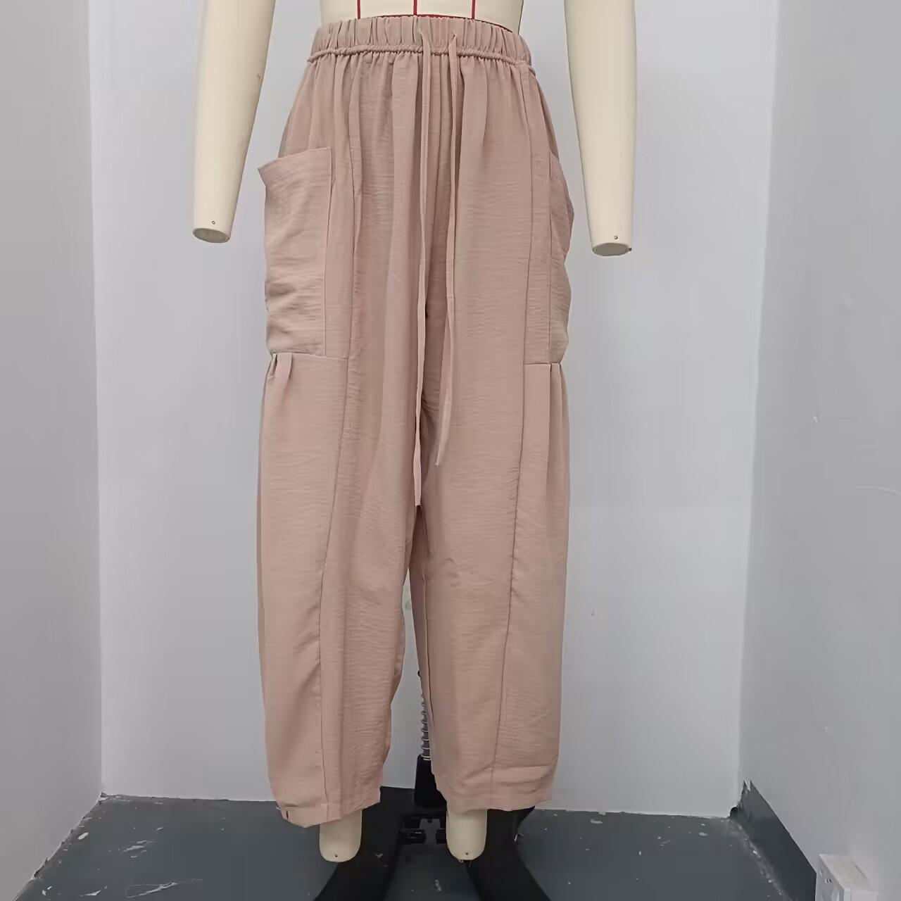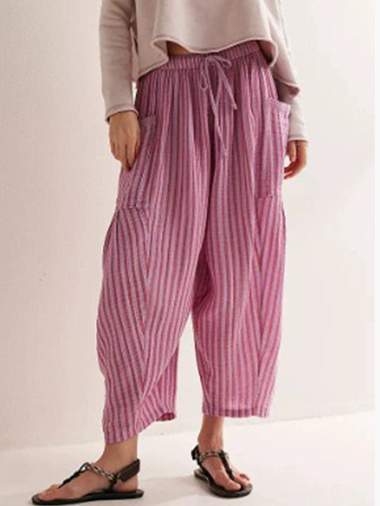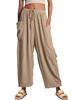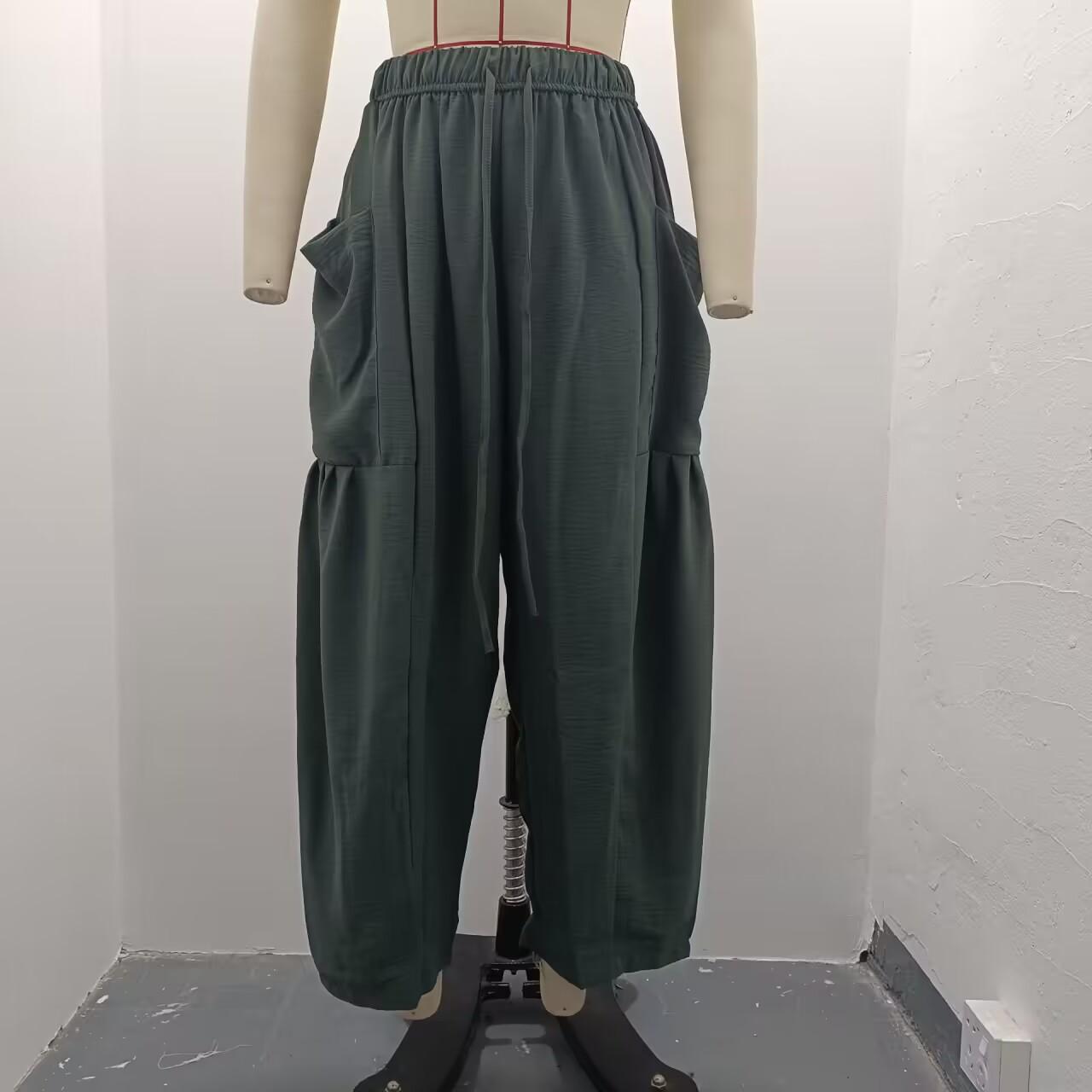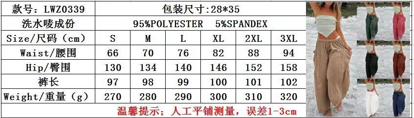 Pantalones Rectos de Verano 2025 con Cintura Elástica para Mujer, Algodón y Lino Nueve Puntos Plisados Casuales, Estilo Transfronterizo Europeo y Americano de Venta Caliente, Estilo Transpirable