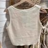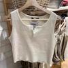 Chaleco de punto sin mangas con cuello redondo y tres botones estilo BM para mujer, color liso, combinable con todo, con tirantes cortos, moderno