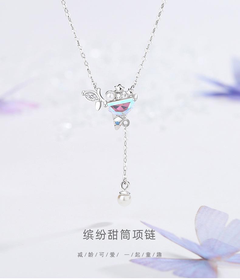 Collar original de cono dulce para mujer, de plata de ley 925, con diseño creativo de nicho y colgante de cadena de clavícula con borla y piedra lunar.