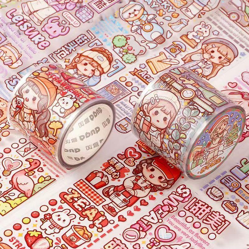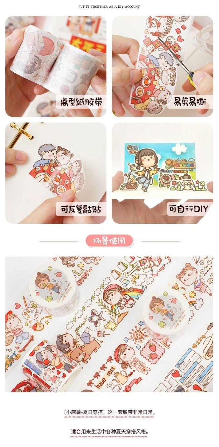 Colección Set Completo de Productos Mochi Nuevos Personajes Diarios Lindos Material Washi Tape Té con Leche Carnaval Diario