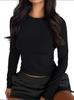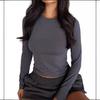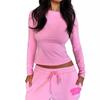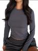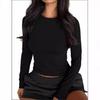 Camiseta informal de manga larga para mujer, jersey ajustado de color liso de primavera, ropa de calle para mujer, blusa de algodón dulce y picante