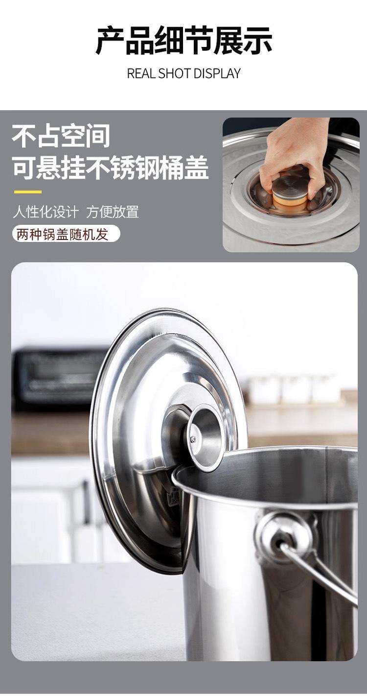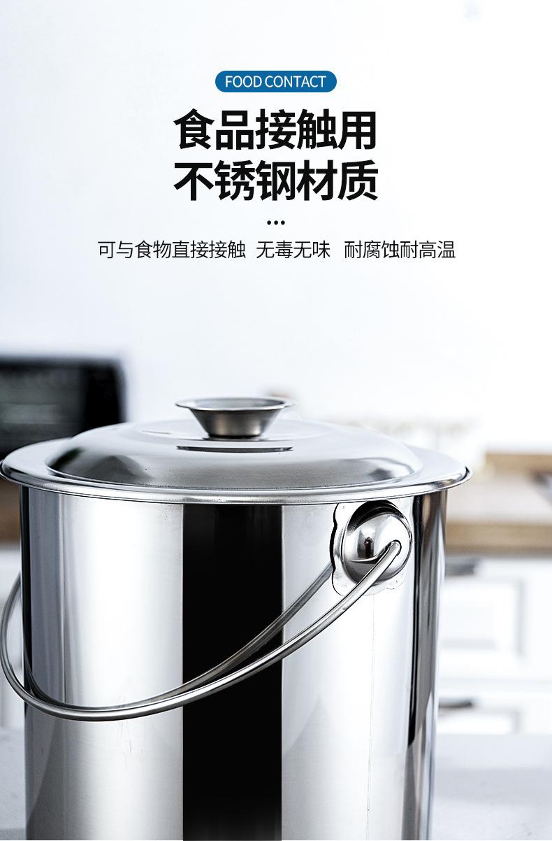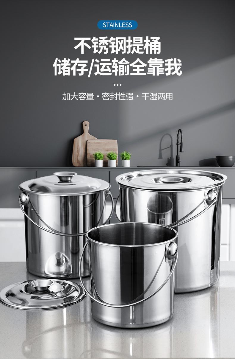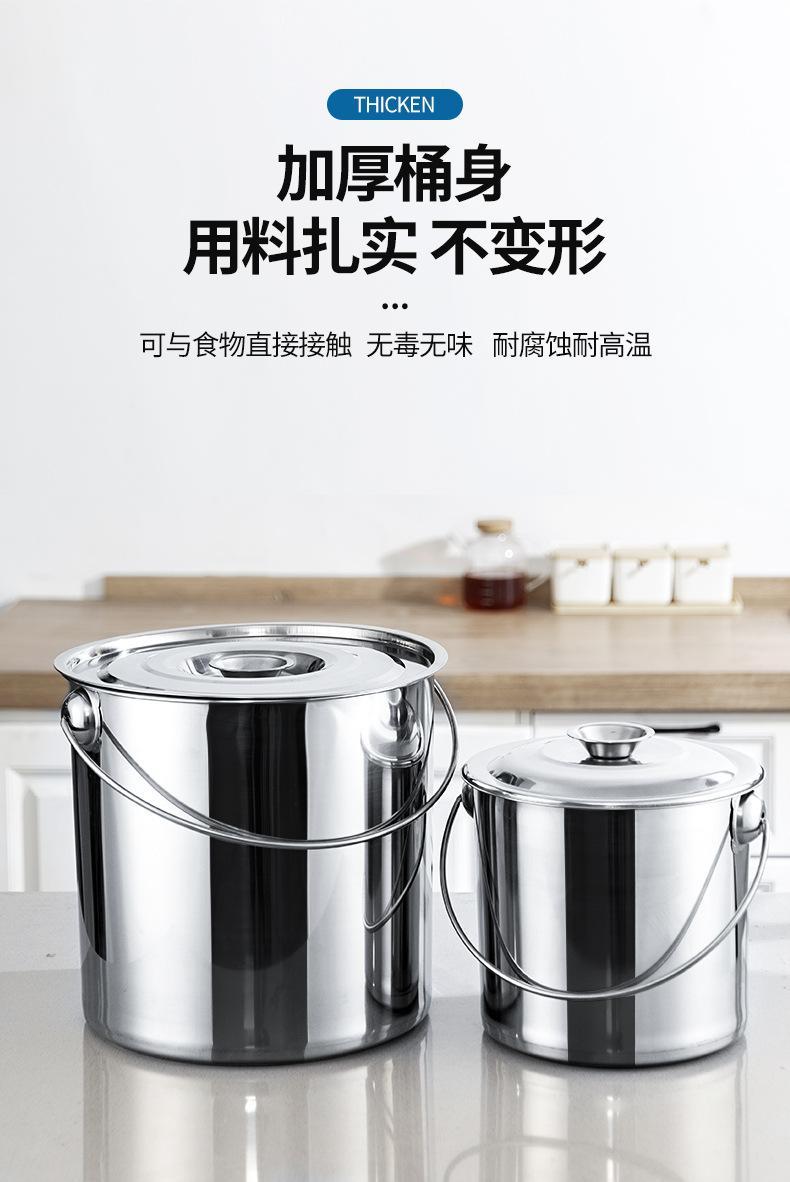 Cubo de acero inoxidable grueso, cubo de hierro portátil, cubo de aceite, cubo de sopa, cubo de almacenamiento de agua, cubo de jardín de infancia doméstico con tapa