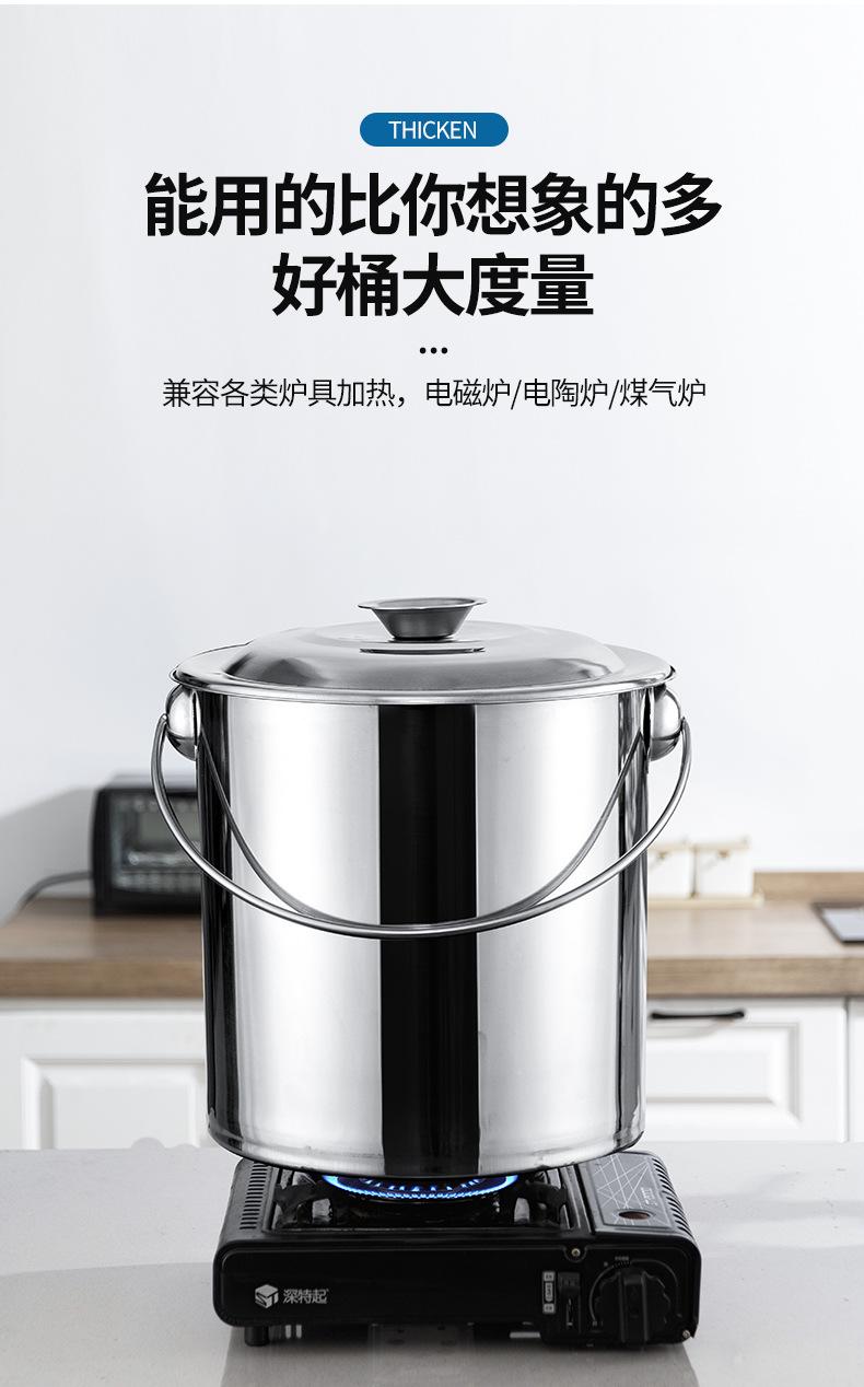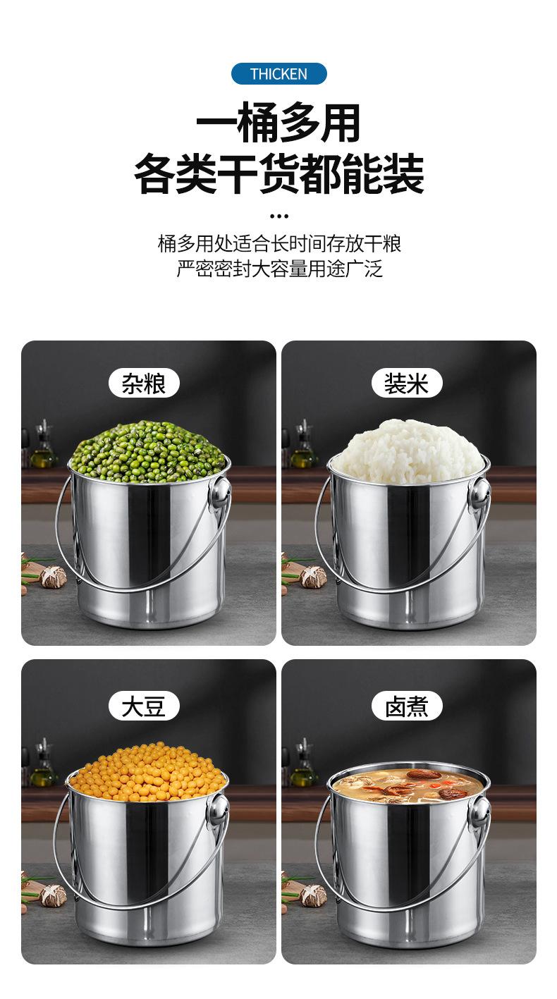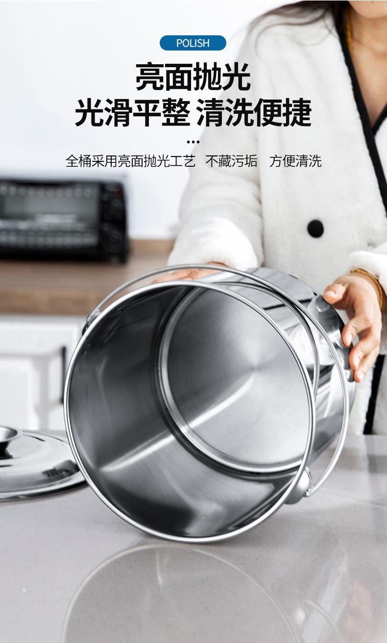Cubo de acero inoxidable grueso, cubo de hierro portátil, cubo de aceite, cubo de sopa, cubo de almacenamiento de agua, cubo de jardín de infancia doméstico con tapa