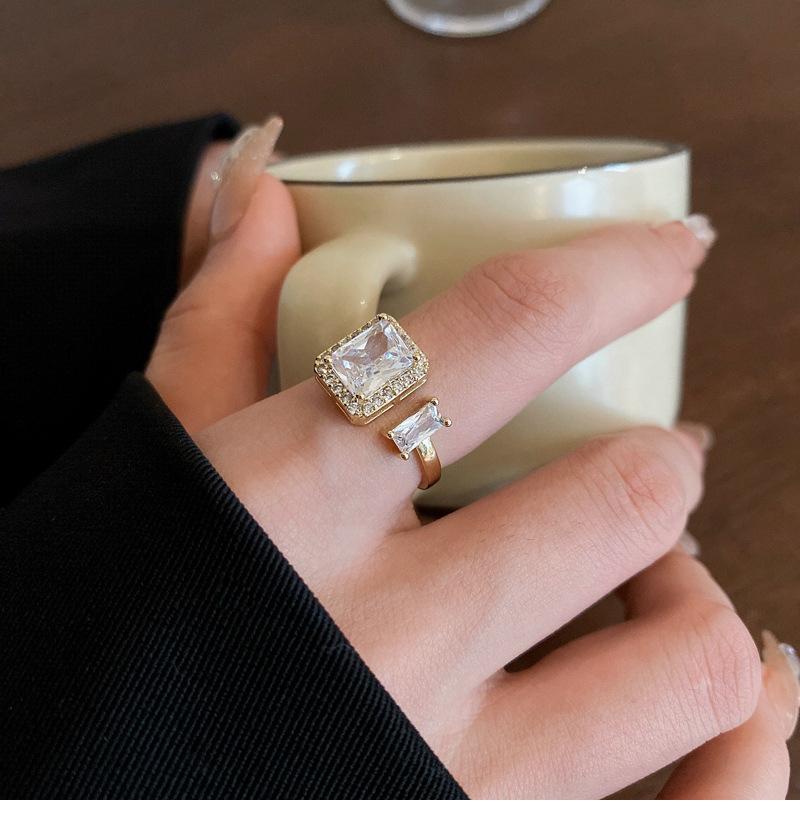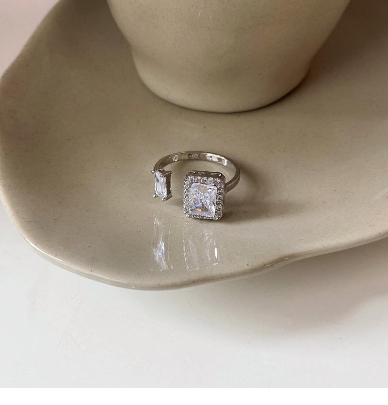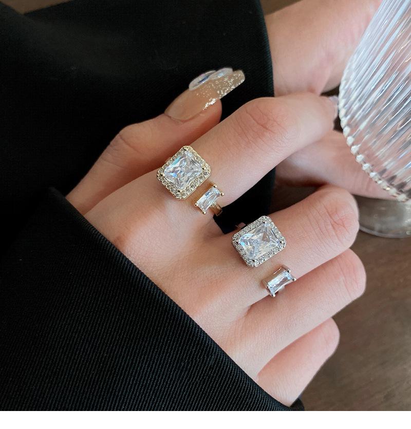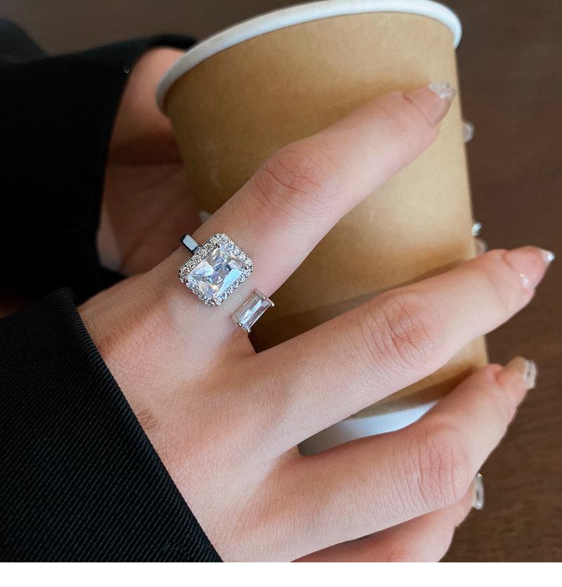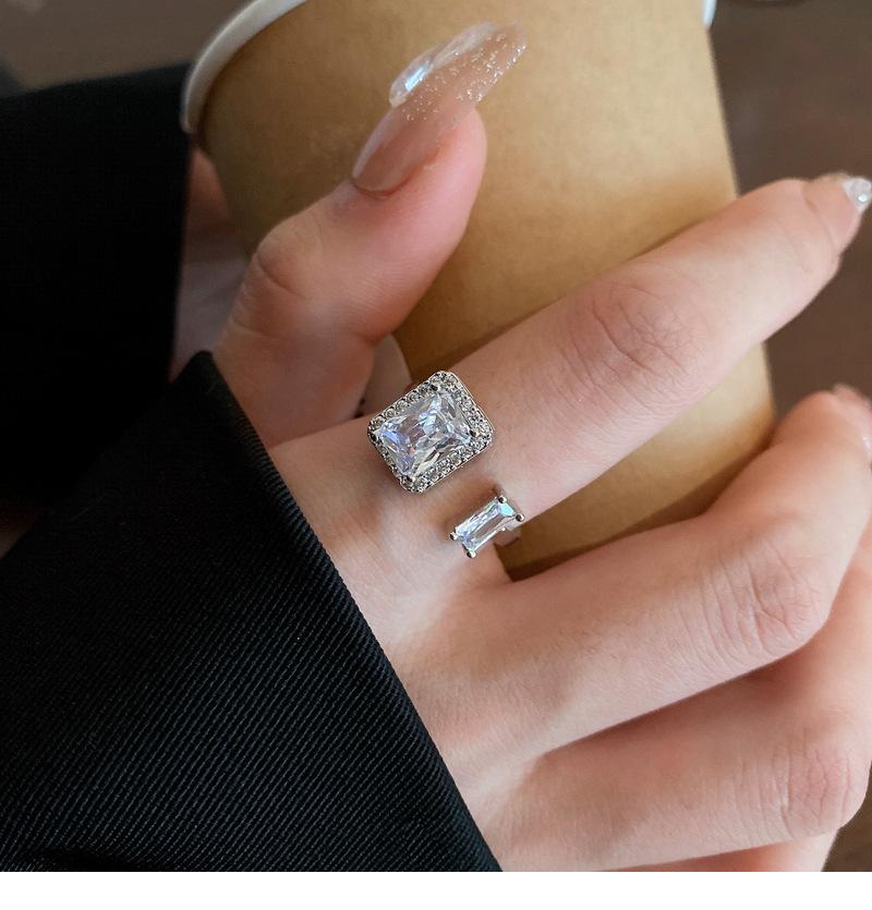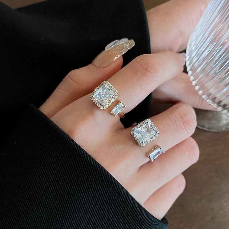 Anillo de Zirconia Cuadrado con Micro-incrustaciones Estilo Coreano para Mujer Moda Lujo Ligero Diseño Sensorial Anillo Abierto para Dedo para Novia Regalo de Anillo