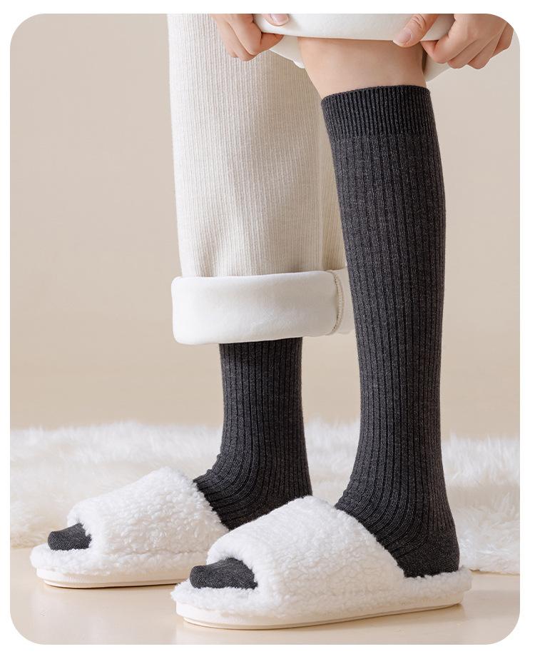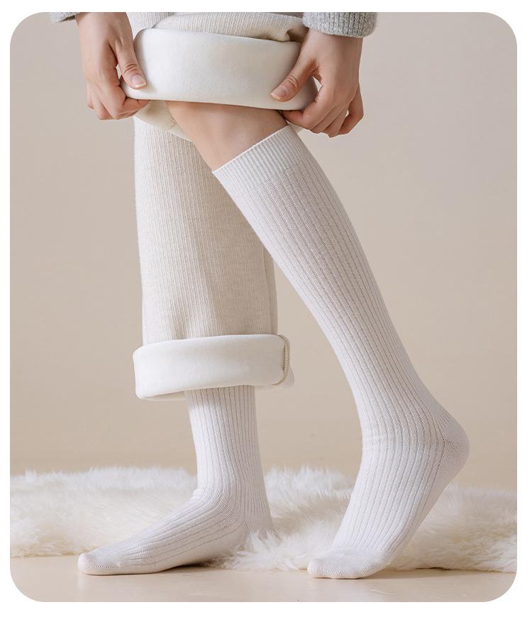 Calcetines de lana para mujer, otoño e invierno, doble aguja, hasta la pantorrilla, cálidos, acolchados, antibolitas, blancos, hasta la rodilla, calcetines de invierno para mujer