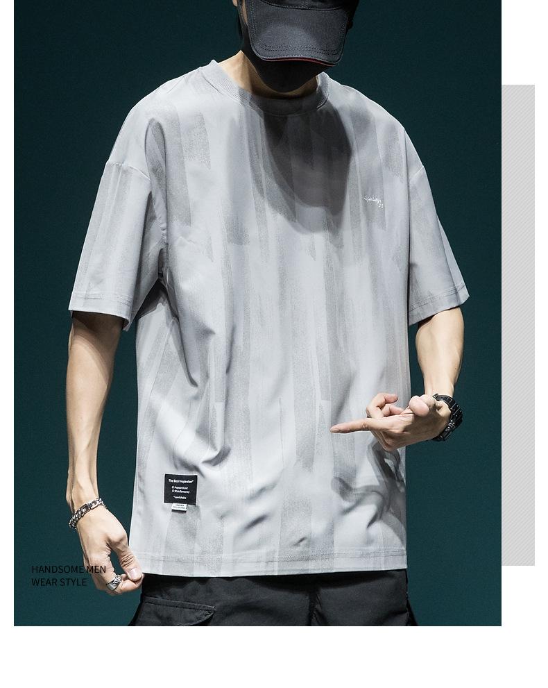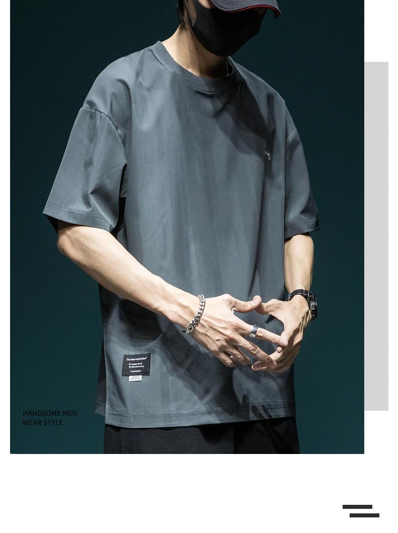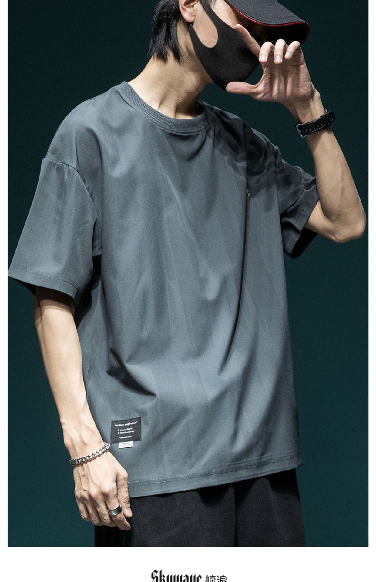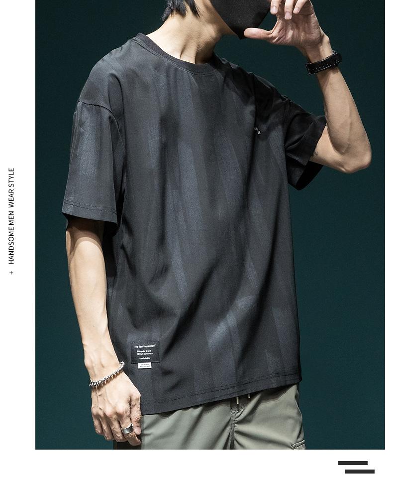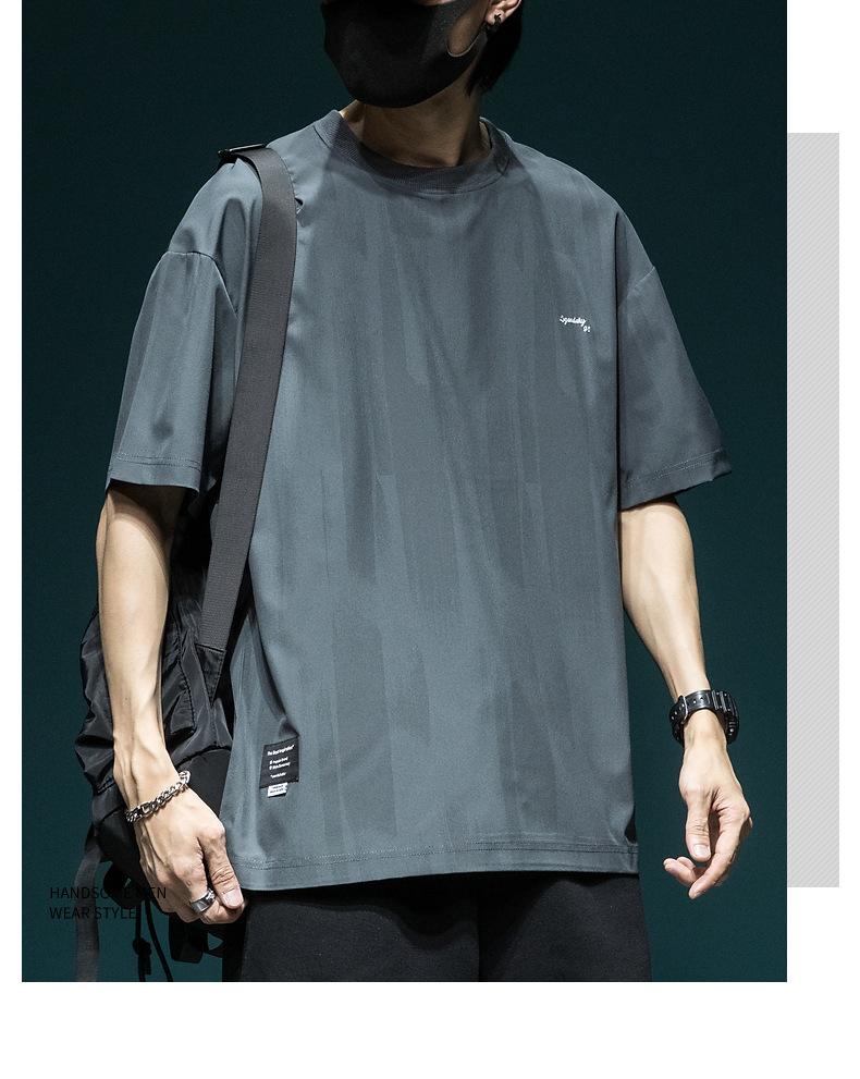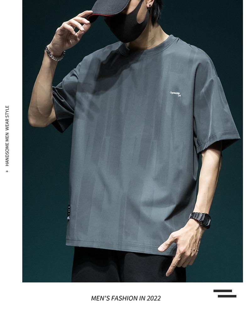 Camiseta de manga corta de seda helada de estilo japonés para hombre, nueva camiseta de verano holgada de talla grande, de media manga, fina, de secado rápido y con cuello redondo.