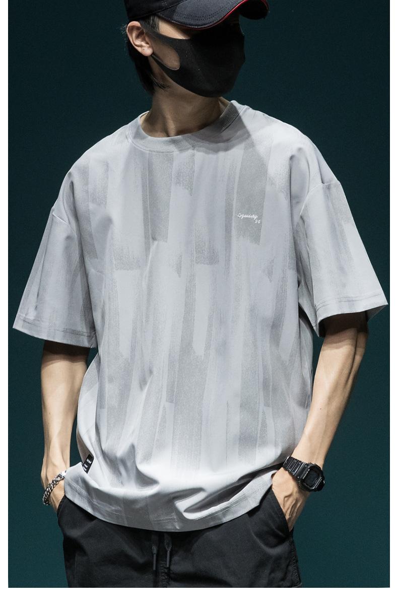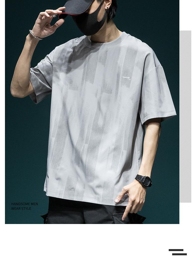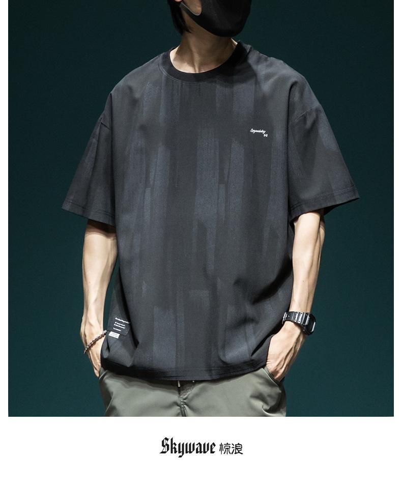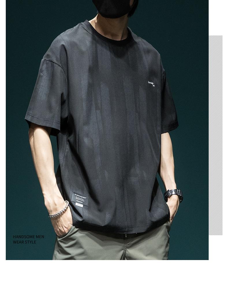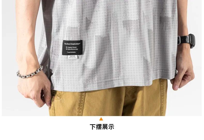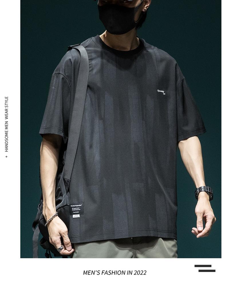 Camiseta de manga corta de seda helada de estilo japonés para hombre, nueva camiseta de verano holgada de talla grande, de media manga, fina, de secado rápido y con cuello redondo.