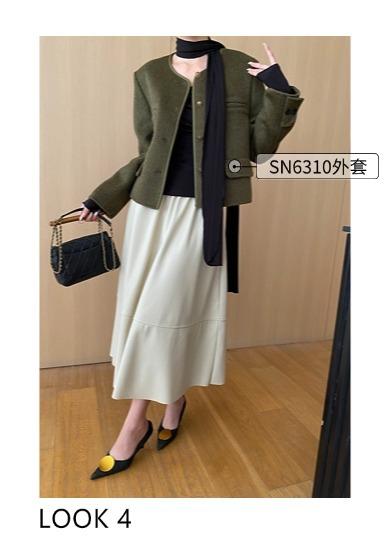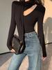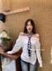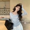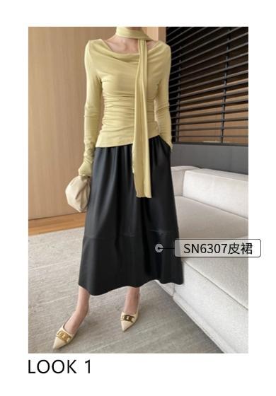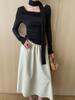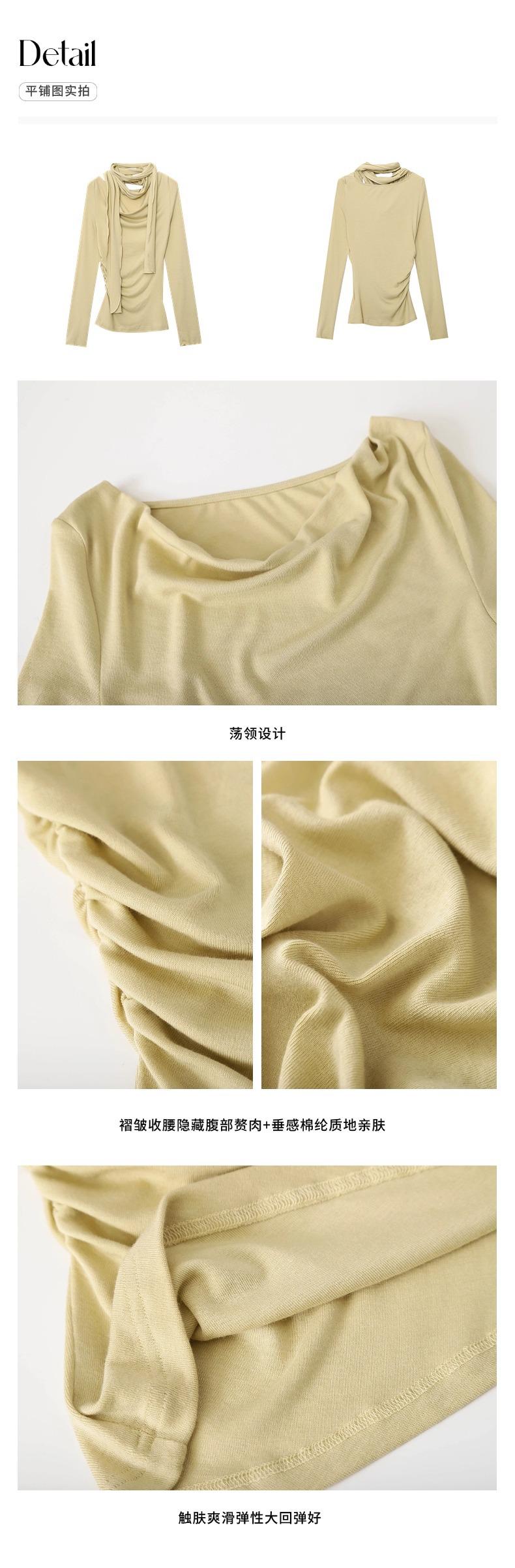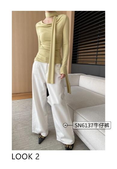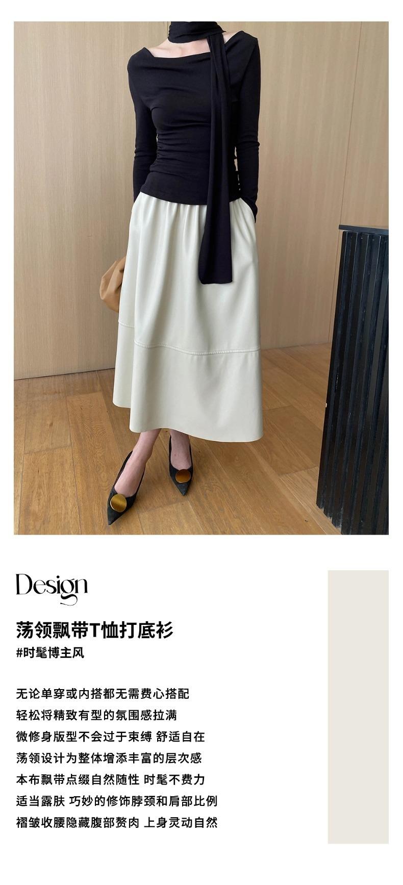 Sinan Diseño de Estilo de Blogger de Moda Cuello Oscilante Camiseta con Cinta Camisa Básica Otoño e Invierno 2025 Nuevo Estilo Sn6016
