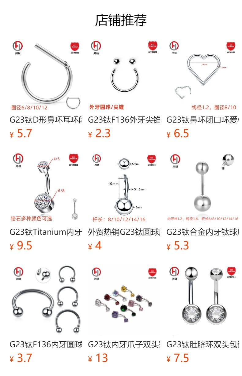 Anillo de bola con clip de titanio G23 F136BCR anillo multiusos para la nariz aretes anillo universal Titanio Aleación de titanio joyería para piercing
