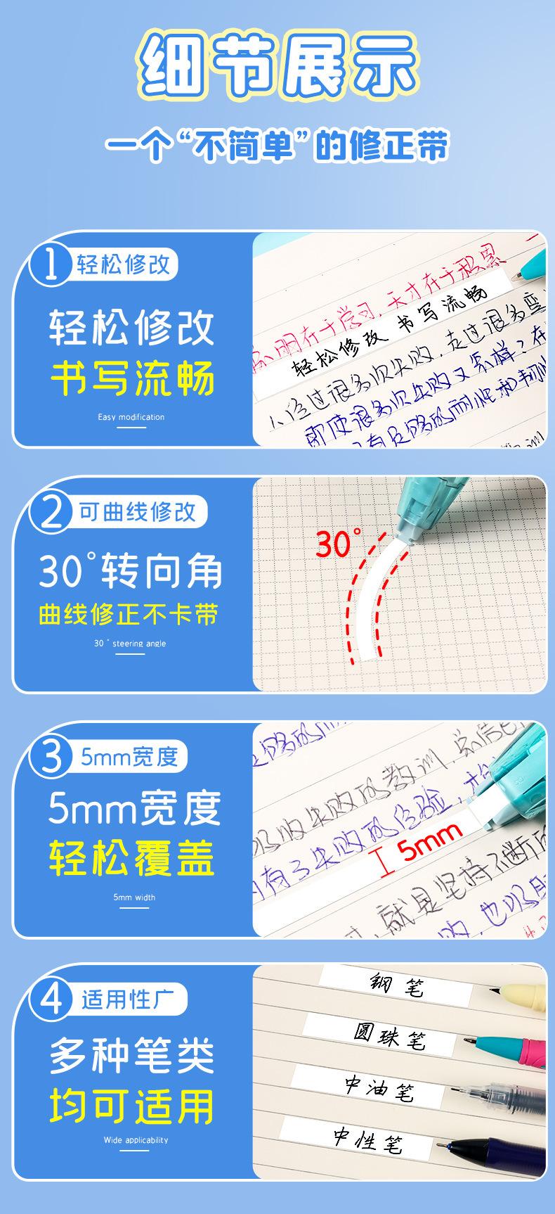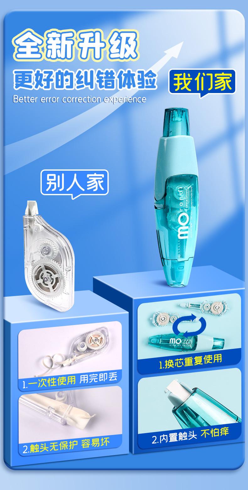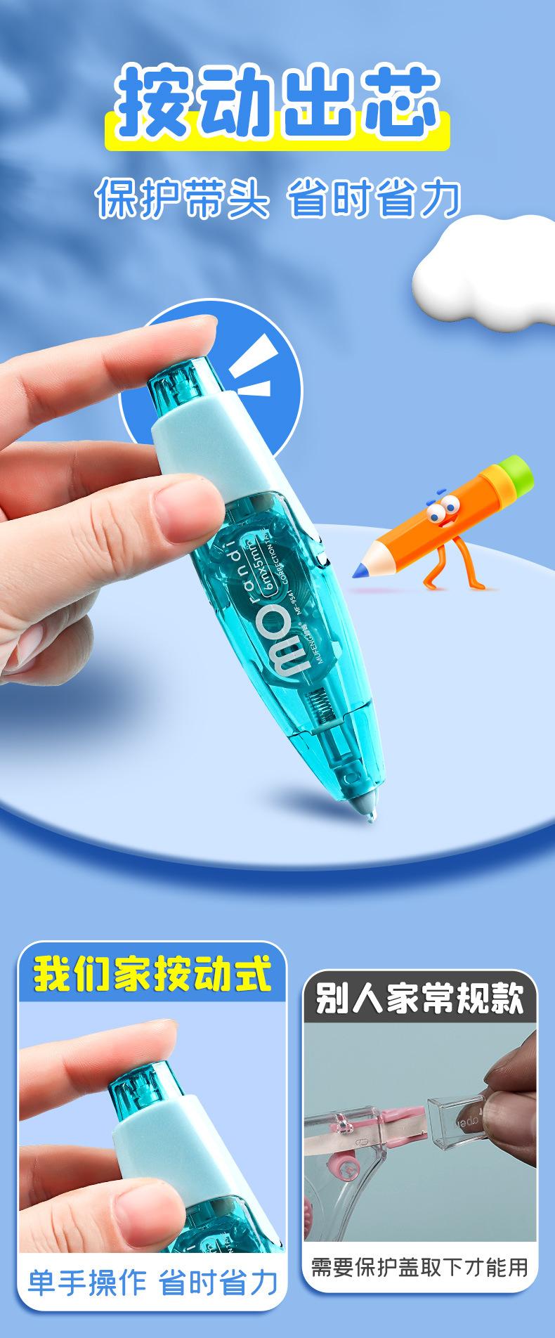 Cinta correctora tipo push de núcleo reemplazable cinta correctora estudiante silencioso gran capacidad tipo bolígrafo cinta correctora