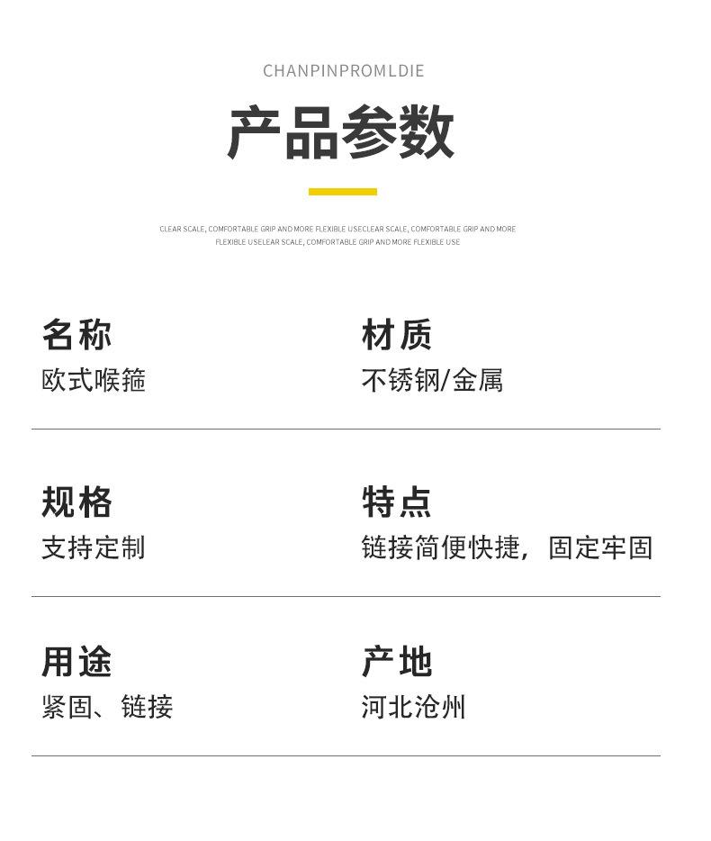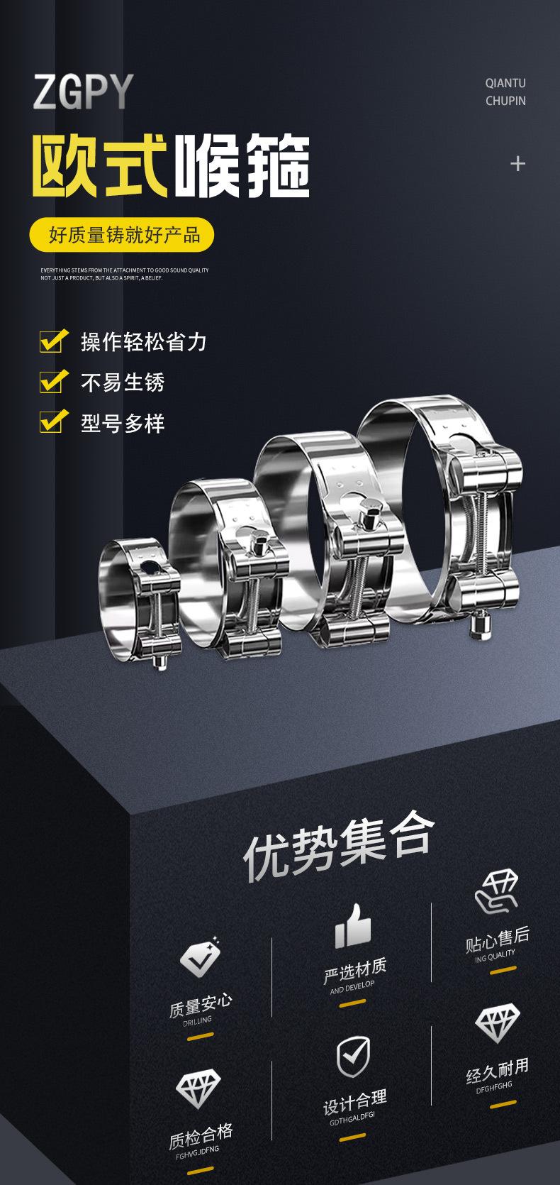 Los fabricantes suministran abrazaderas de tubo engrosadas de aro de garganta de estilo europeo resistentes de acero inoxidable, abrazaderas de tubo de aro de un solo cabezal de estilo europeo.