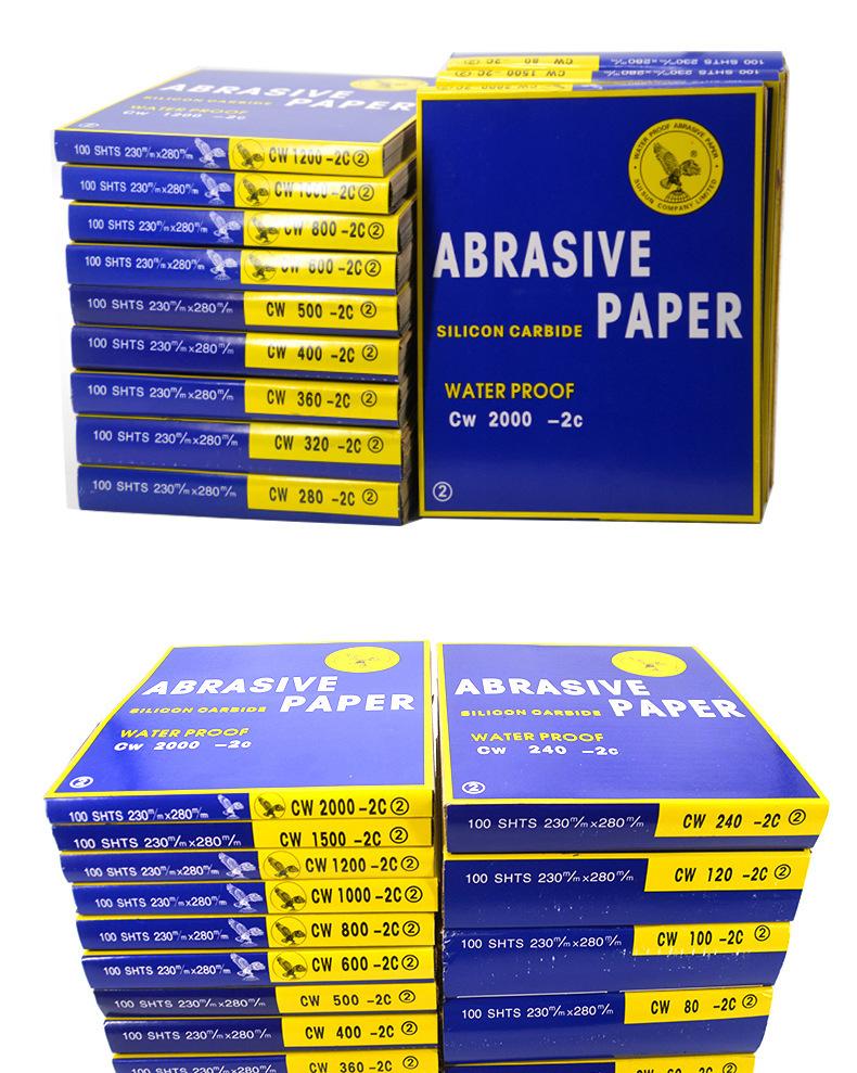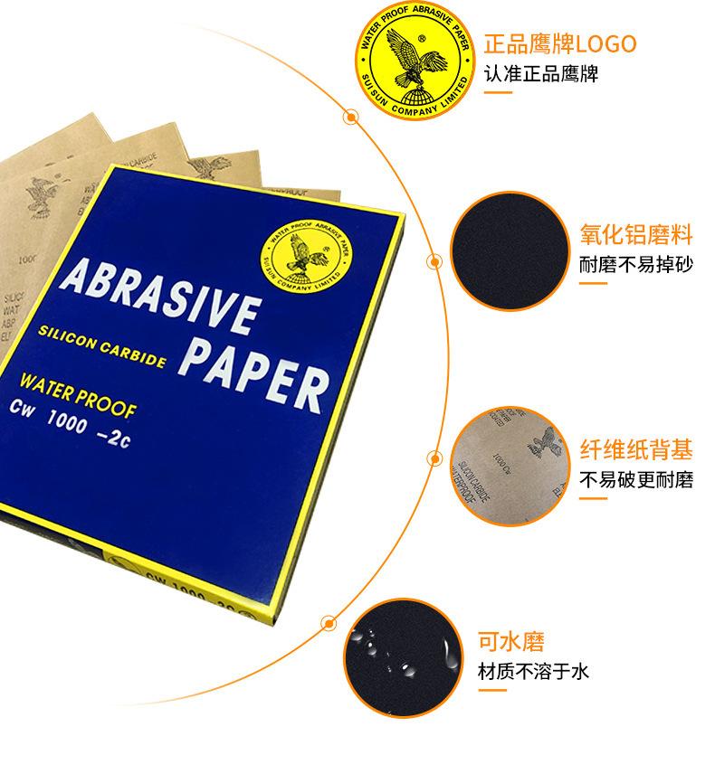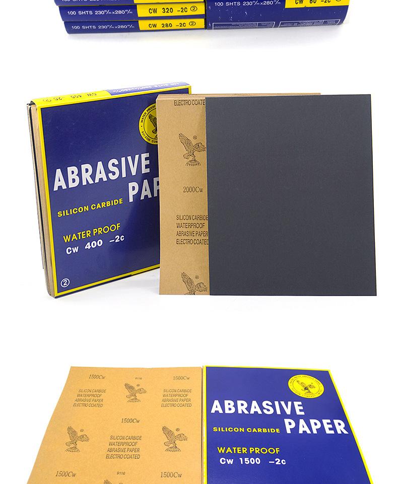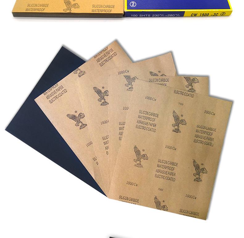 Papel de lija de 1000 granos marca Águila Papel de lija impermeable Papel de lija para pulir Húmedo y seco 23*28cm Resistente al agua Carburo de silicio