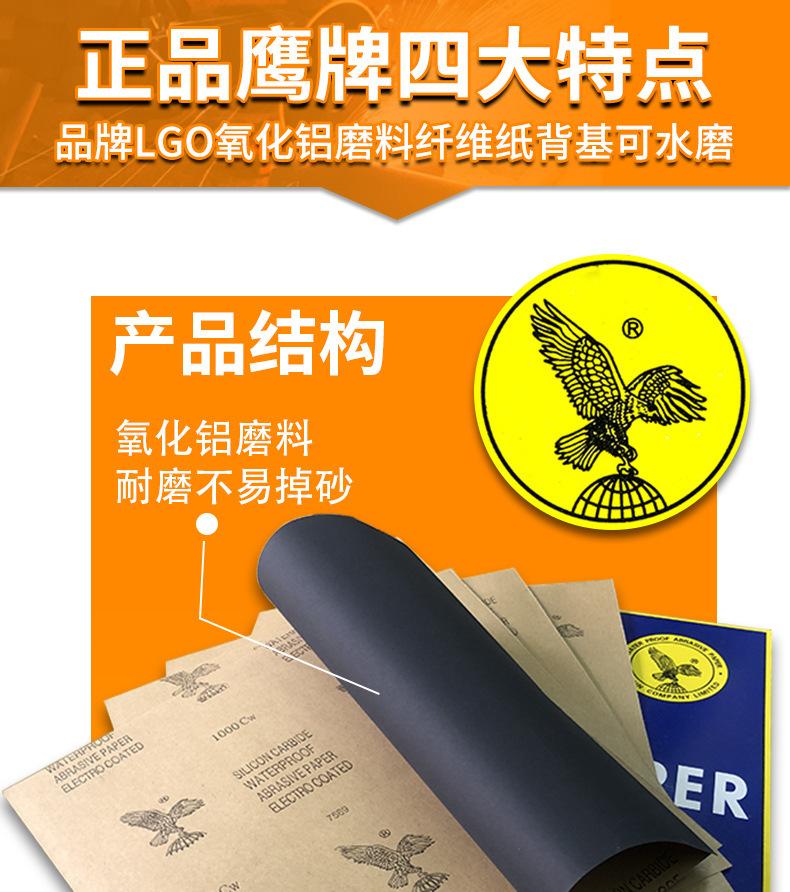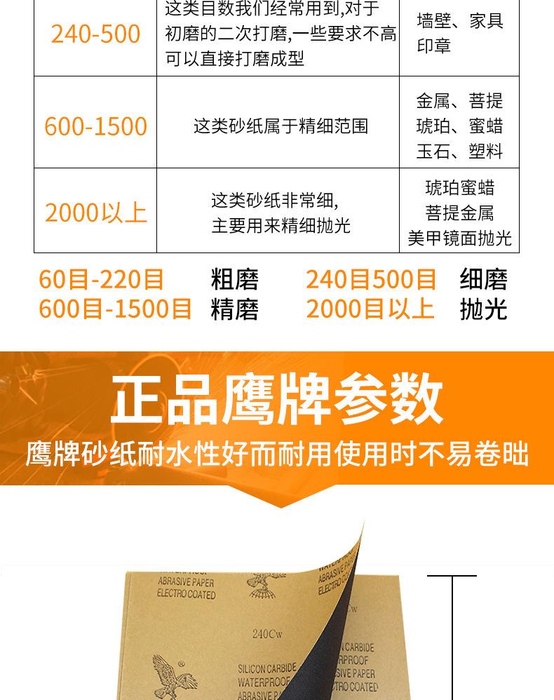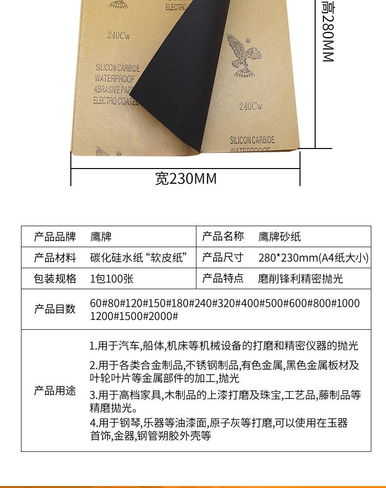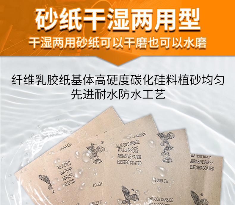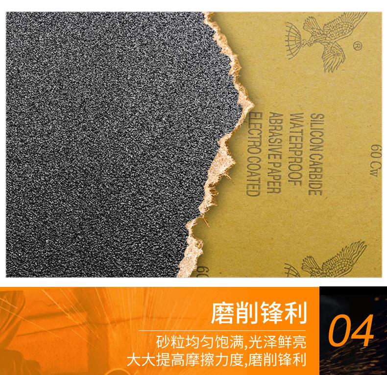 Papel de lija de 1000 granos marca Águila Papel de lija impermeable Papel de lija para pulir Húmedo y seco 23*28cm Resistente al agua Carburo de silicio