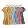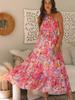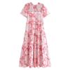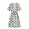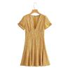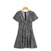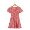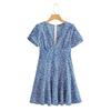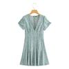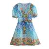 YPFF - Vestido estampado con escote en V profundo para mujer, estilo europeo y americano, de verano, manga corta, ajustado, cintura alta, floral, corto, moderno