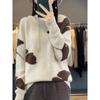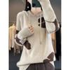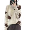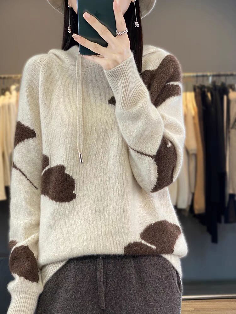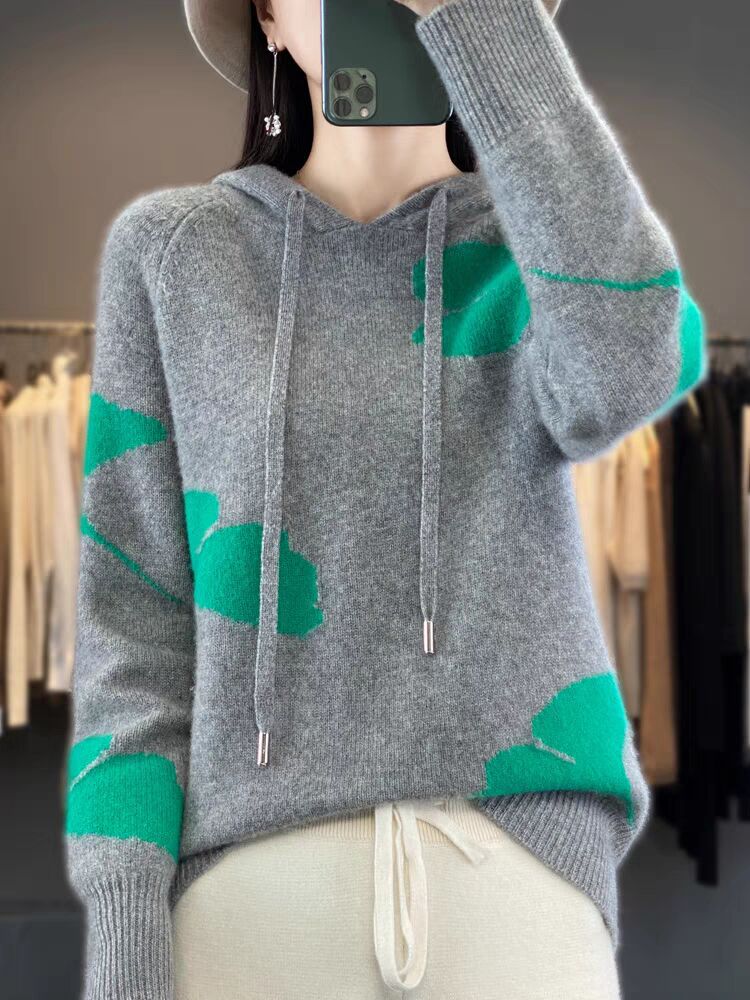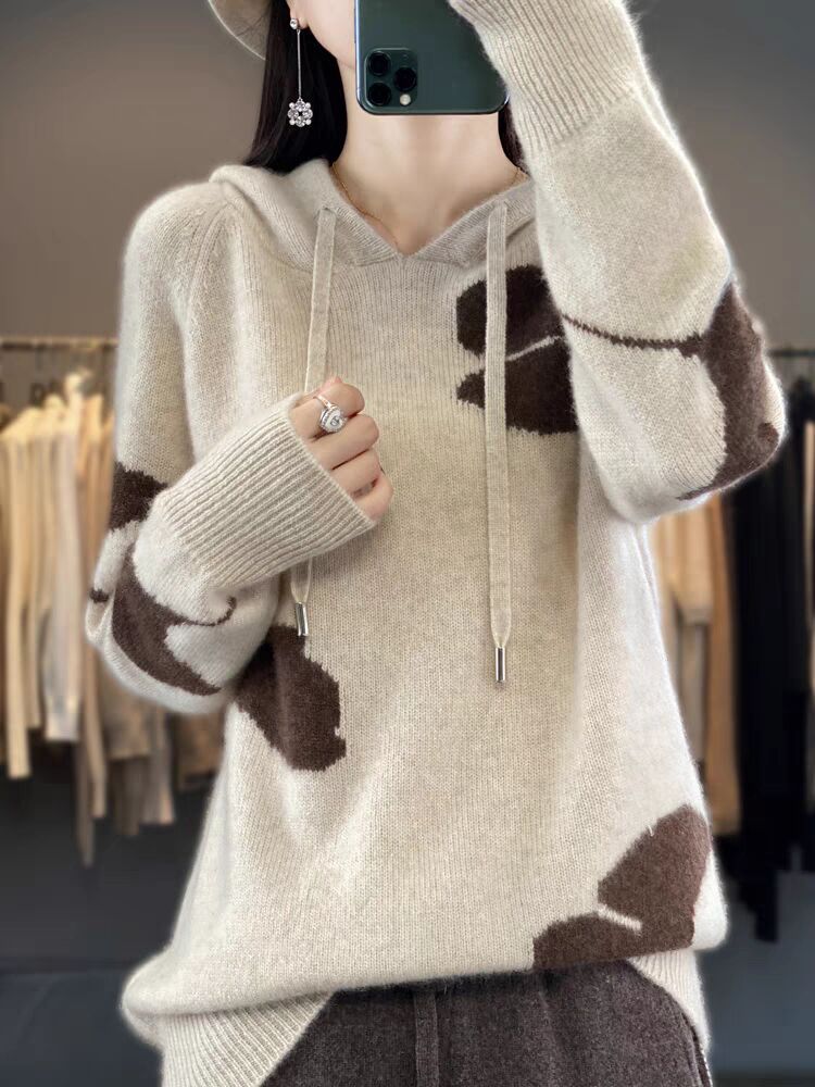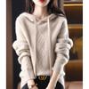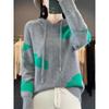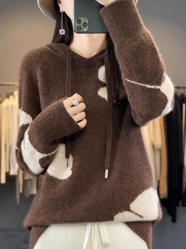 Suéter con capucha de color contrastante para otoño e invierno, suéter de manga larga, sudadera holgada con capucha de lana tejida para mujer
