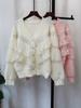 Cárdigan de punto estilo coreano holgado con patchwork y encaje para otoño e invierno 2025, suéter con chaqueta de estilo dulce y suave para mujer