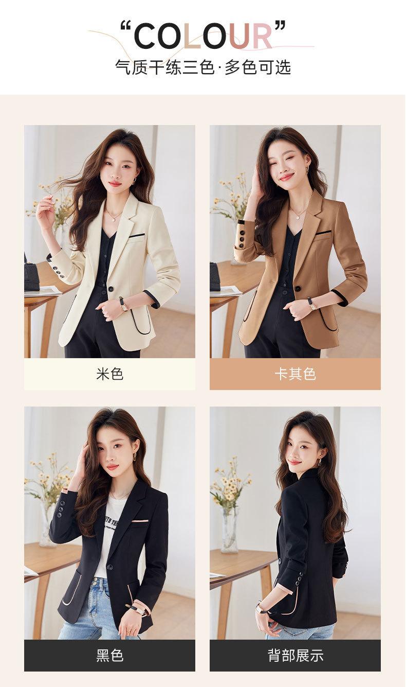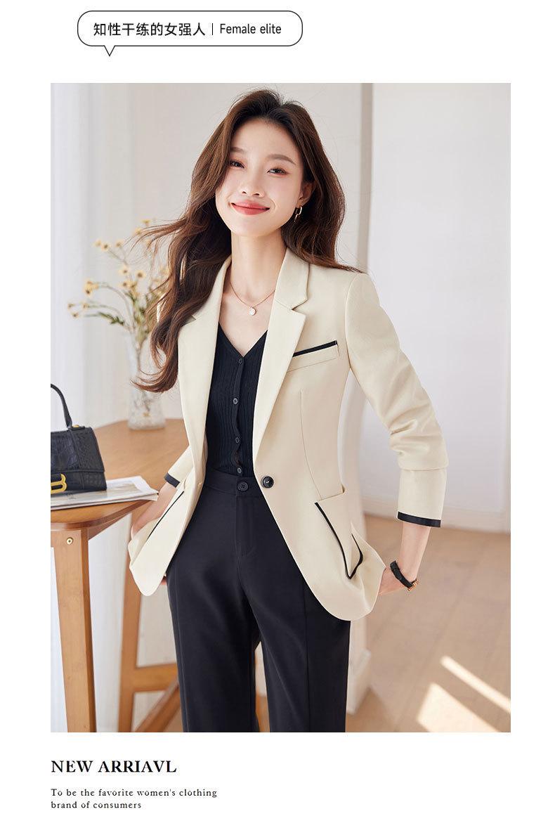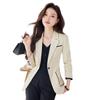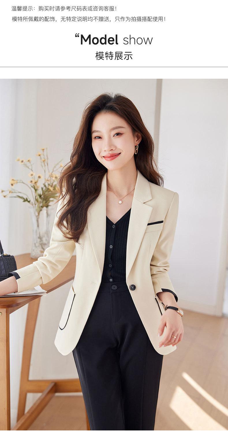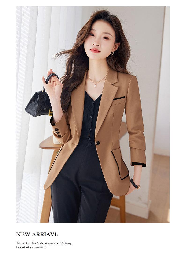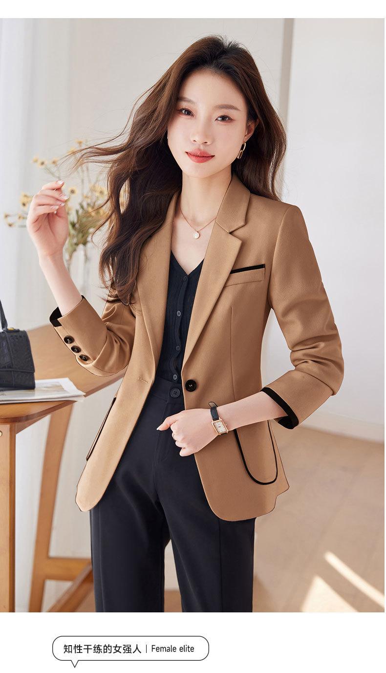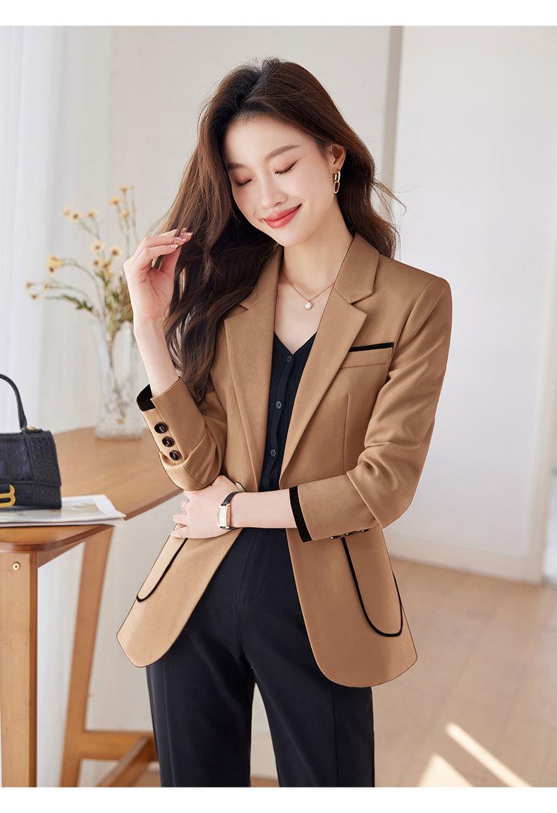 Chaqueta de traje profesional de manga larga con cuello pequeño en contraste de color caqui para mujer, moda de primavera y otoño de 2024