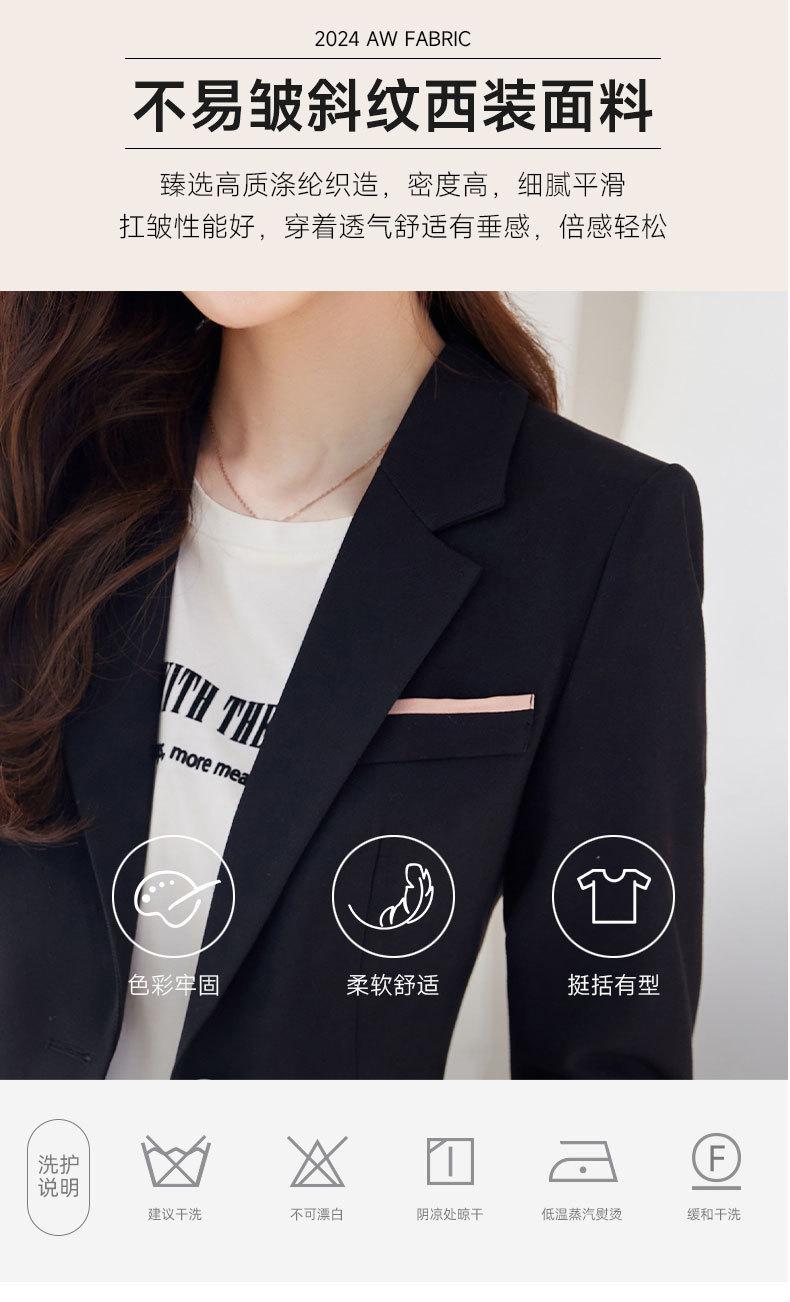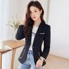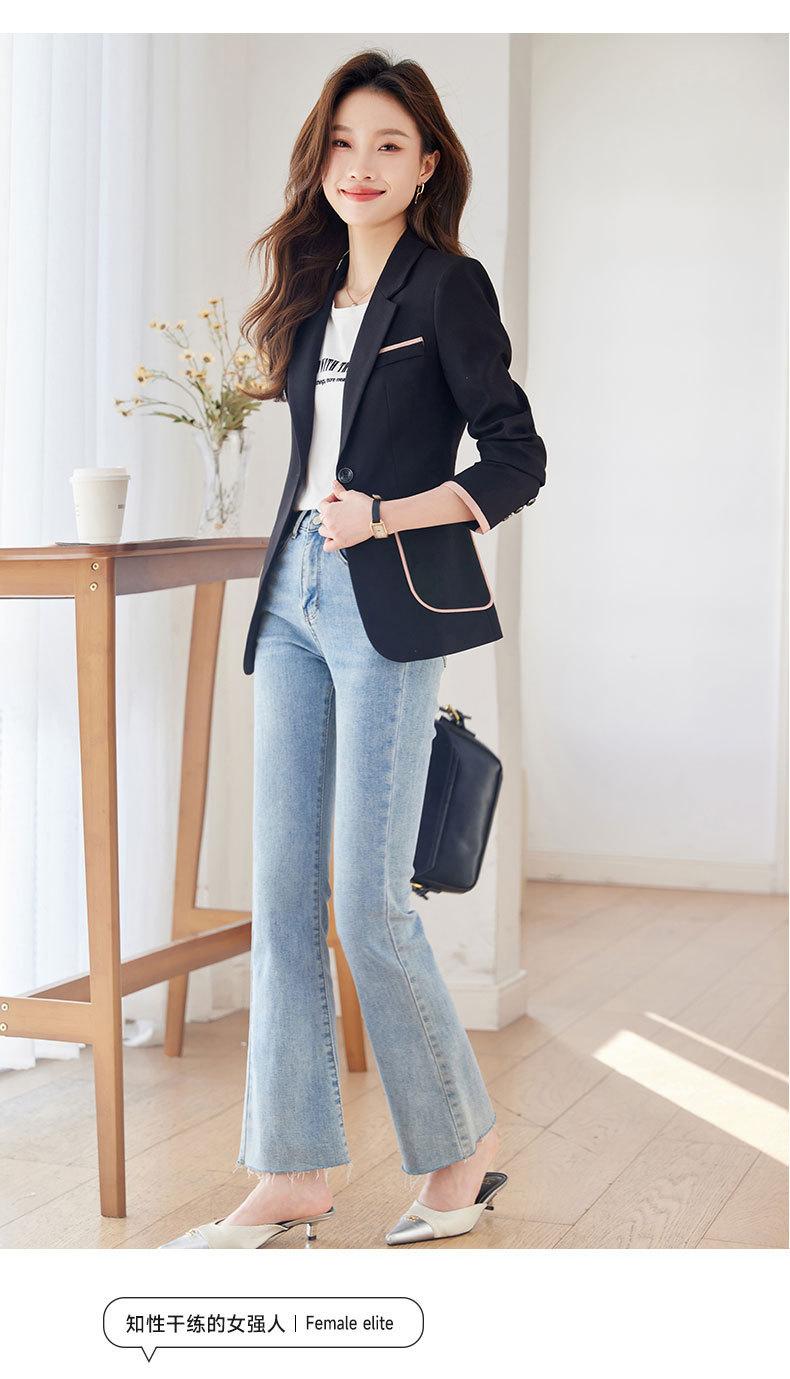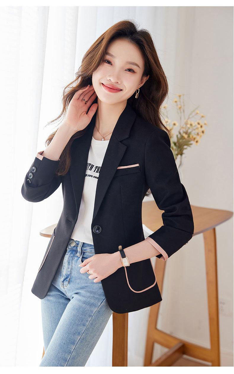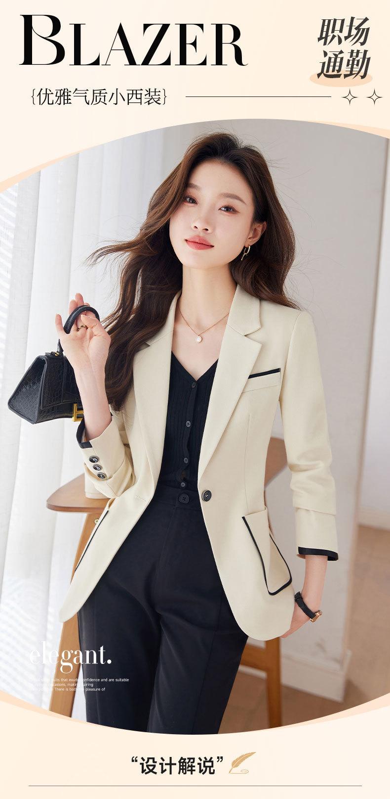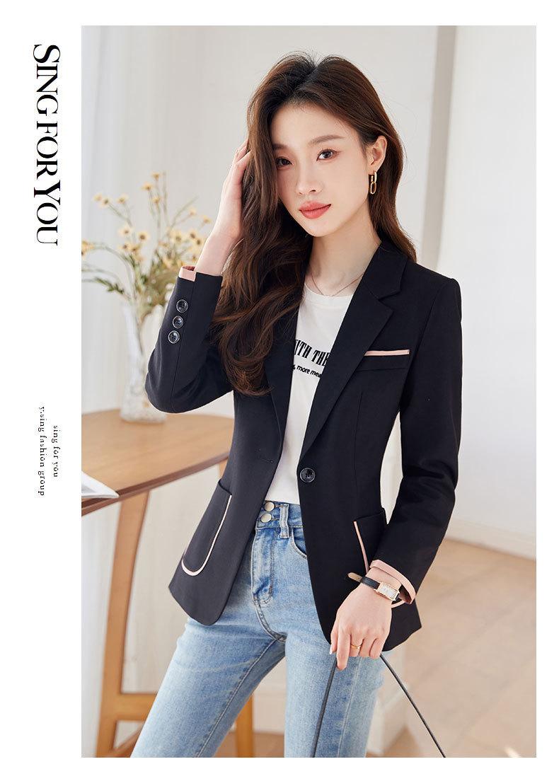 Chaqueta de traje profesional de manga larga con cuello pequeño en contraste de color caqui para mujer, moda de primavera y otoño de 2024