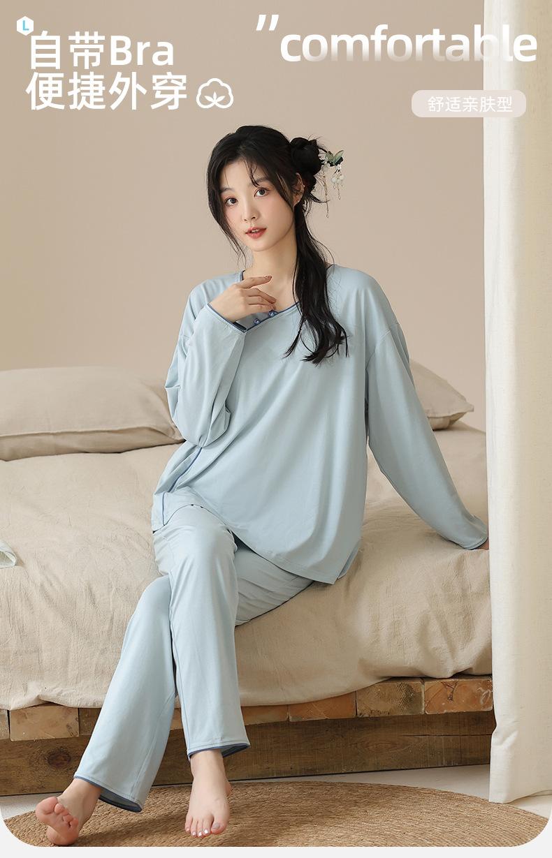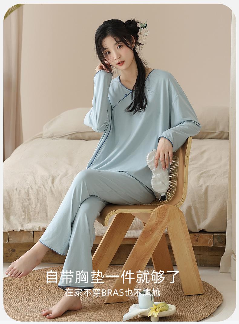 Pijamas chinos nuevos de otoño 2024 para mujer, primavera y otoño, antigolpes, de manga larga, informales, modal, para el hogar