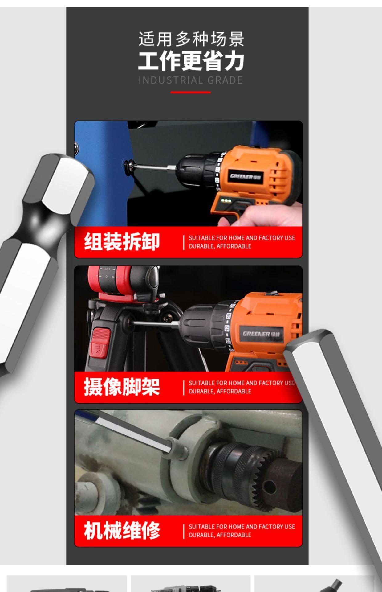Llave de cabeza hexagonal Green Forest, lote eléctrico, mango hexagonal, destornillador eléctrico, broca, taladro eléctrico, acero de tungsteno magnético fuerte, adecuado para hexagonal