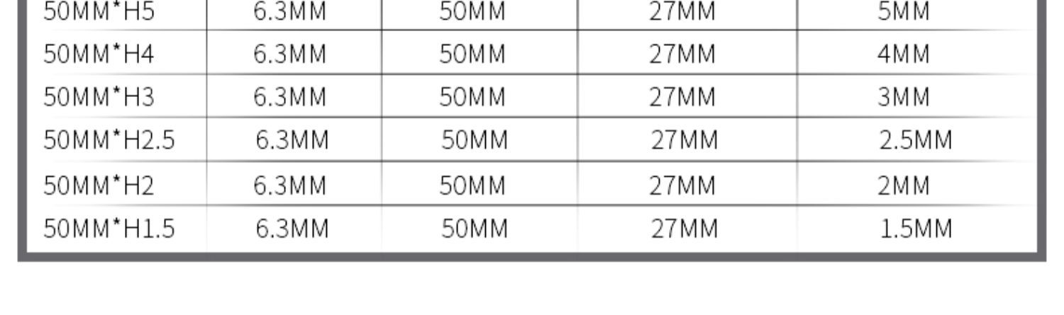 50mm*h1.5 (pack of 5), 50mm*h2 (pack of 5), 50mm*h2.5 (pack of 5), 50mm*h3 (pack of 5), 50mm*h4 (pack of 5), 5...