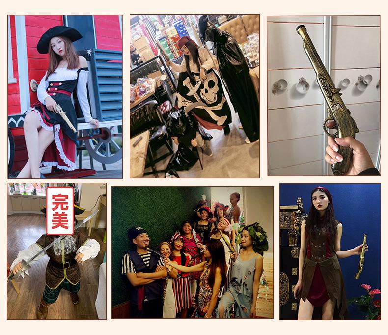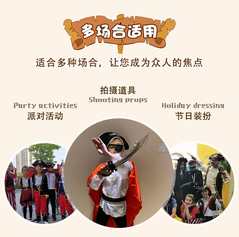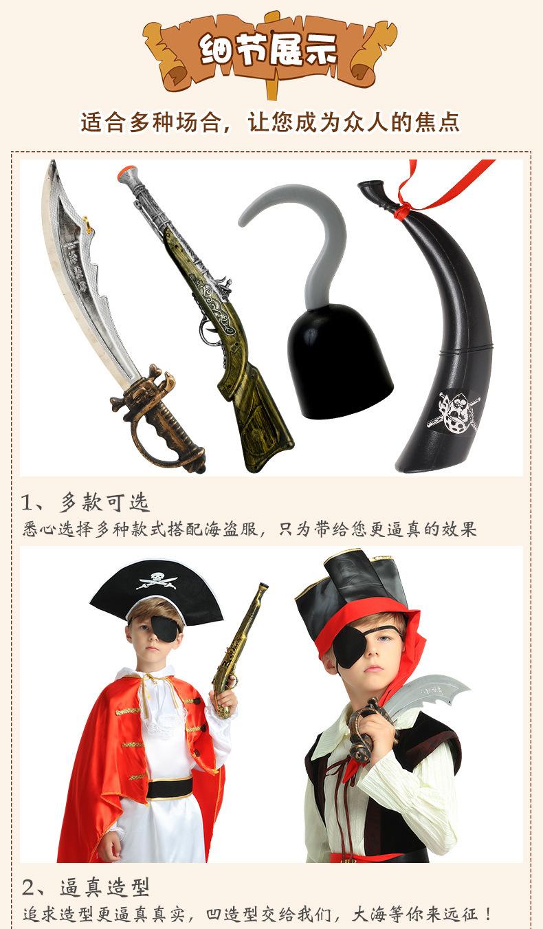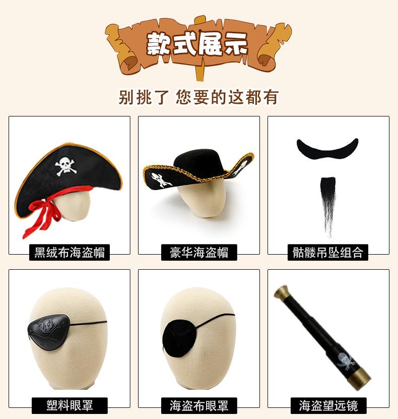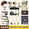 Peluca de pirata para el Día del Niño de Halloween, disfraz de barba, accesorios de cosplay, cuerno de pirata, cuchillo, máscara de ojos, telescopio