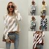 Otoño e Invierno 2025 Nuevo Exportación Europea y Americana Amazon Suéter de Punto de Cuello Redondo con Bloques de Color Suelto para Mujer