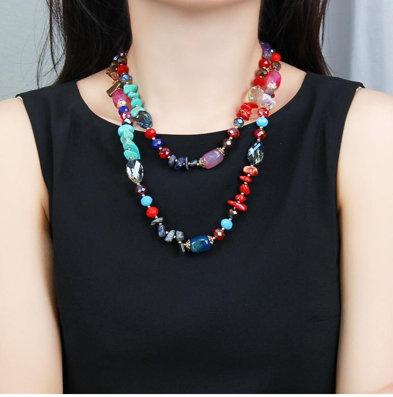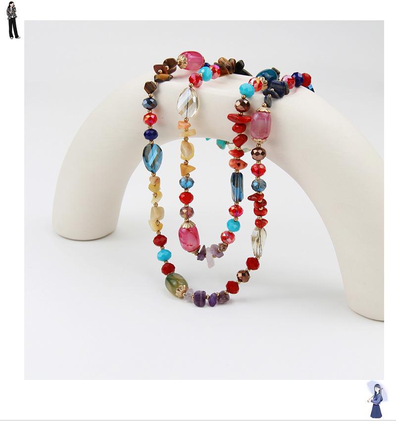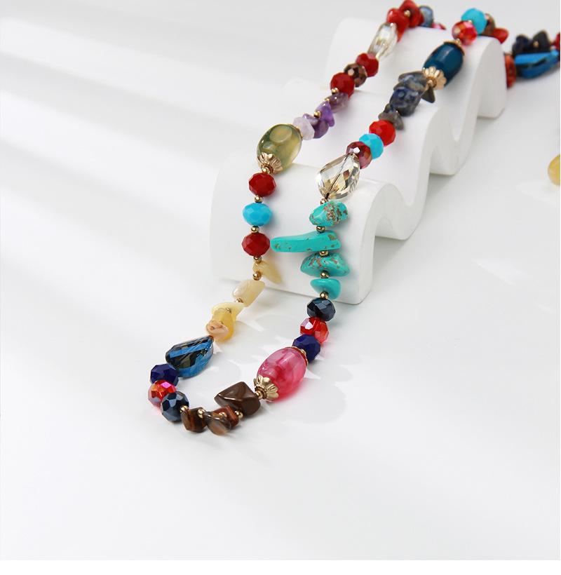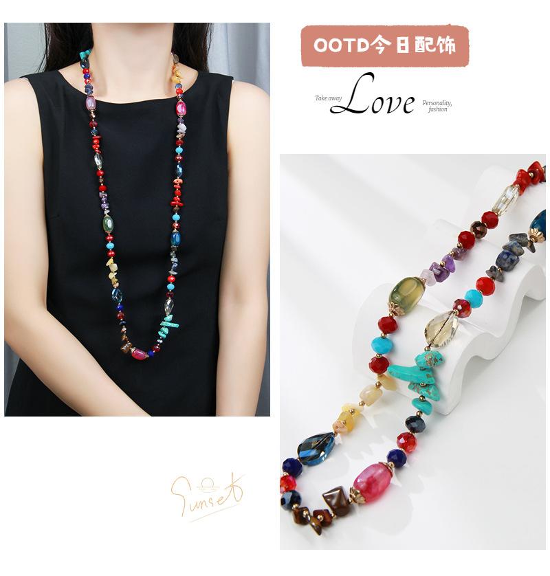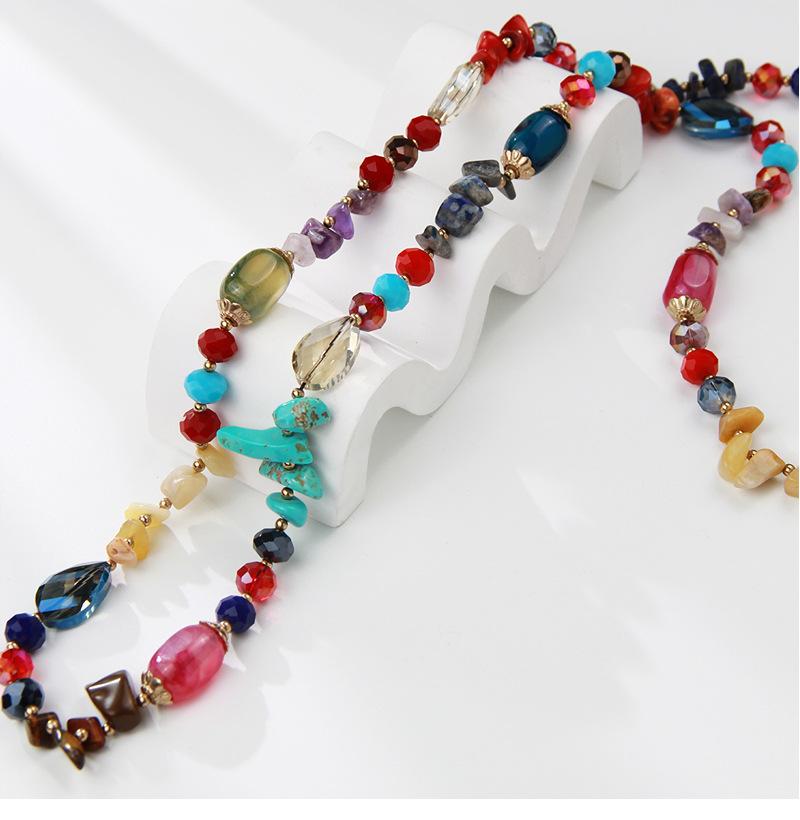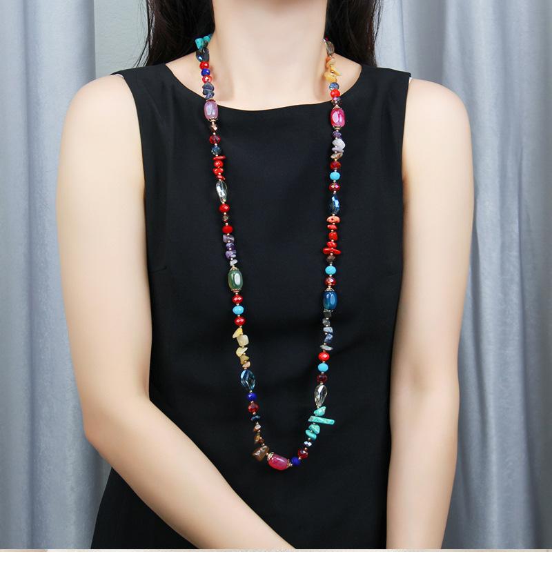 Collar largo con cuentas de cristal de ágata natural de colores transfronterizos europeos y americanos, cadena de suéter bohemia para mujer, joyería