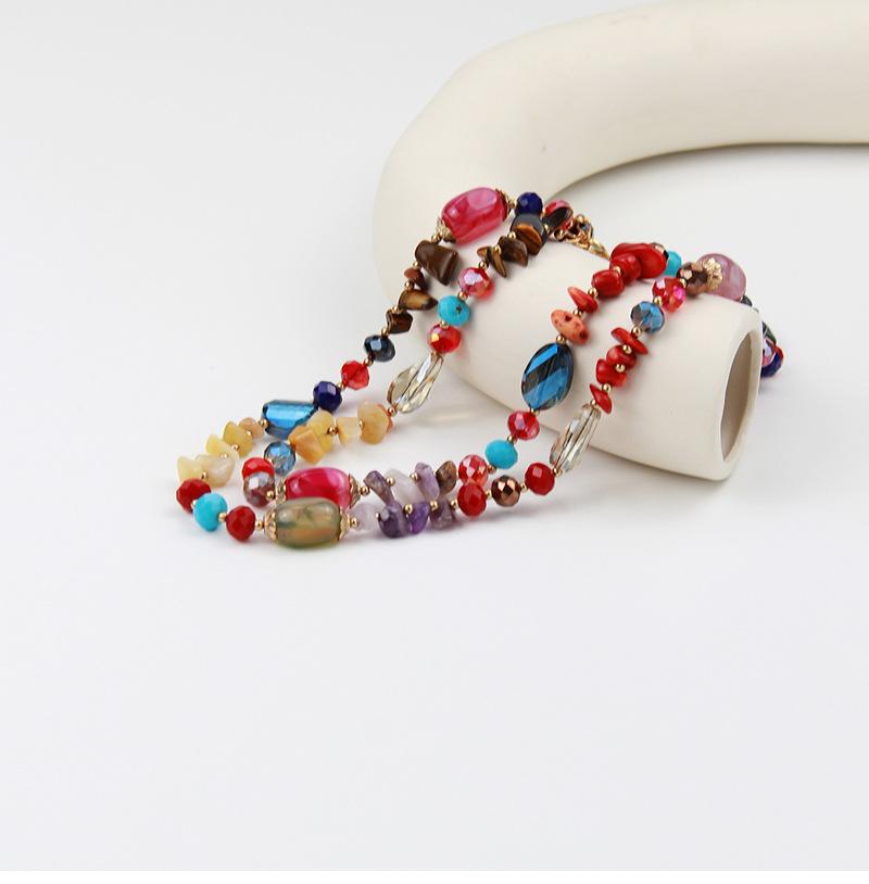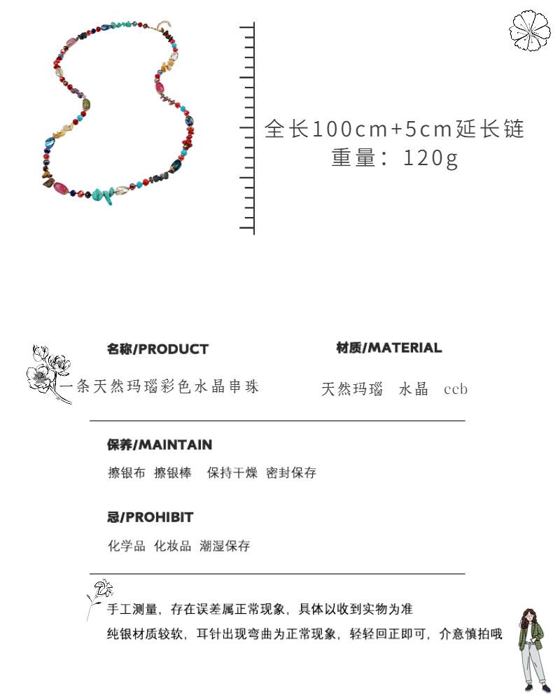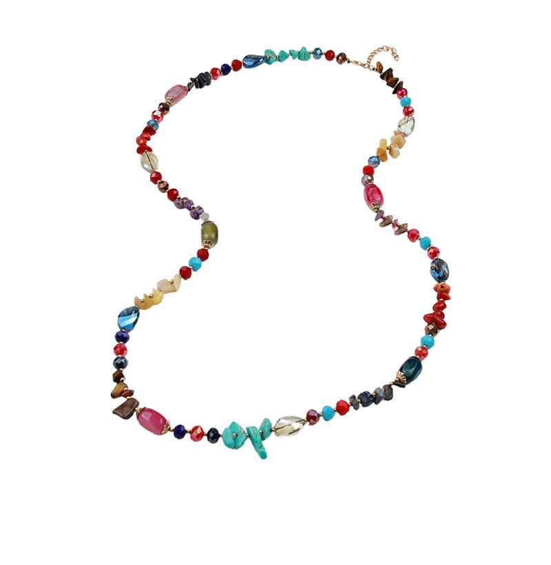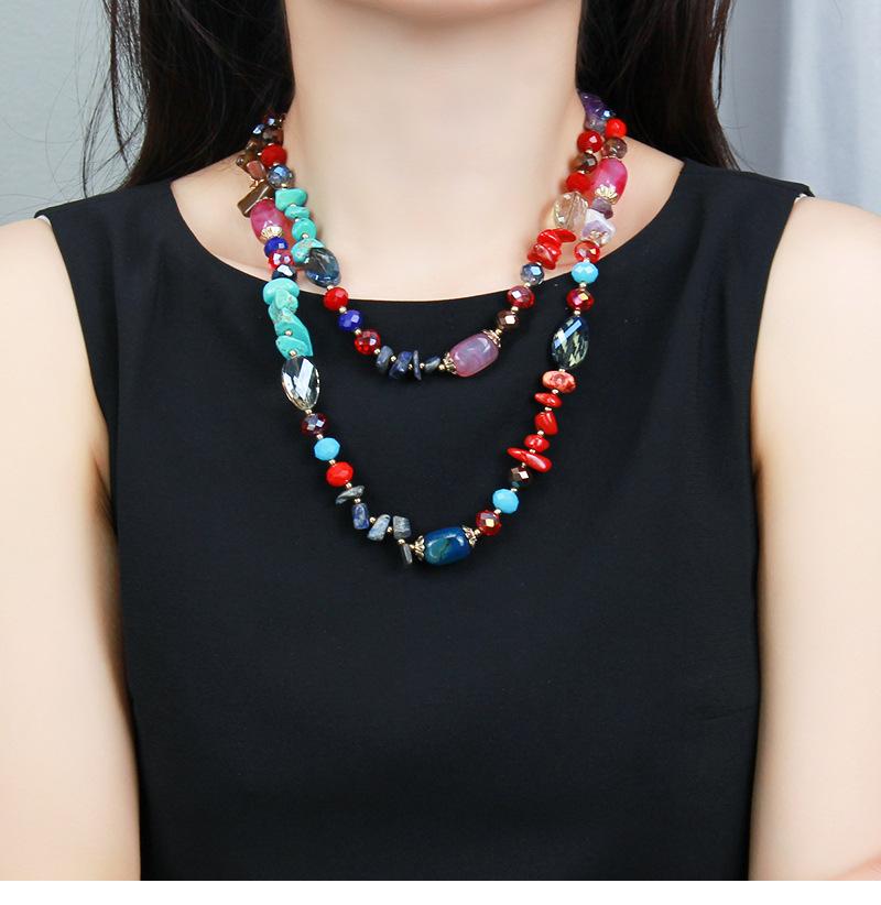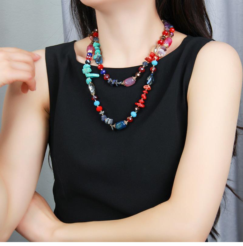 Collar largo con cuentas de cristal de ágata natural de colores transfronterizos europeos y americanos, cadena de suéter bohemia para mujer, joyería