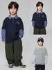 Camiseta de Manga Larga para Niños de Primavera y Otoño, Estilo Retro Americano Marca B Teñida en Color Desgastada Elegante Camiseta Base para Niños y Niñas