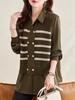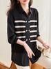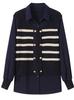 Suéter de punto a rayas elegante de dos piezas para otoño 2024, top de manga larga, camisa holgada de moda para mujer para otoño e invierno