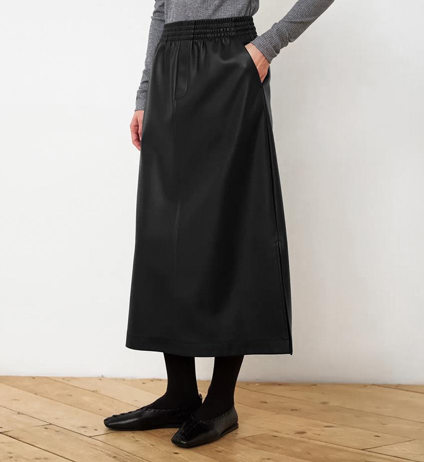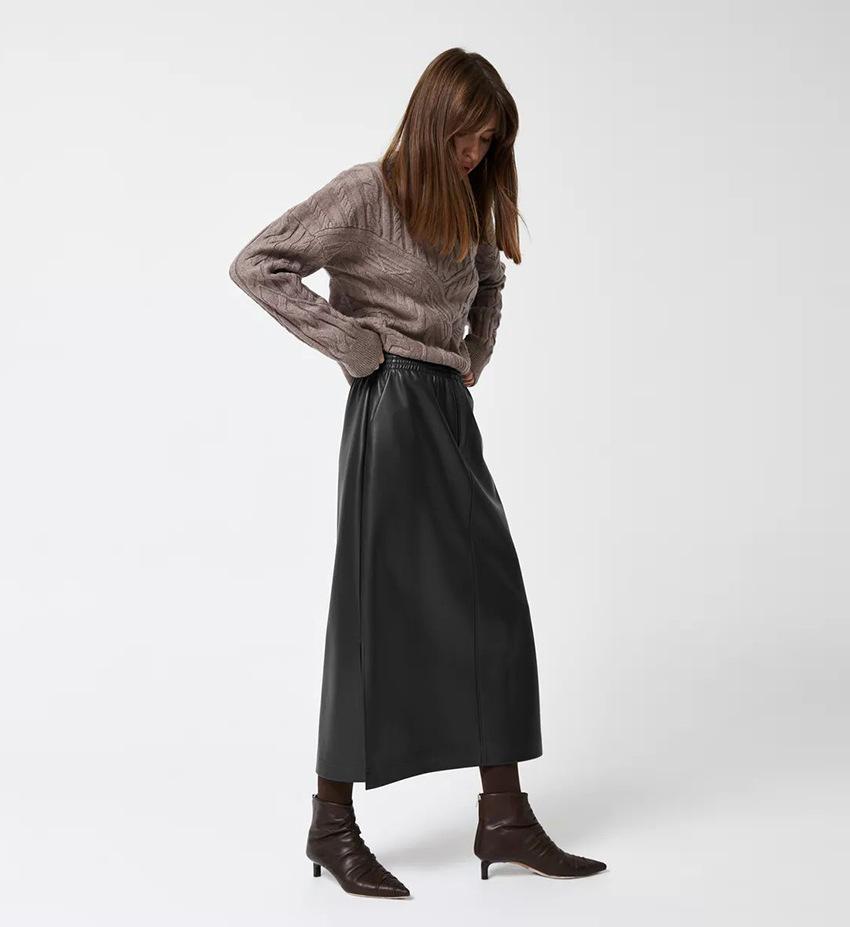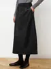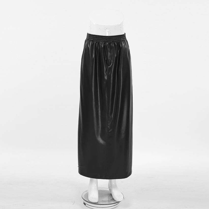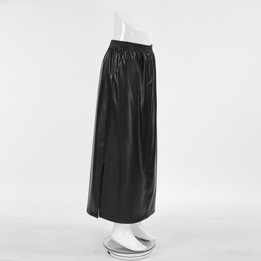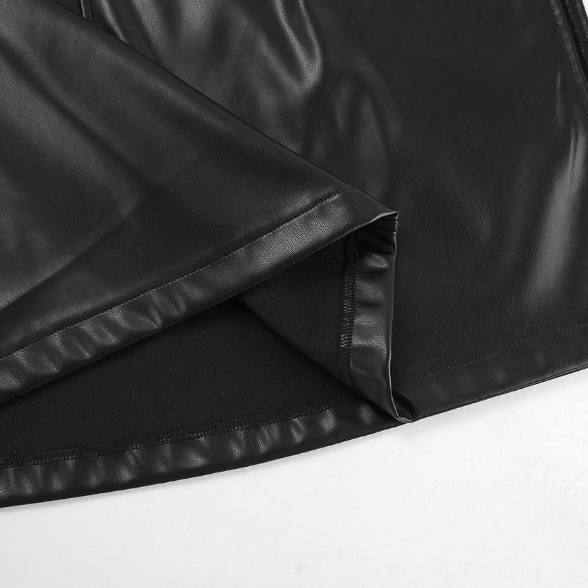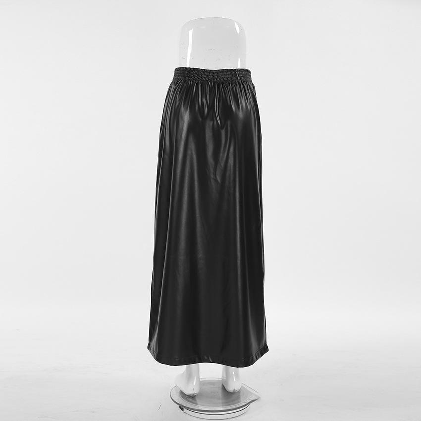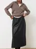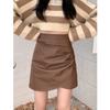 Falda sexy con abertura A de piel sintética mate forrada de vellón falda de cuero 2024 moda europea y americana otoño e invierno vestido para mujer